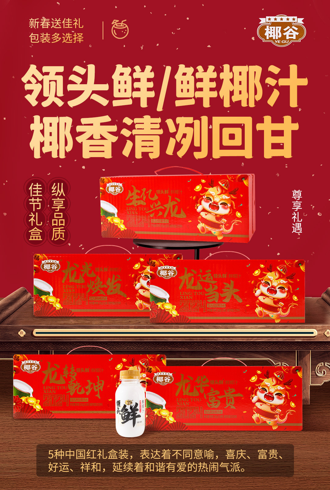 【品牌直发】喜迎龙年!10瓶 💰39.9!椰谷升级版高端款,领头鲜鲜椰汁,特别添加≥5%椰子水,低脂低糖不甜腻! ✅采用越南进口椰🥥2小时鲜榨技术 ✅无香精、无色素、无防腐剂 ✅外观设计专利,无菌灌装技术 🔺245g*10瓶/箱,最新日期 常规款、新年款6款包装随机发