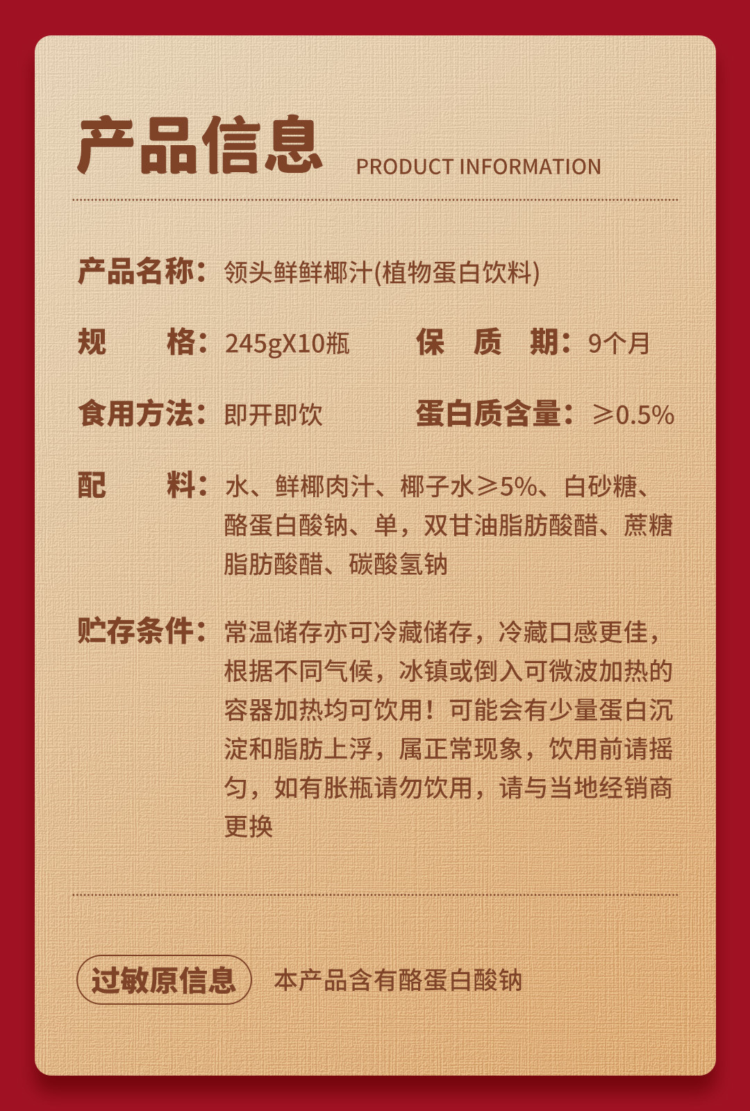 2、如底部出现沉淀,属椰纤果沉淀,可放心饮用。