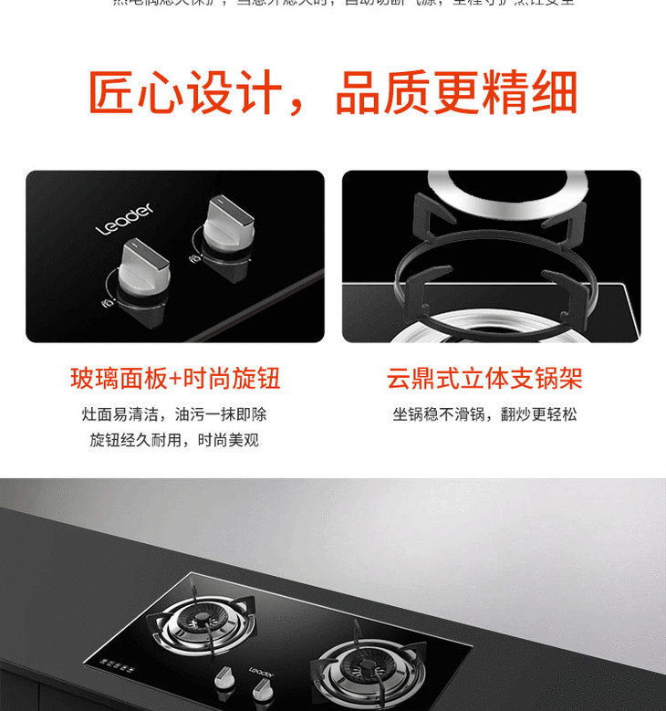 cdfh056pfj海尔Leader统帅燃气灶 嵌入式双灶 钢化玻璃面板 JZY-LQ1GA(20Y)液化气