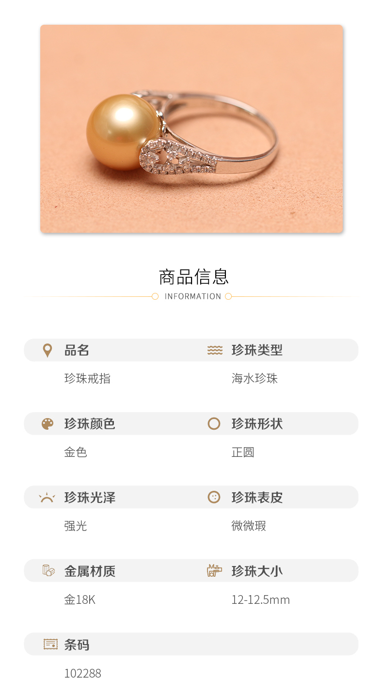 金18K海水珍珠戒指 12.5-13mm 102288