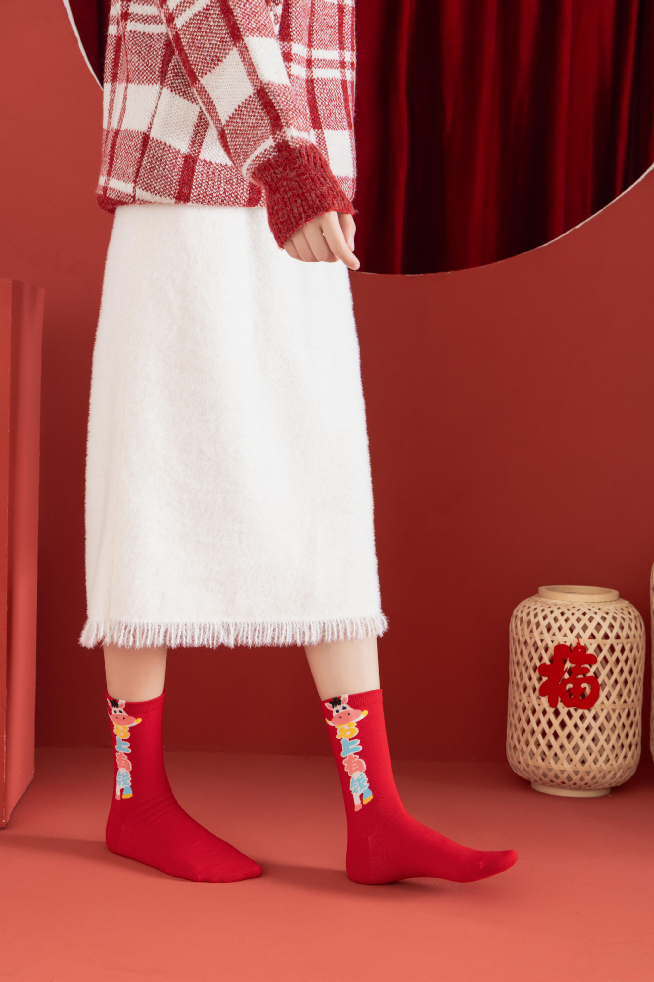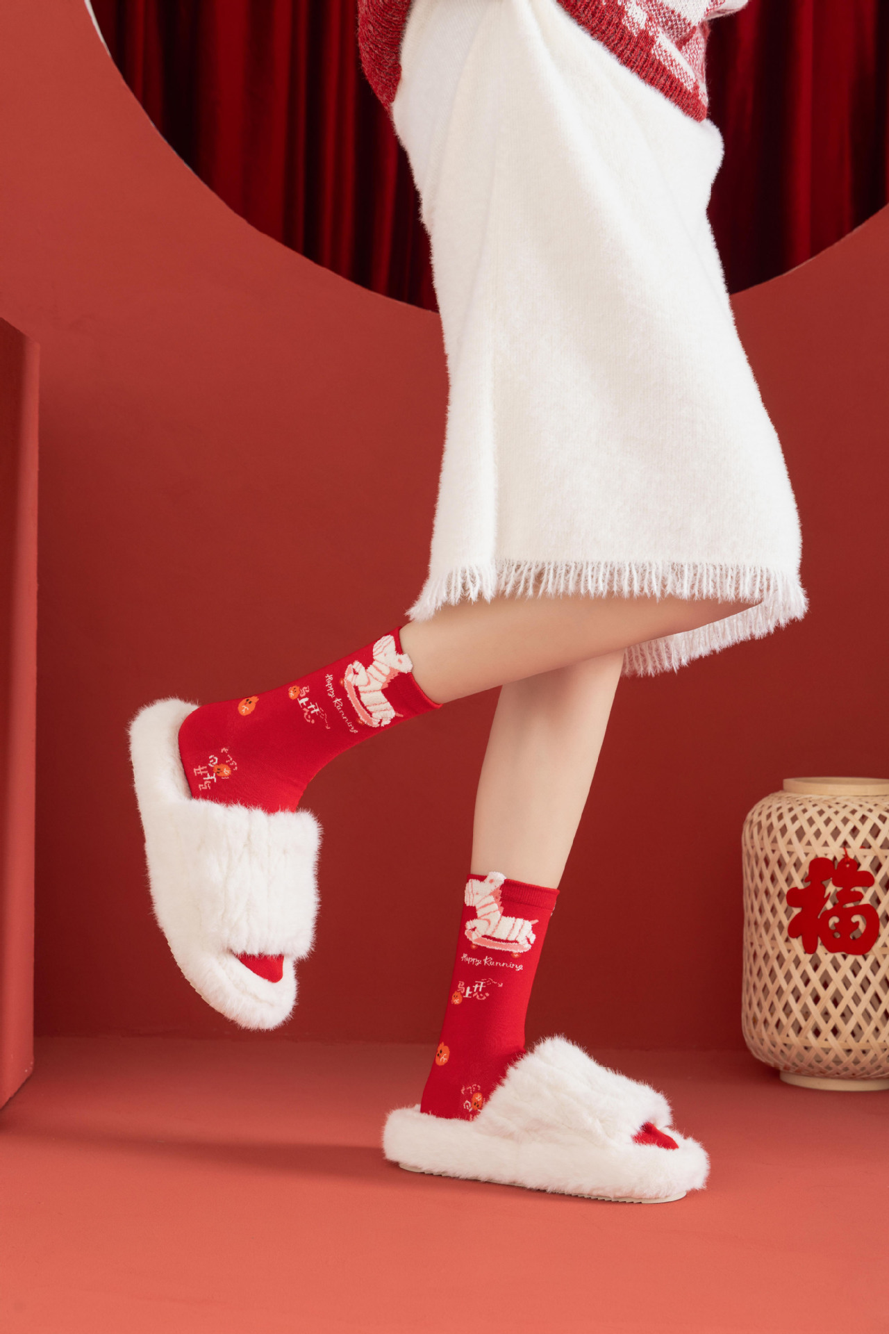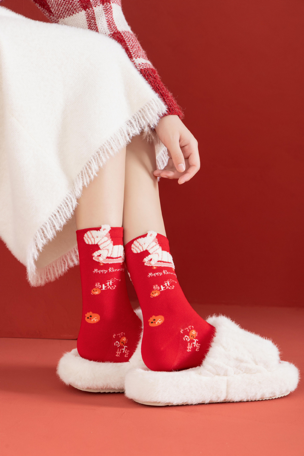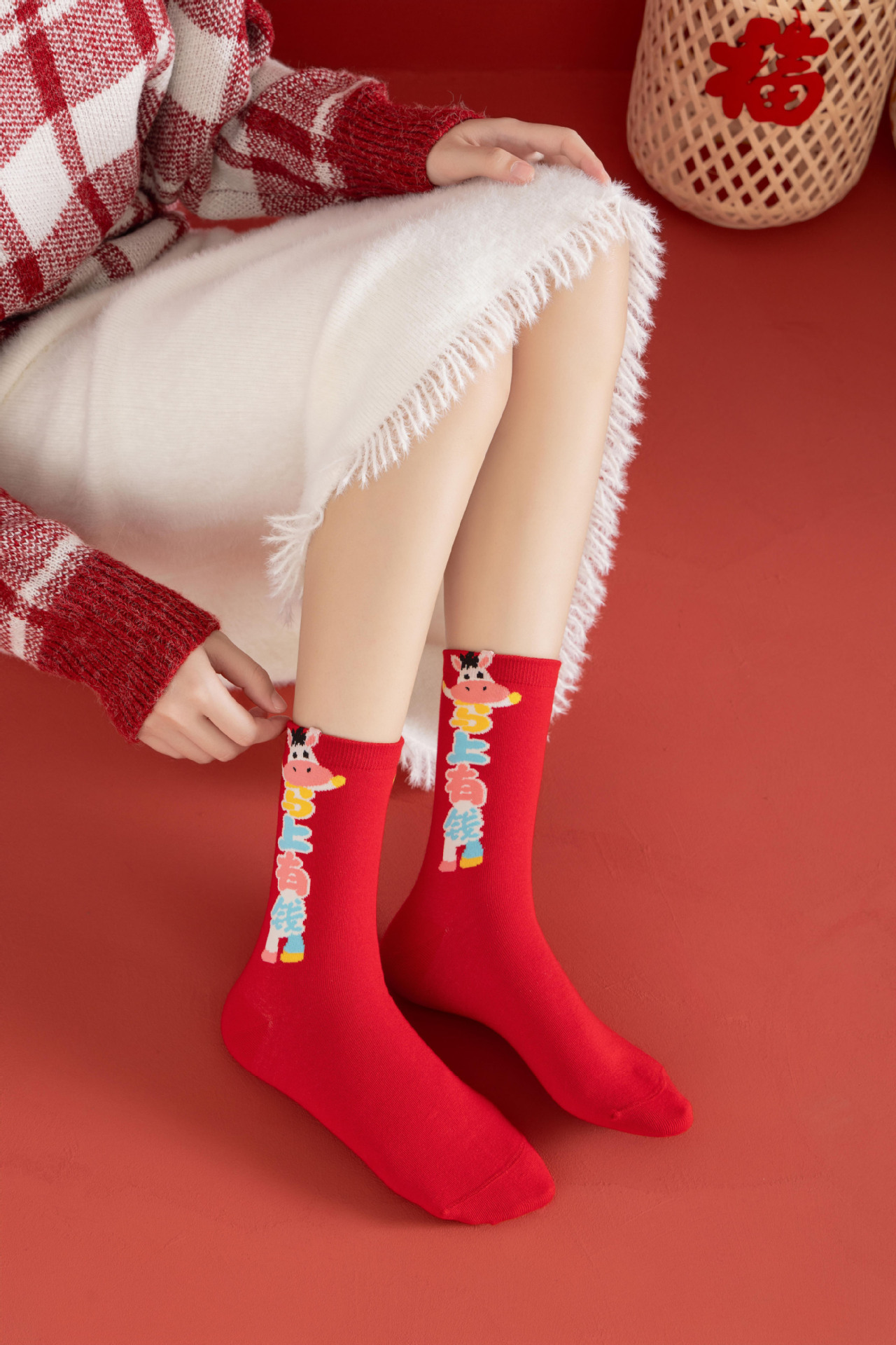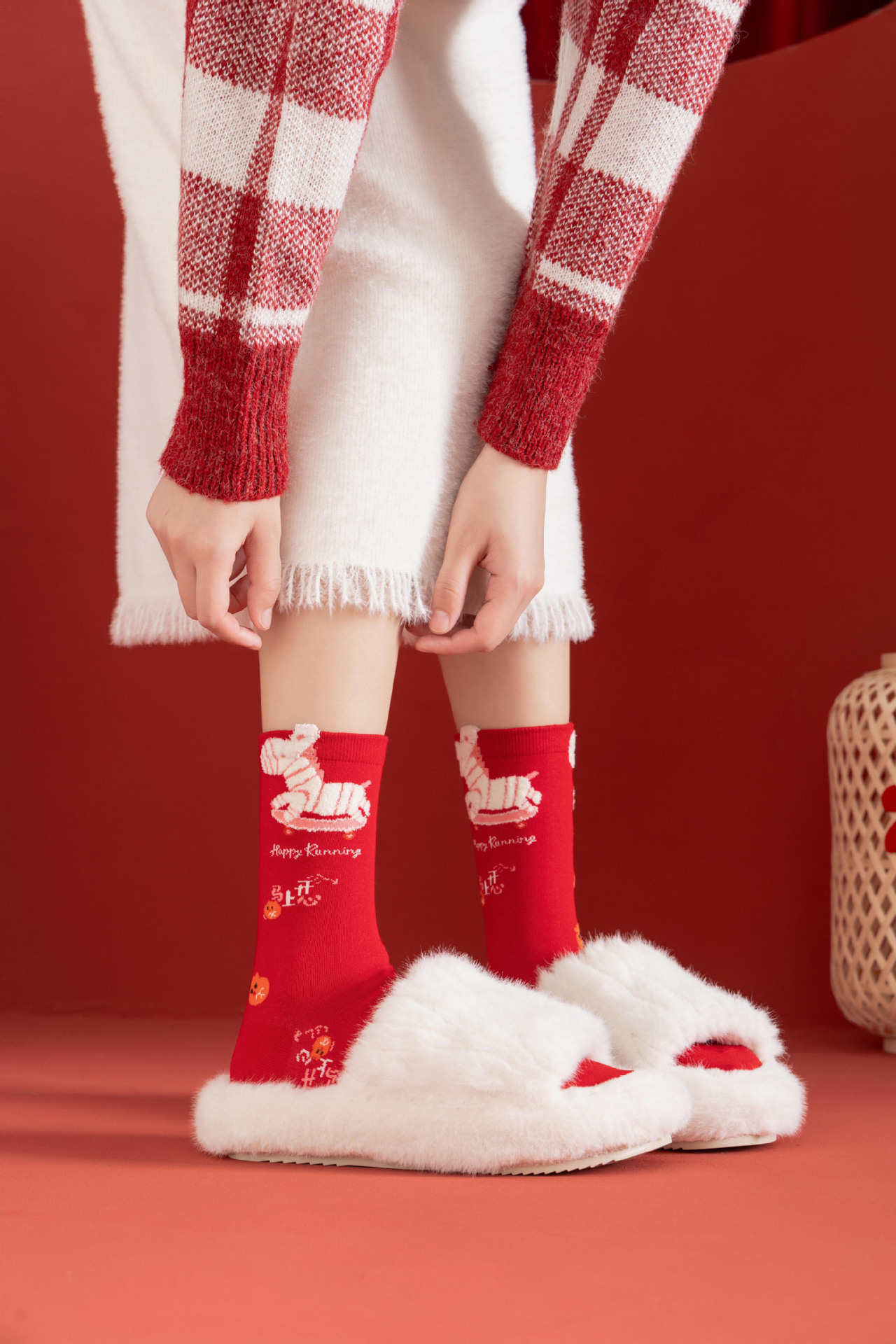 【创意图案设计❗️踩小人走红运】立体马本命年新年元旦大红新年袜子女无骨毛茸茸马暴富马上有钱女士鸿运袜。jb