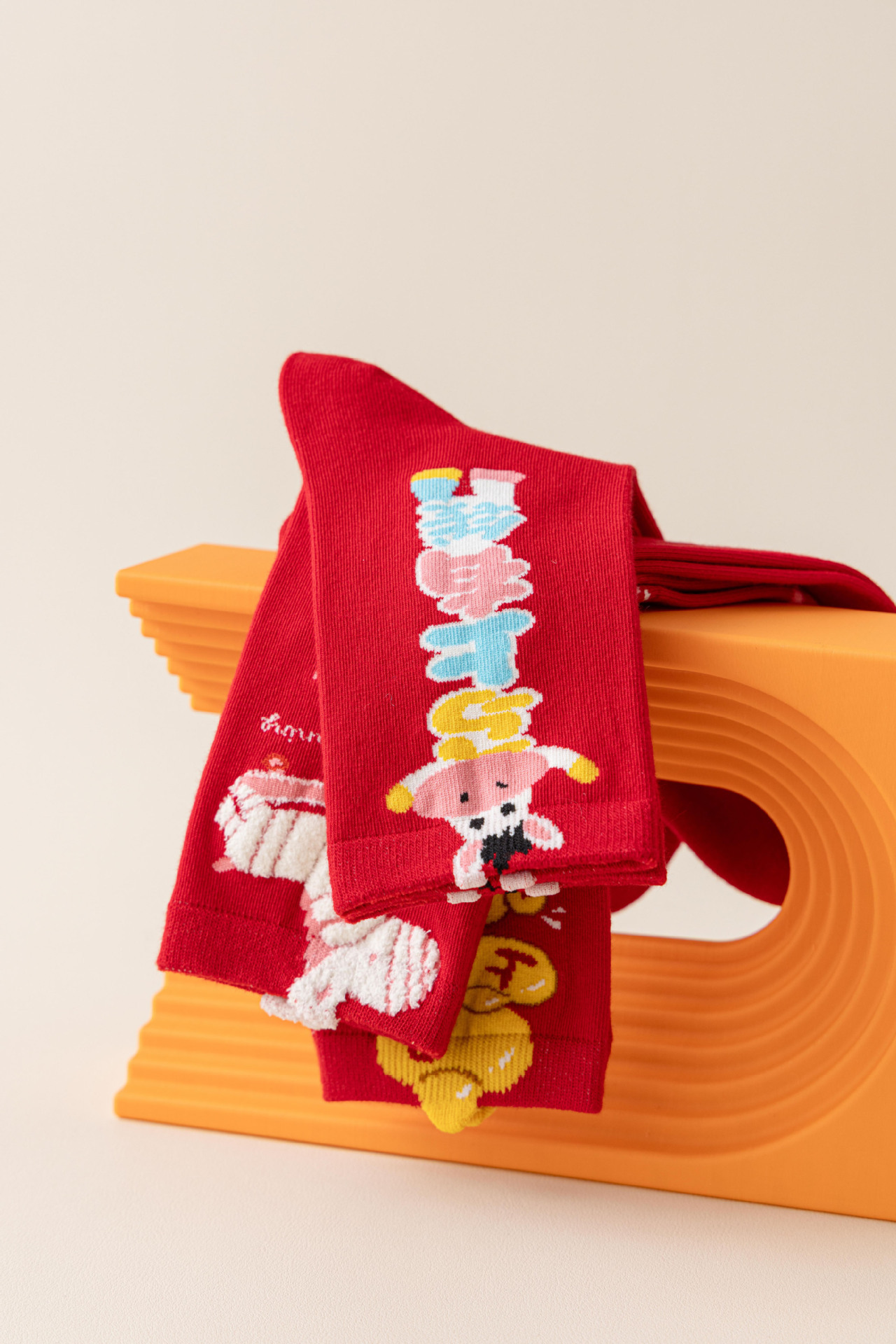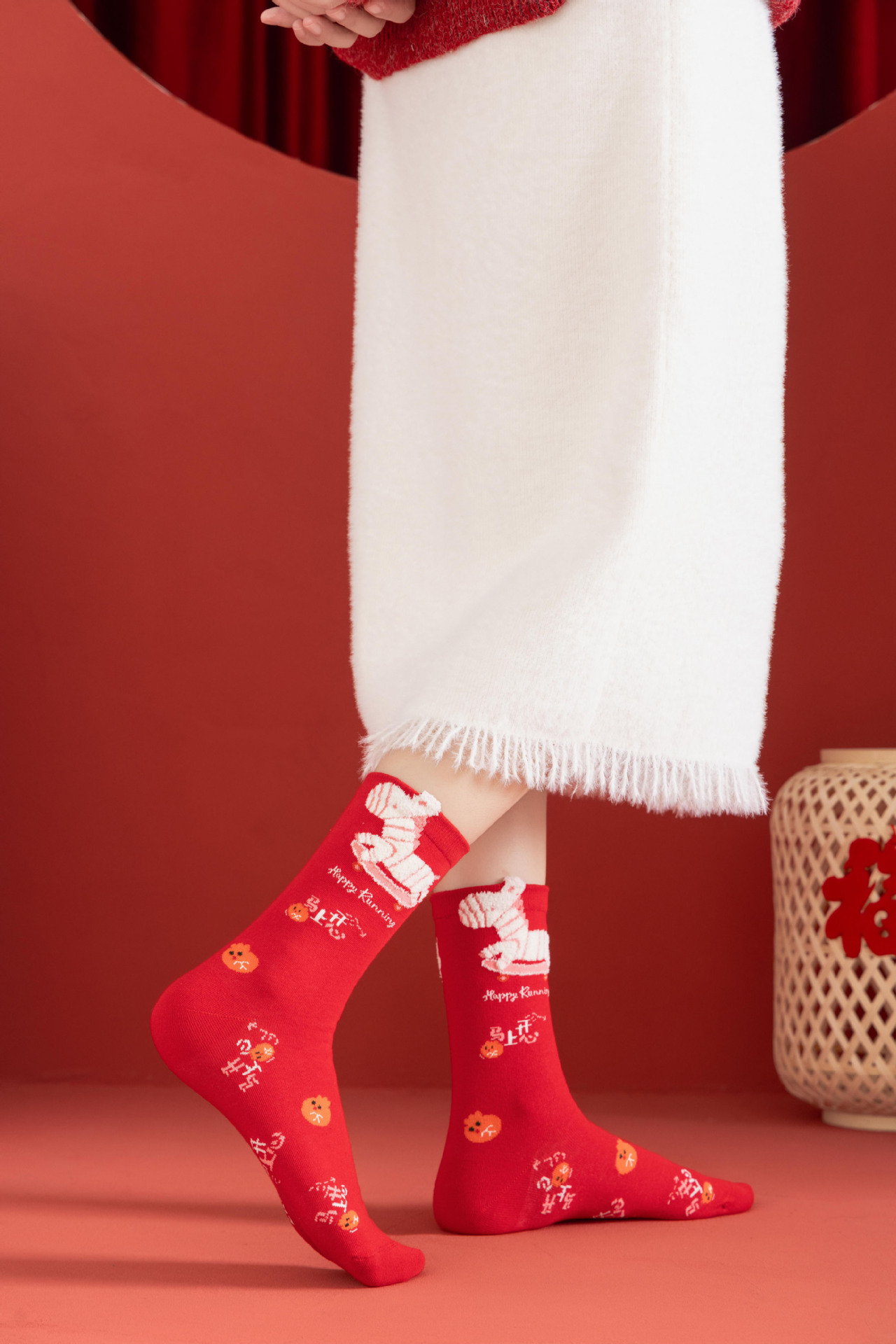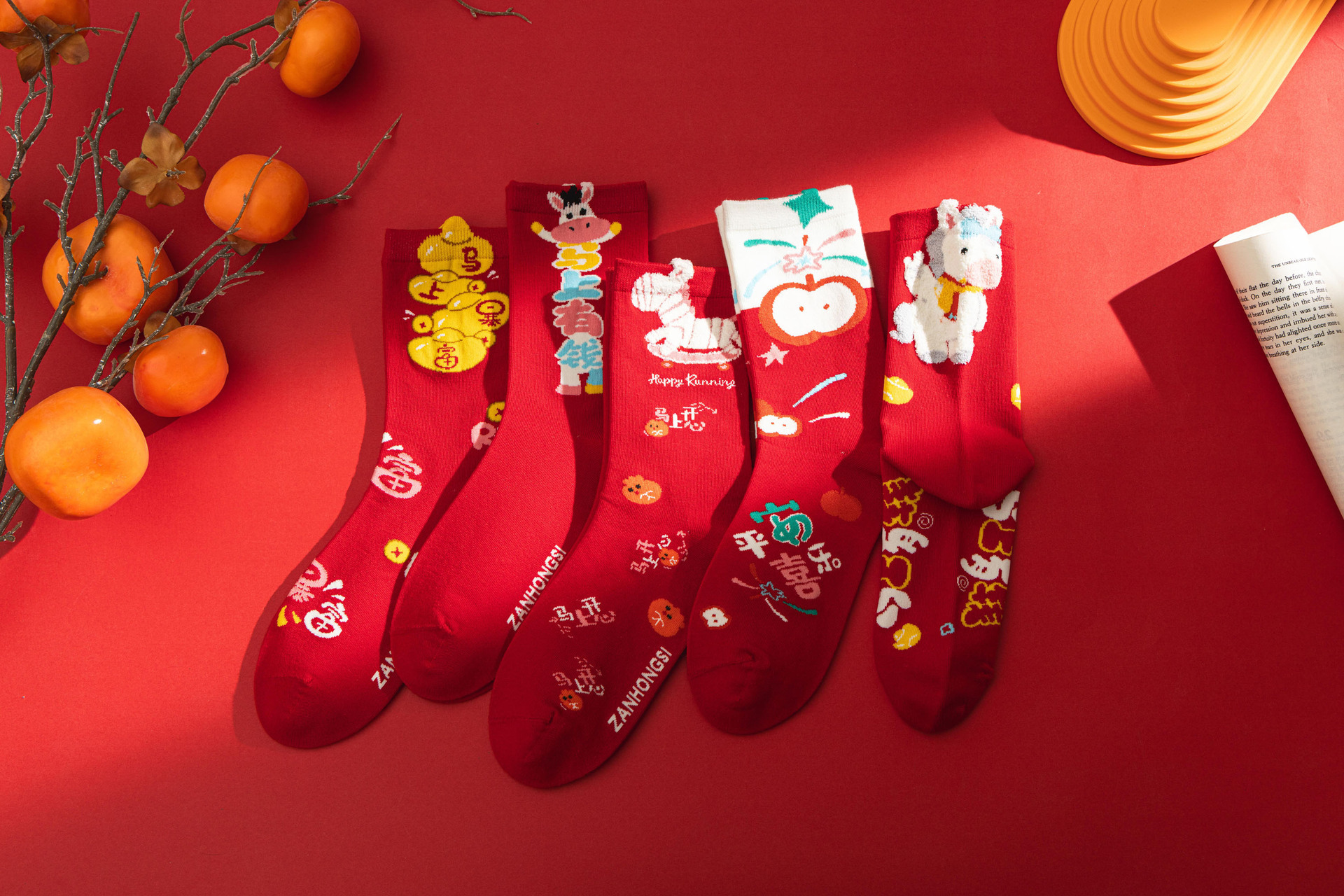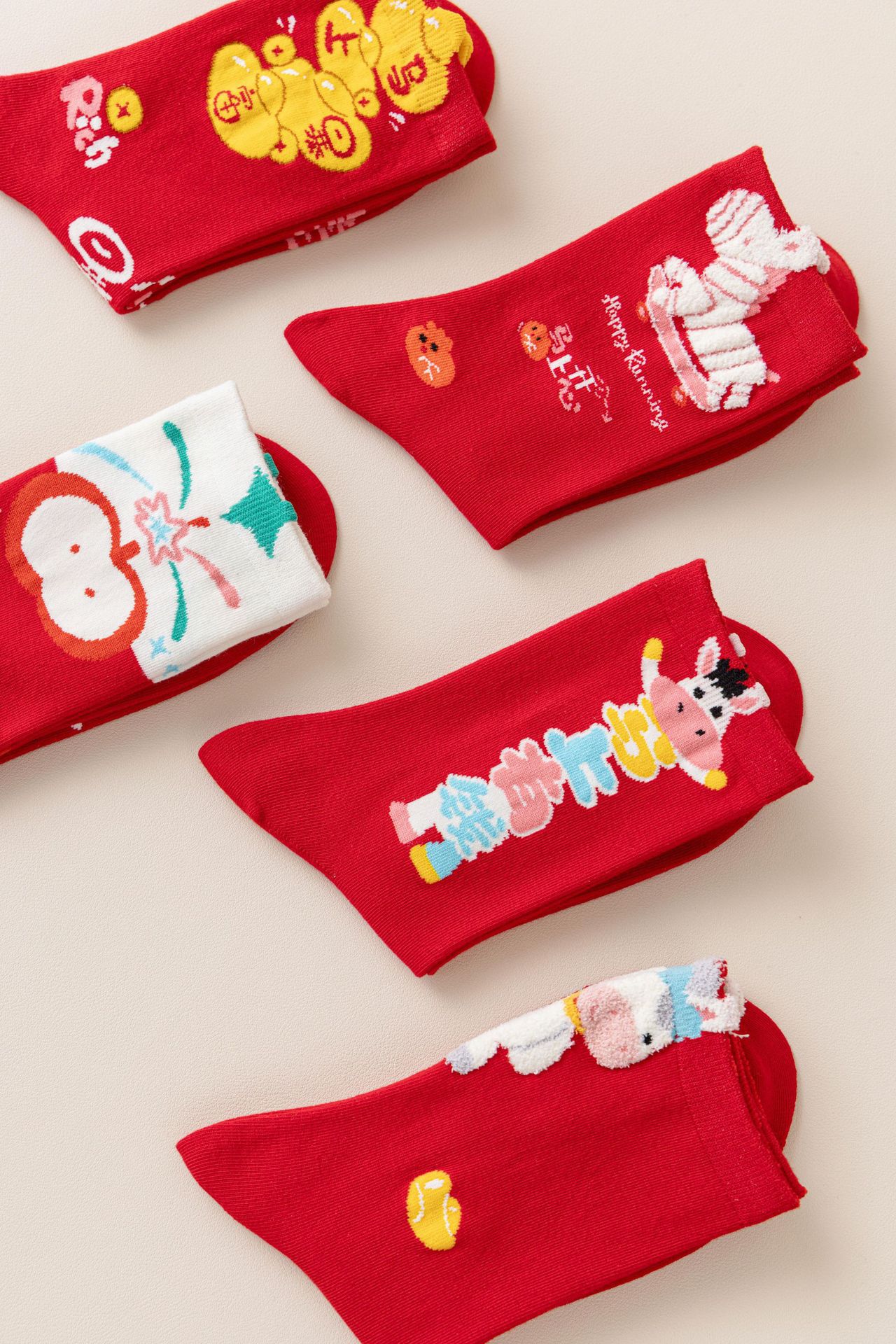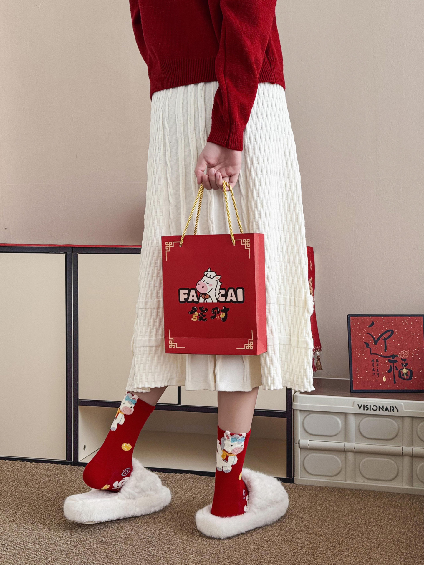 【创意图案设计❗️踩小人走红运】立体马本命年新年元旦大红新年袜子女无骨毛茸茸马暴富马上有钱女士鸿运袜。jb
