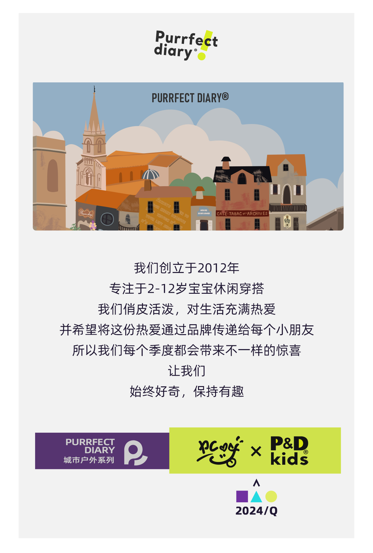 Purrfect-Diary专注于贴近自然随性的穿着概念,轻奢平价的童装文化传播,在产品设计上更加注重婴童穿着的舒适性、安全性、更出众的国际化品牌,将欧美的育婴文化在中国进行深入的传播与推广。