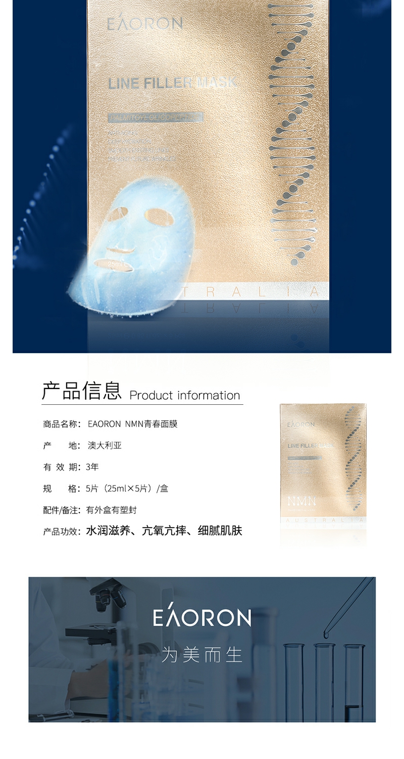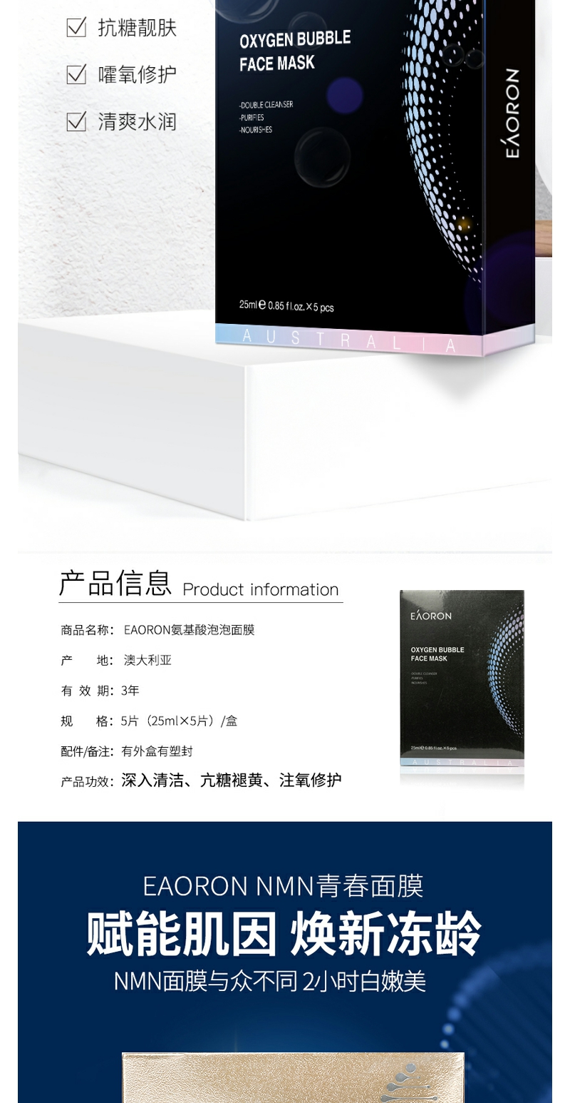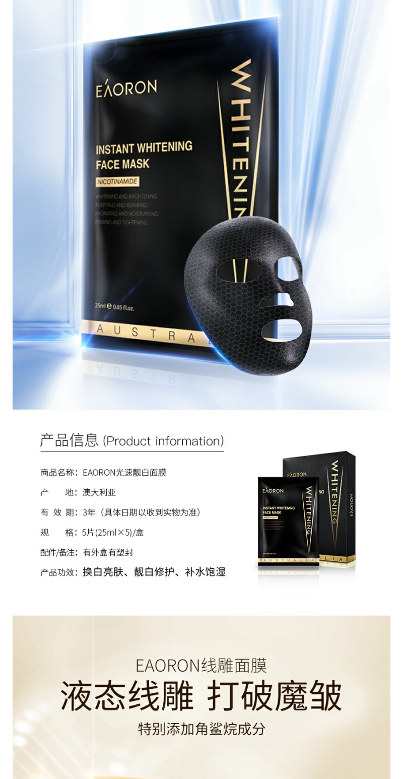 【YZ】澳洲eaoron水光针玻尿酸黑白面膜女补水保湿去黄提亮