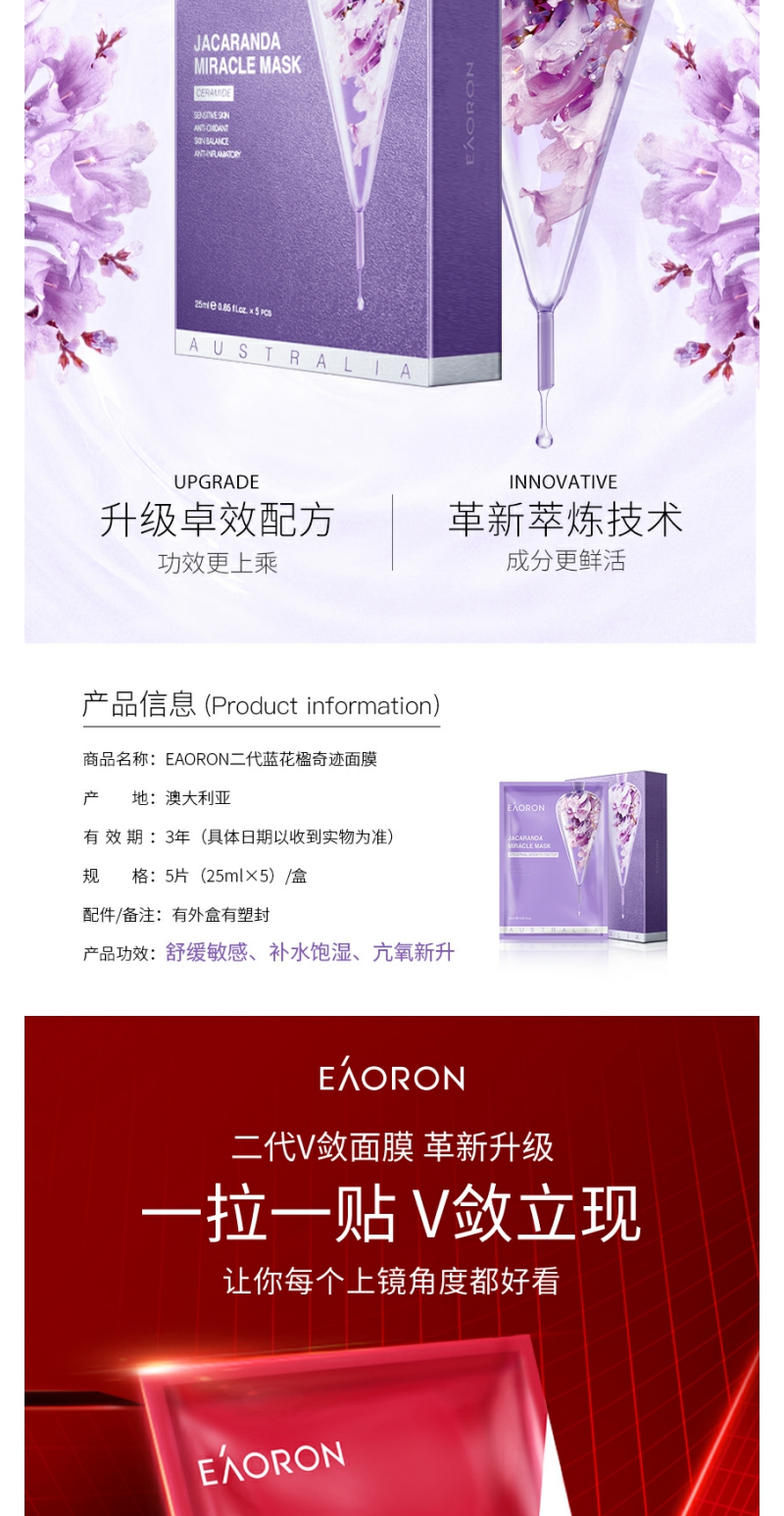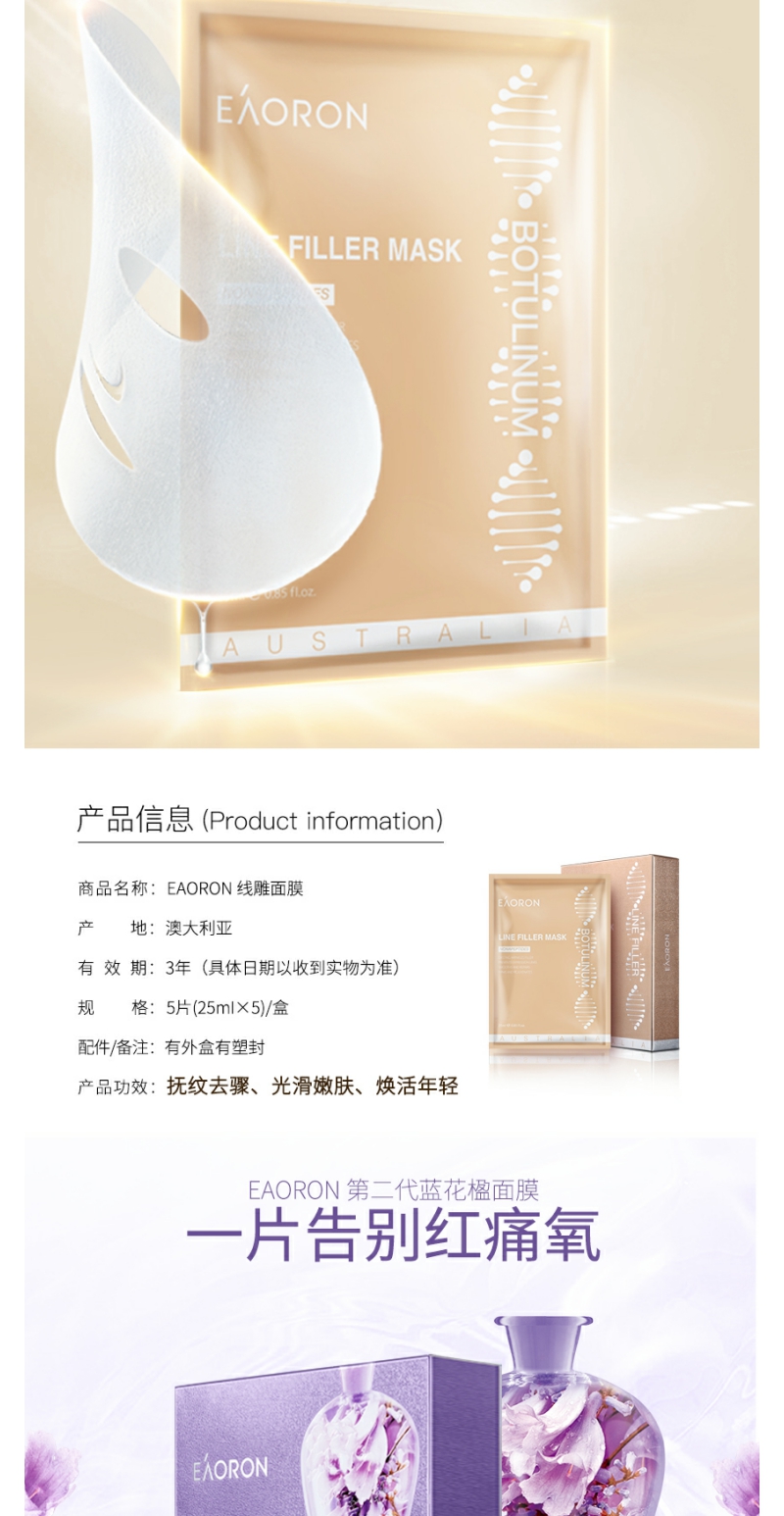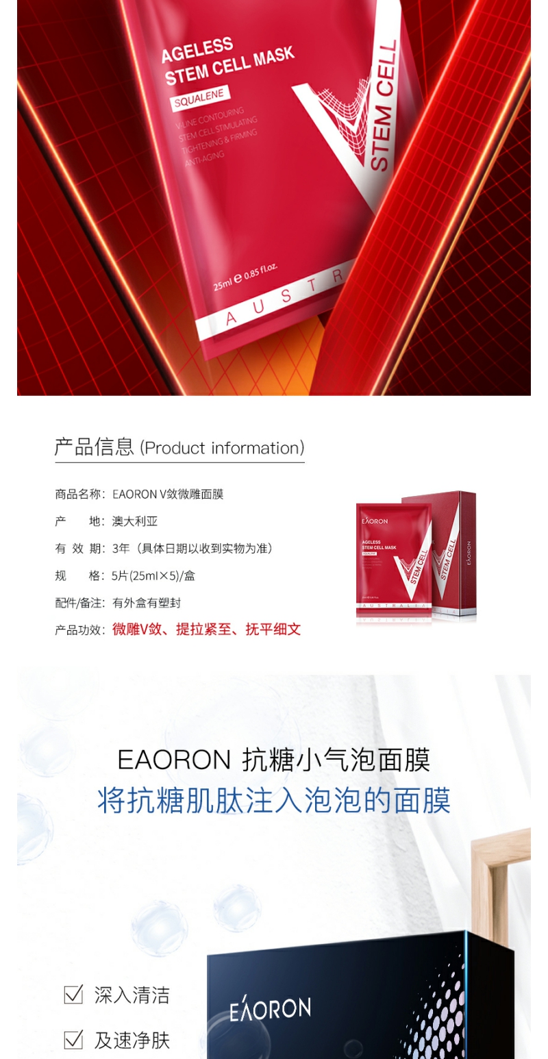 【YZ】澳洲eaoron水光针玻尿酸黑白面膜女补水保湿去黄提亮