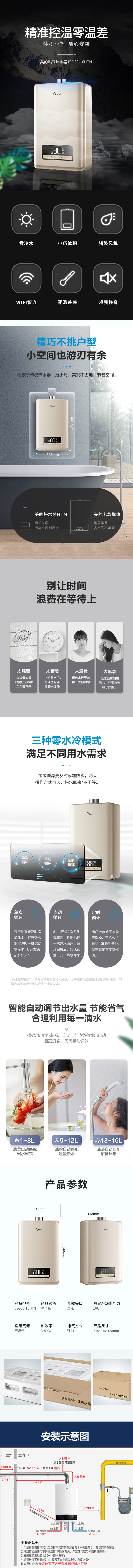 美的(Midea)(509504 )16升家用燃气热水器JSQ30-16HTN 零冷水全屋巡航 精准恒温全面安防系统 健康洗净呵护