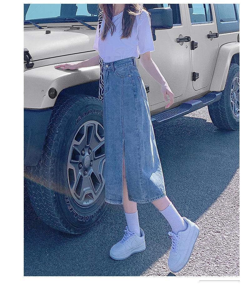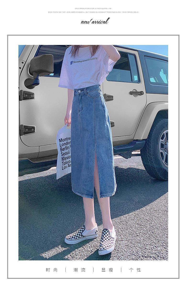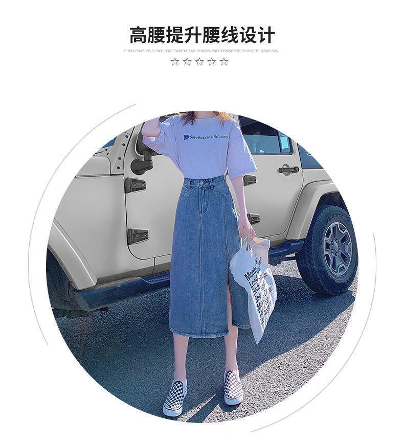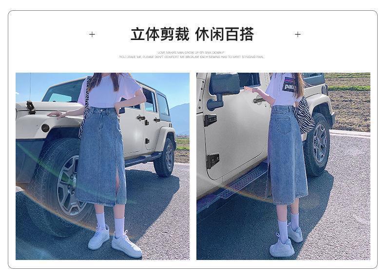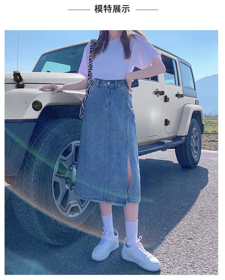 开叉半身裙女夏季薄款高腰春秋新款小个子a字中长牛仔裙长裙七夕情人节