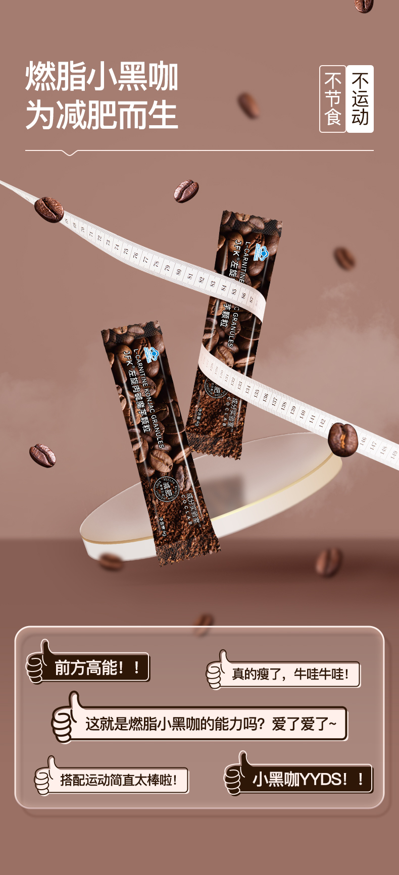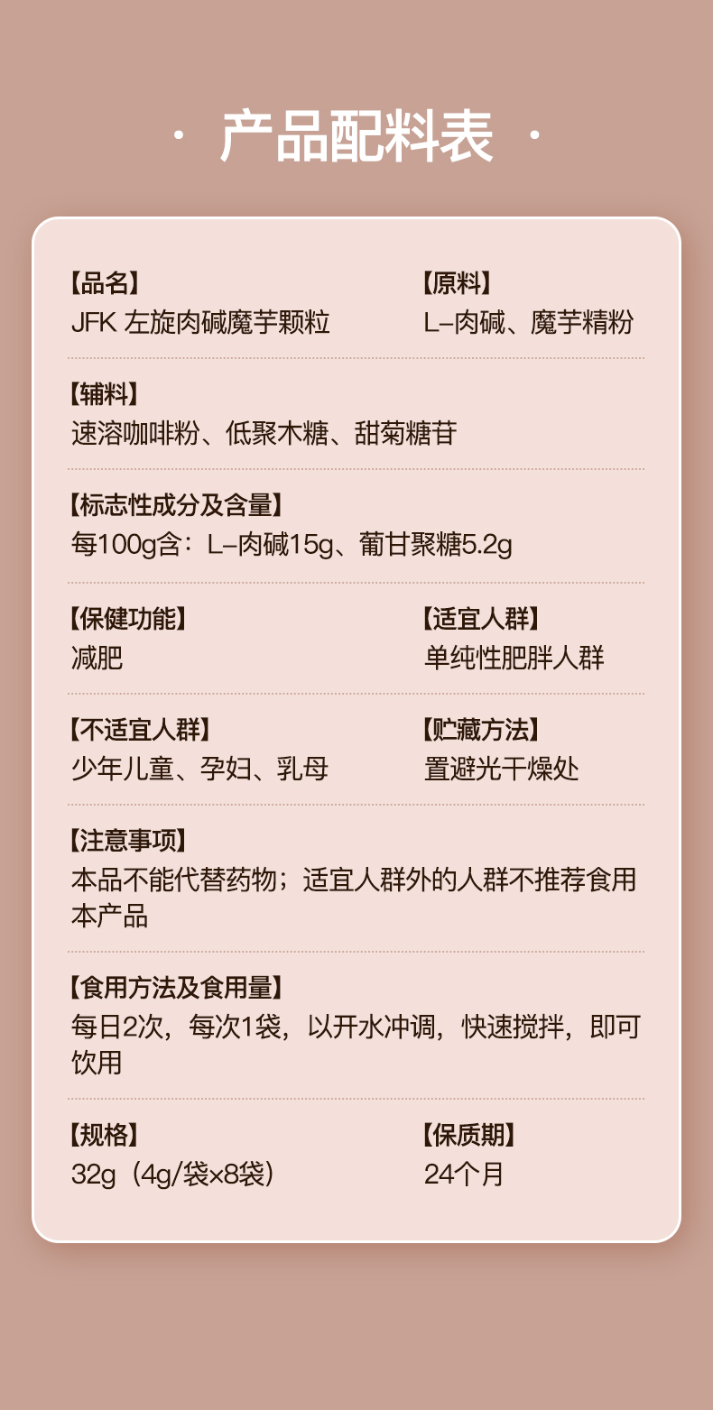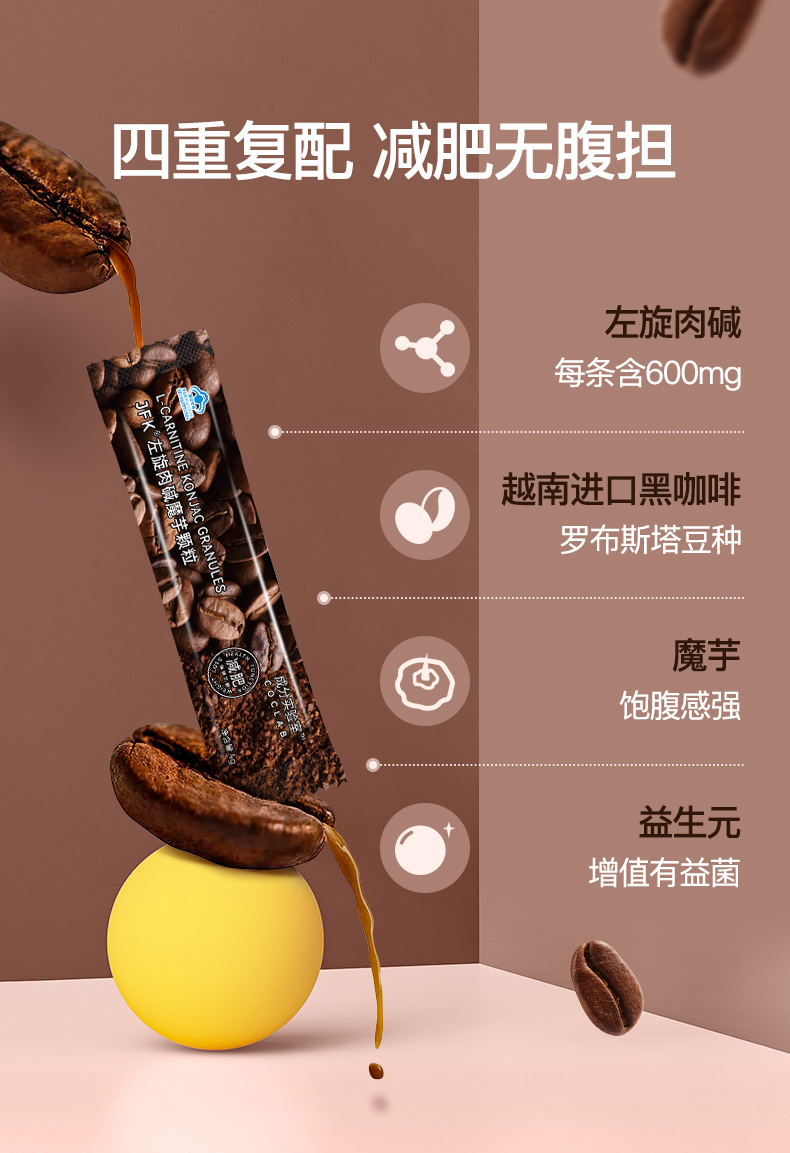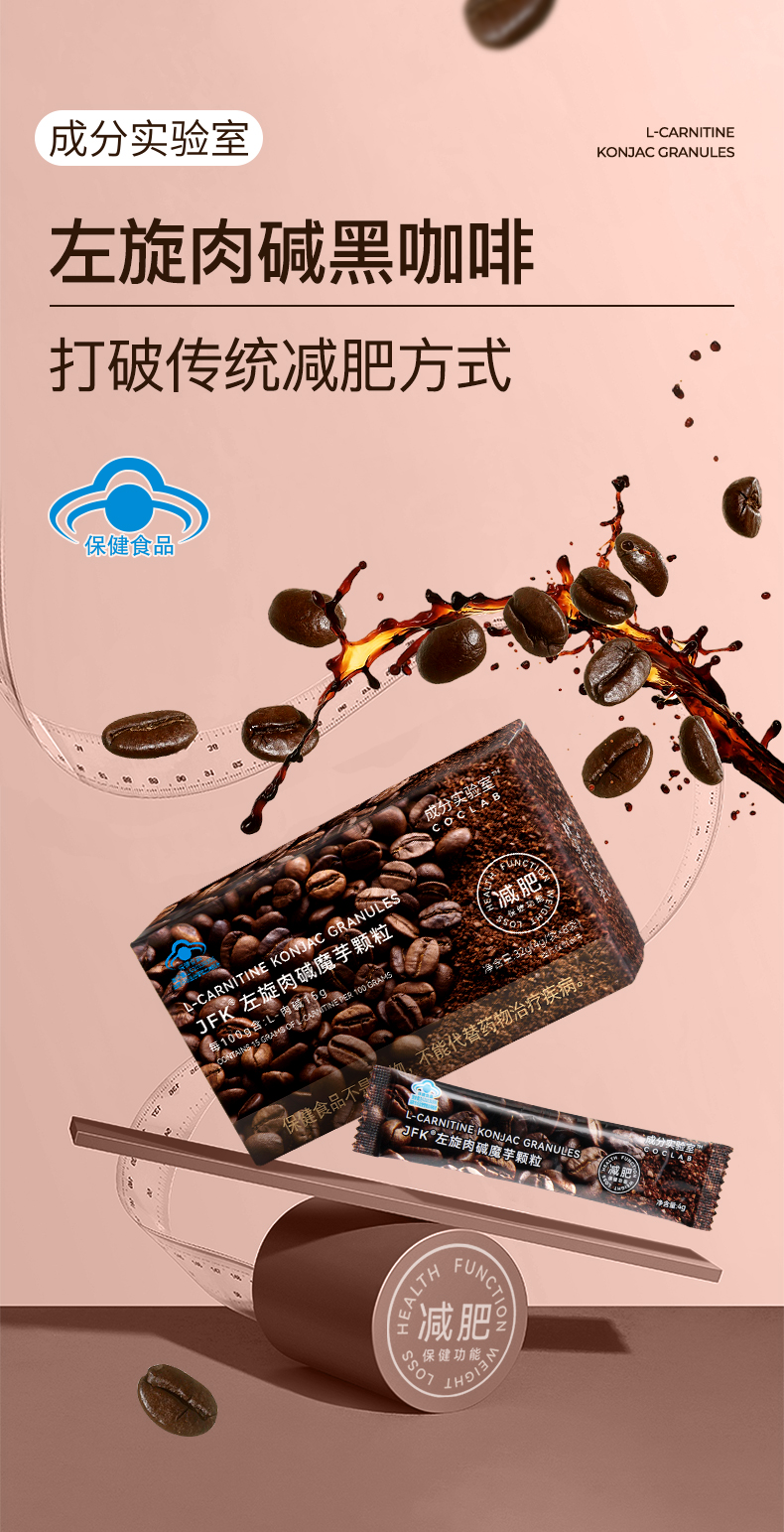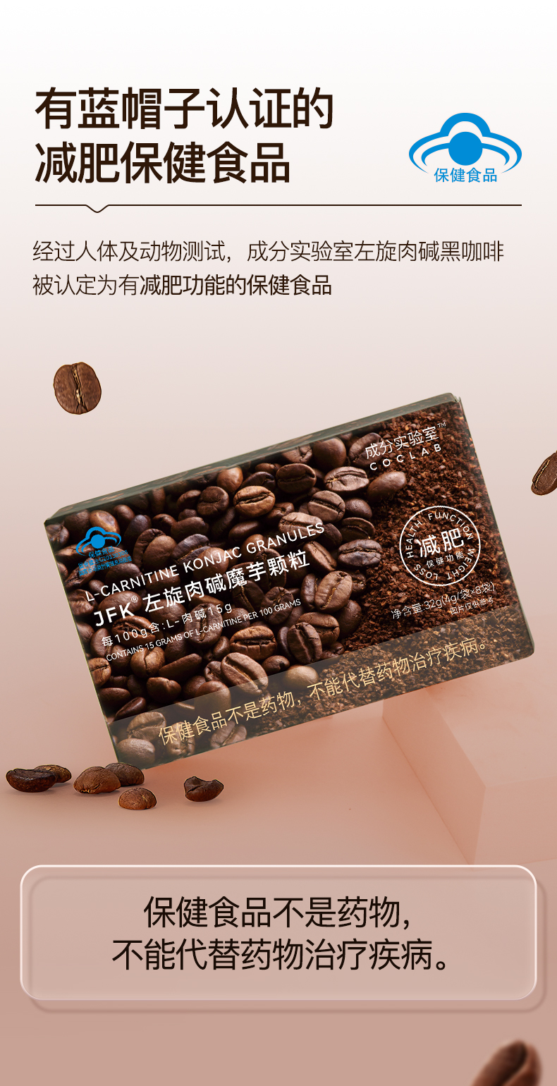 每条600mg左旋肉碱的 有蓝帽子认证的 魔芋 减脂黑咖 32g/盒(8条/盒)