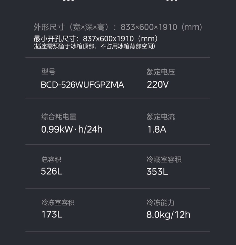 美的(Midea)(202846)(202847)冰箱 BCD-526WUFGPZMA 钻影灰 弦影白