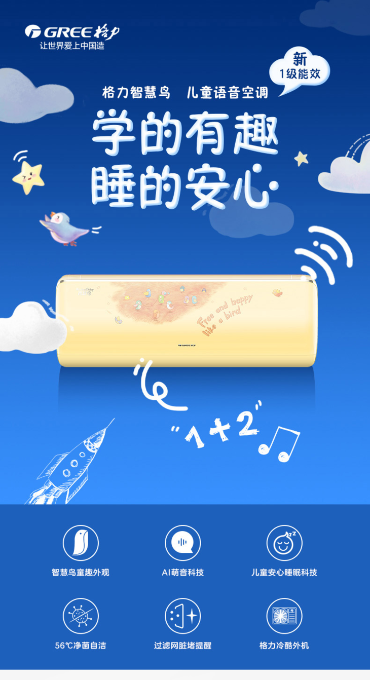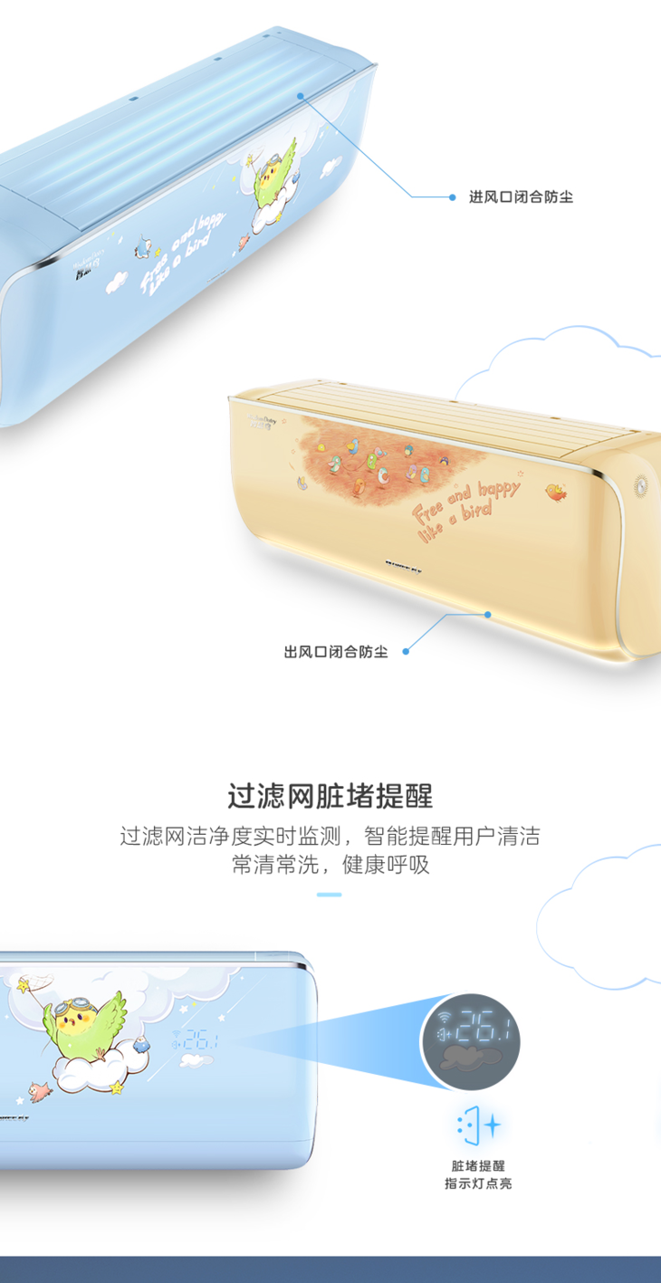 格力·智慧鸟 大1匹变频冷暖 1级能效挂机空调 KFR-26GW/(26546)FNhAc-B1(WIFI)(活力黄)