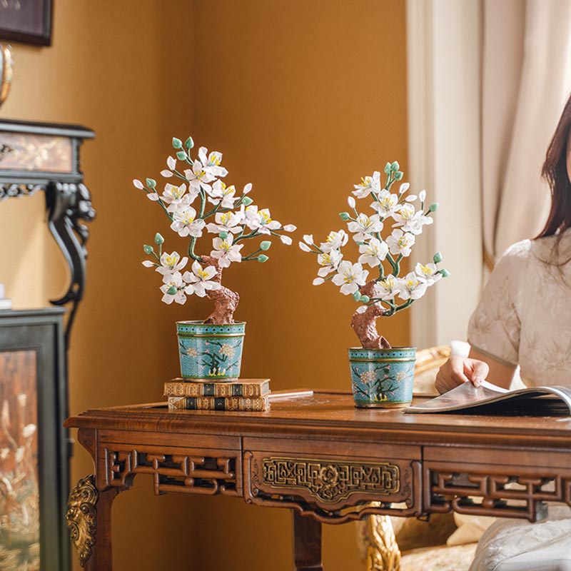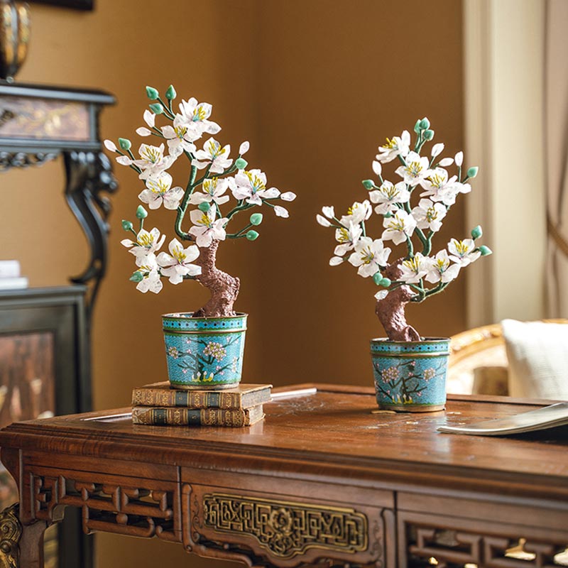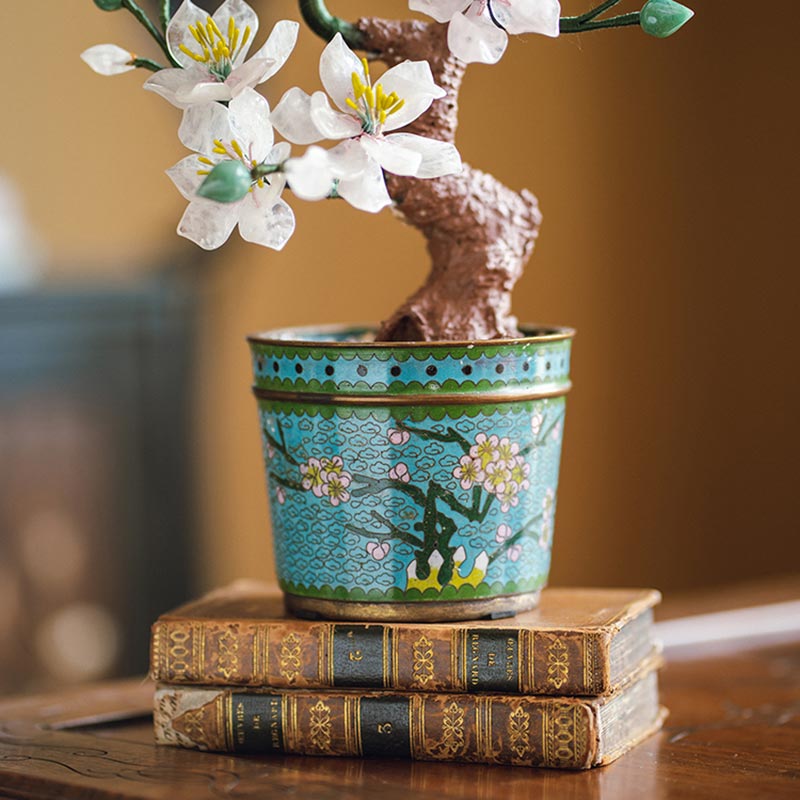 20世纪中国创汇时期出品传统花卉纹景泰蓝盆装饰「粉桃花开」珍宝像生盆景