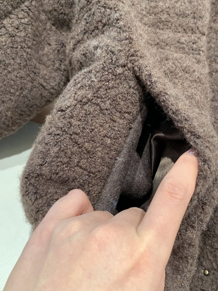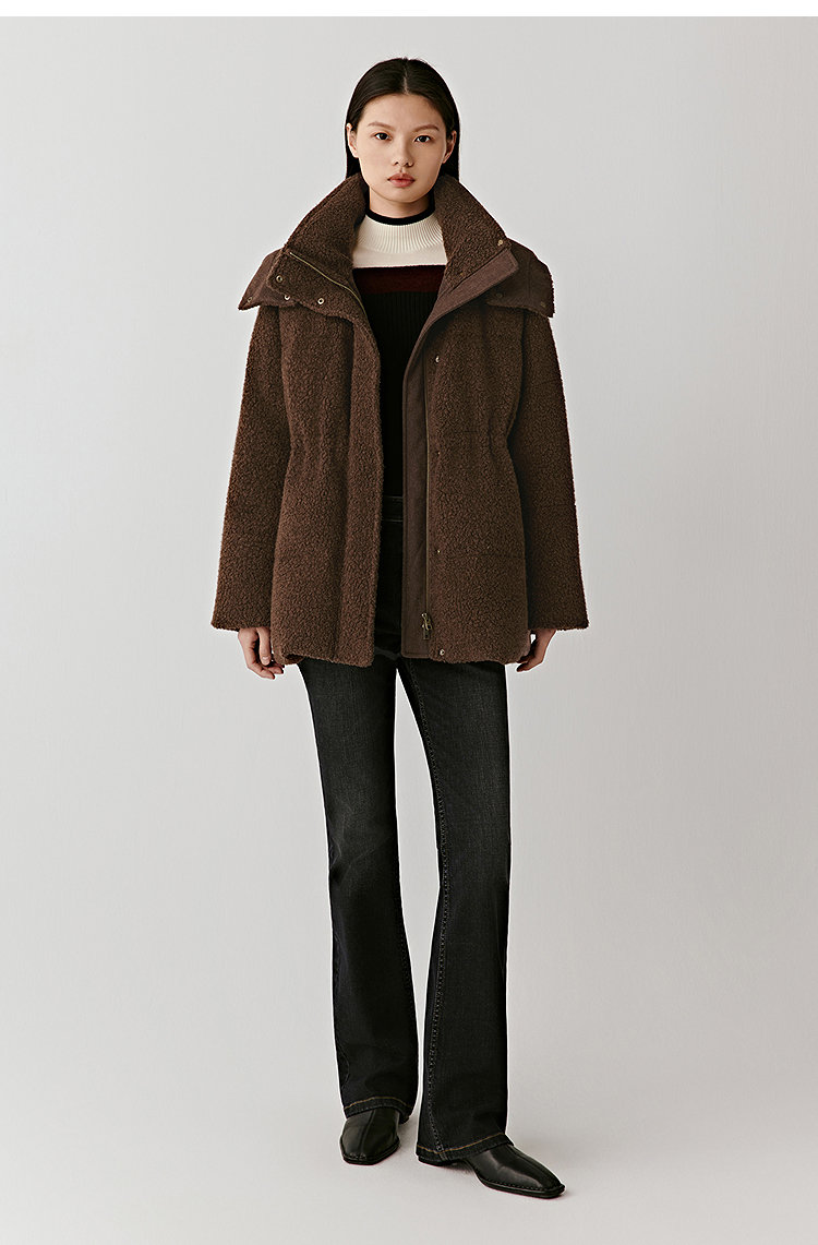 结合泰迪绒毛圈特有的蓬松质感,营造出一种慵懒却利落的轮廓。