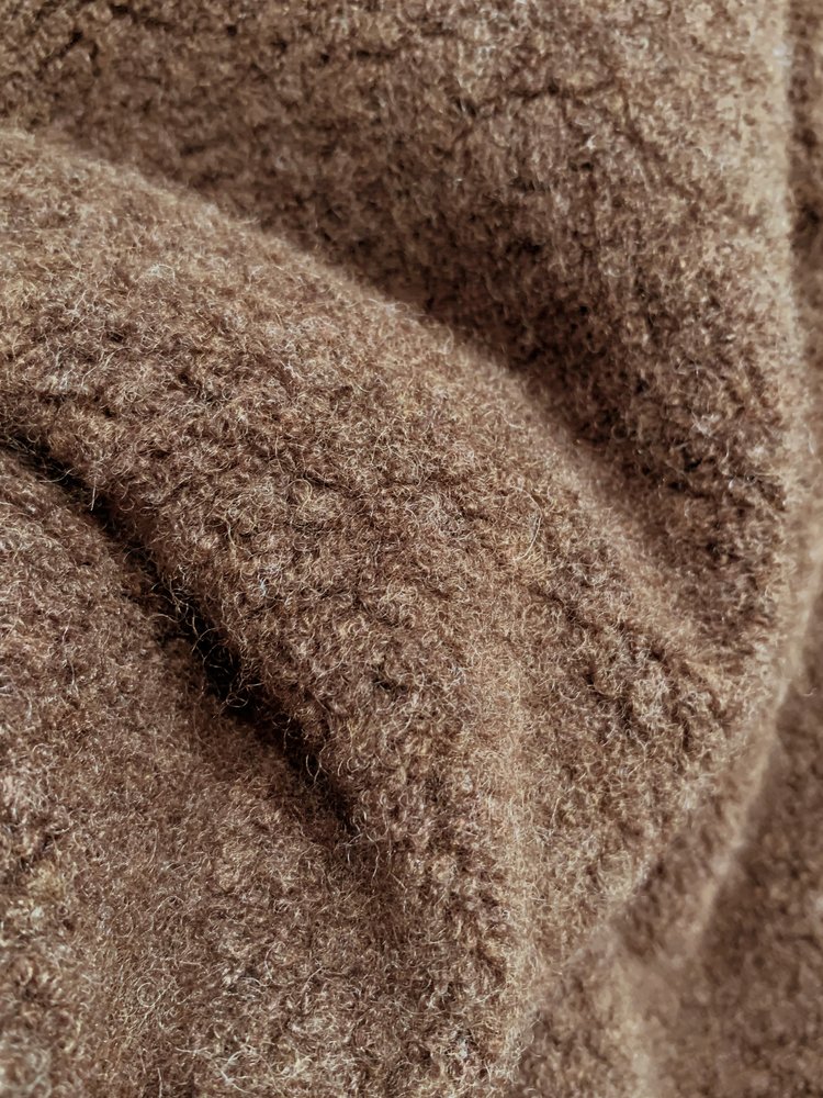 表面经过泰迪绒毛圈处理,形成细密均匀的短绒肌理