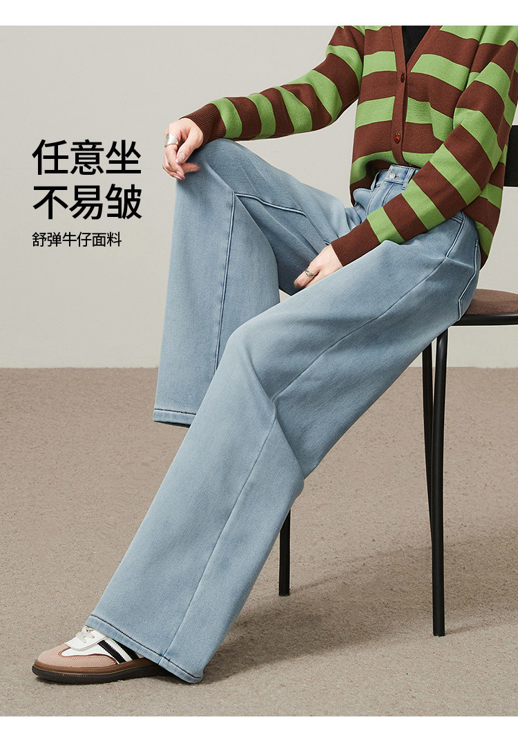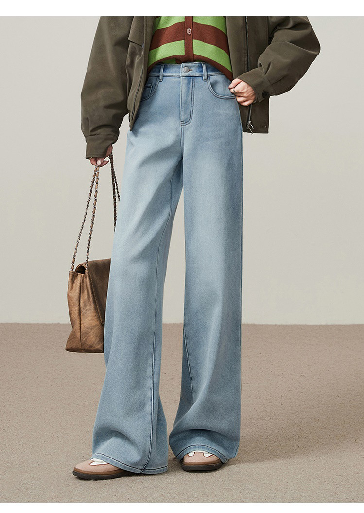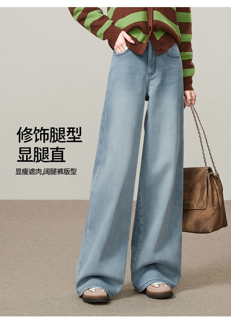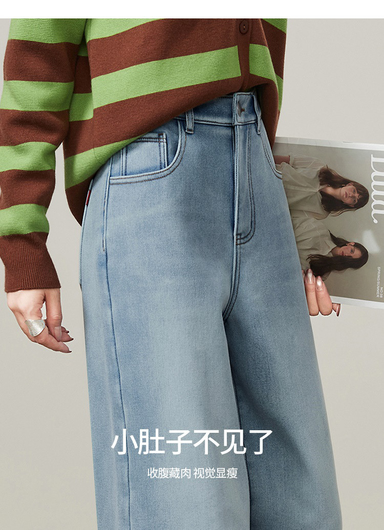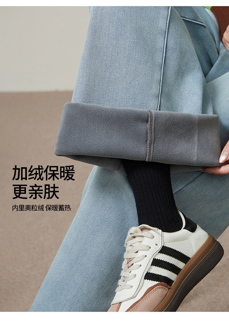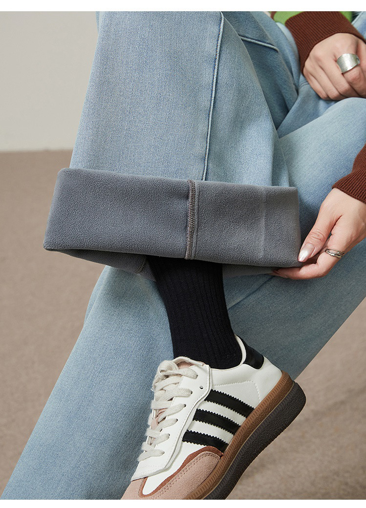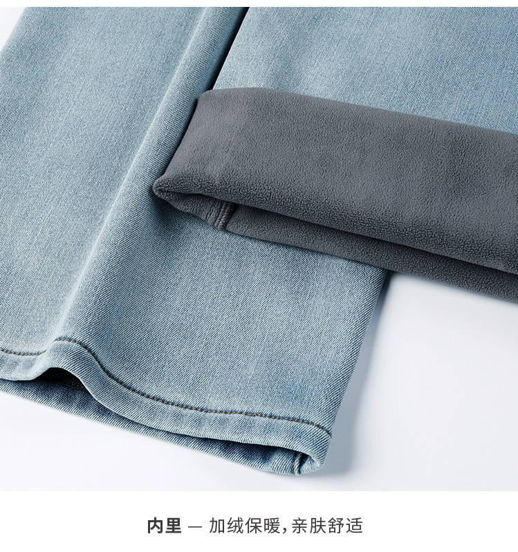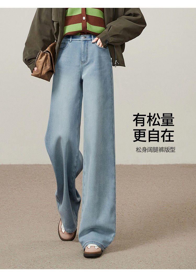 【浅蓝色-加绒-阔腿】逸阳冬加绒加厚抗寒保暖宽松直筒牛仔长裤7329