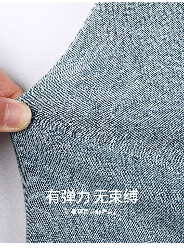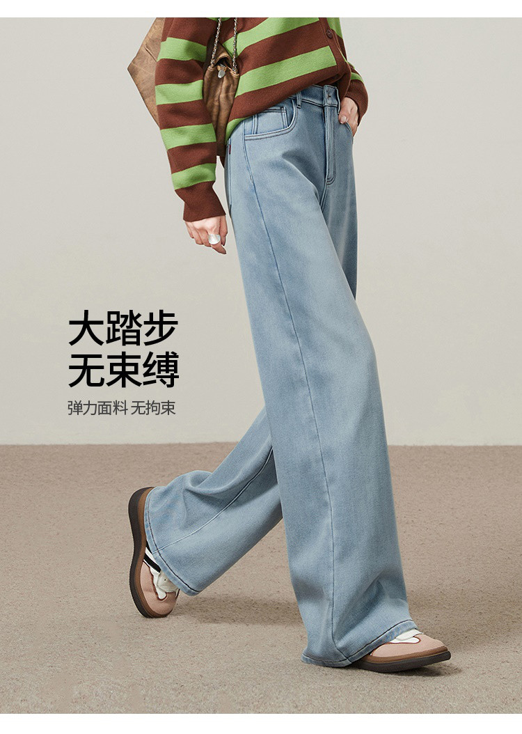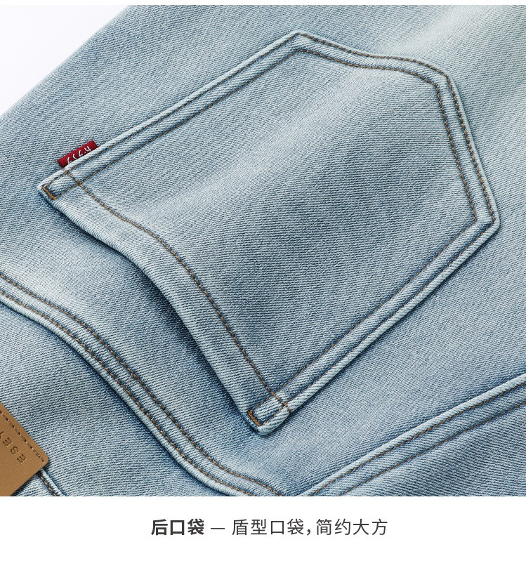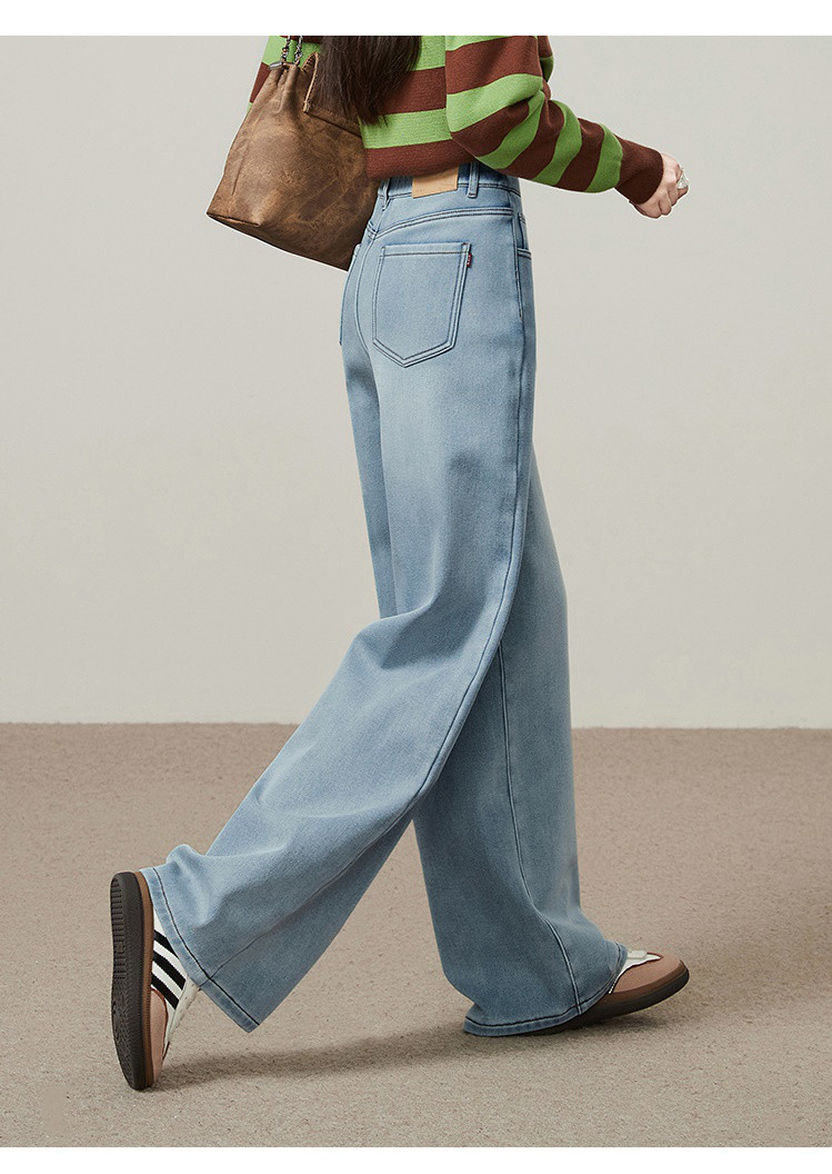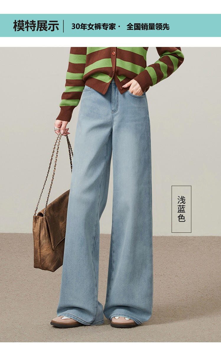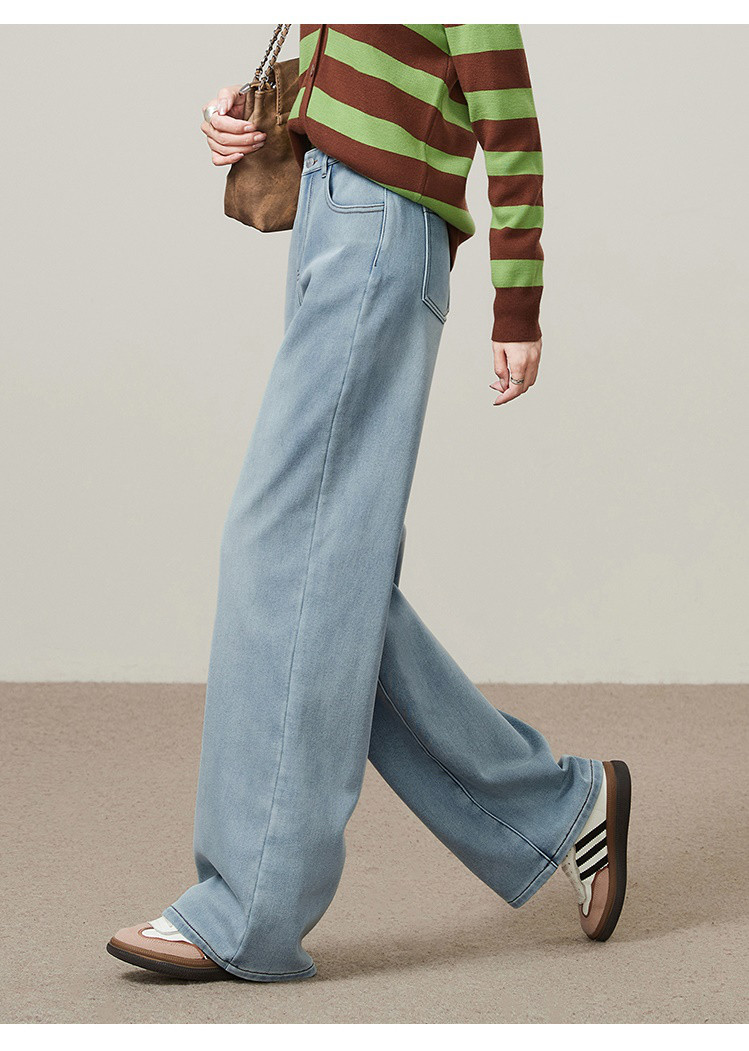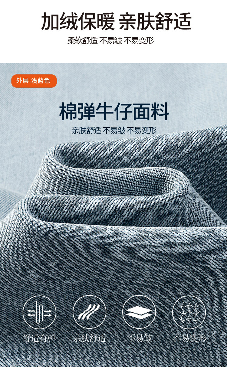 【浅蓝色-加绒-阔腿】逸阳冬加绒加厚抗寒保暖宽松直筒牛仔长裤7329