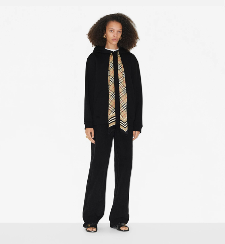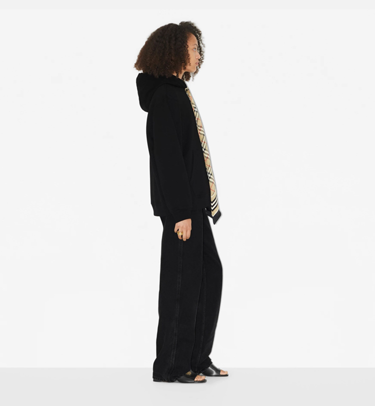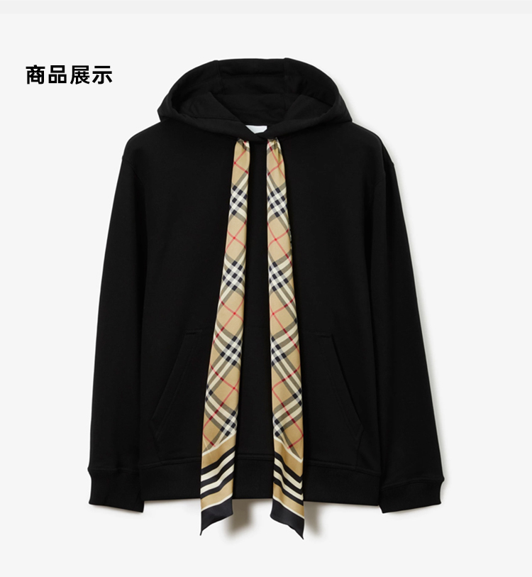 BURBERRY 巴宝莉 女士围巾装饰棉质宽松连帽卫衣 黑色 8066972 A1189