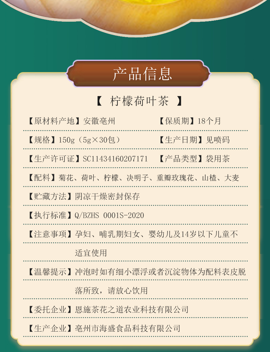 恩施馆 柠檬荷叶茶+150g(5g*30包)
