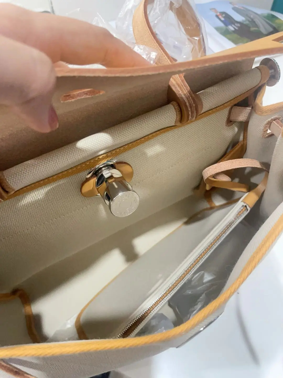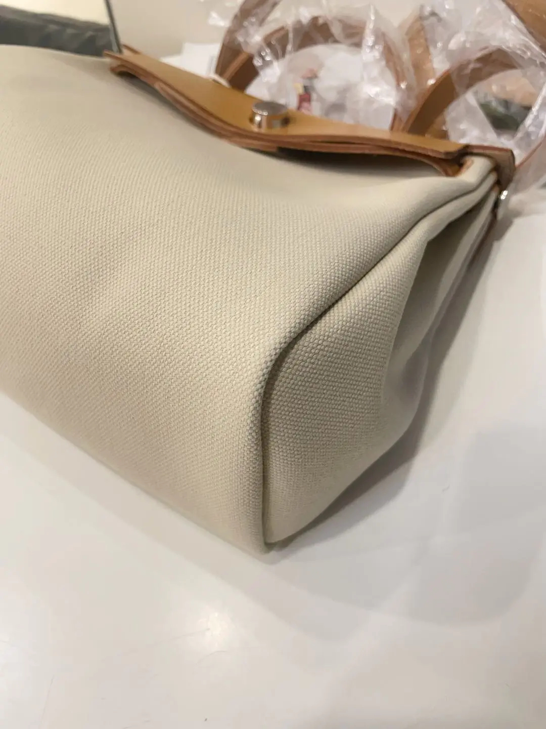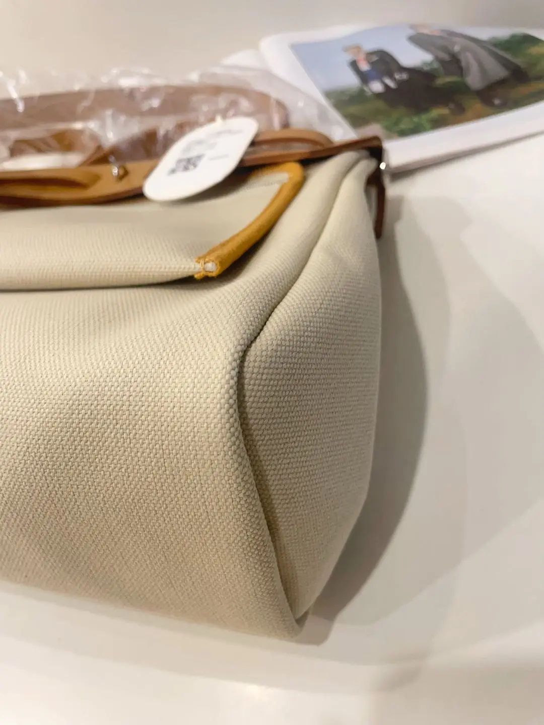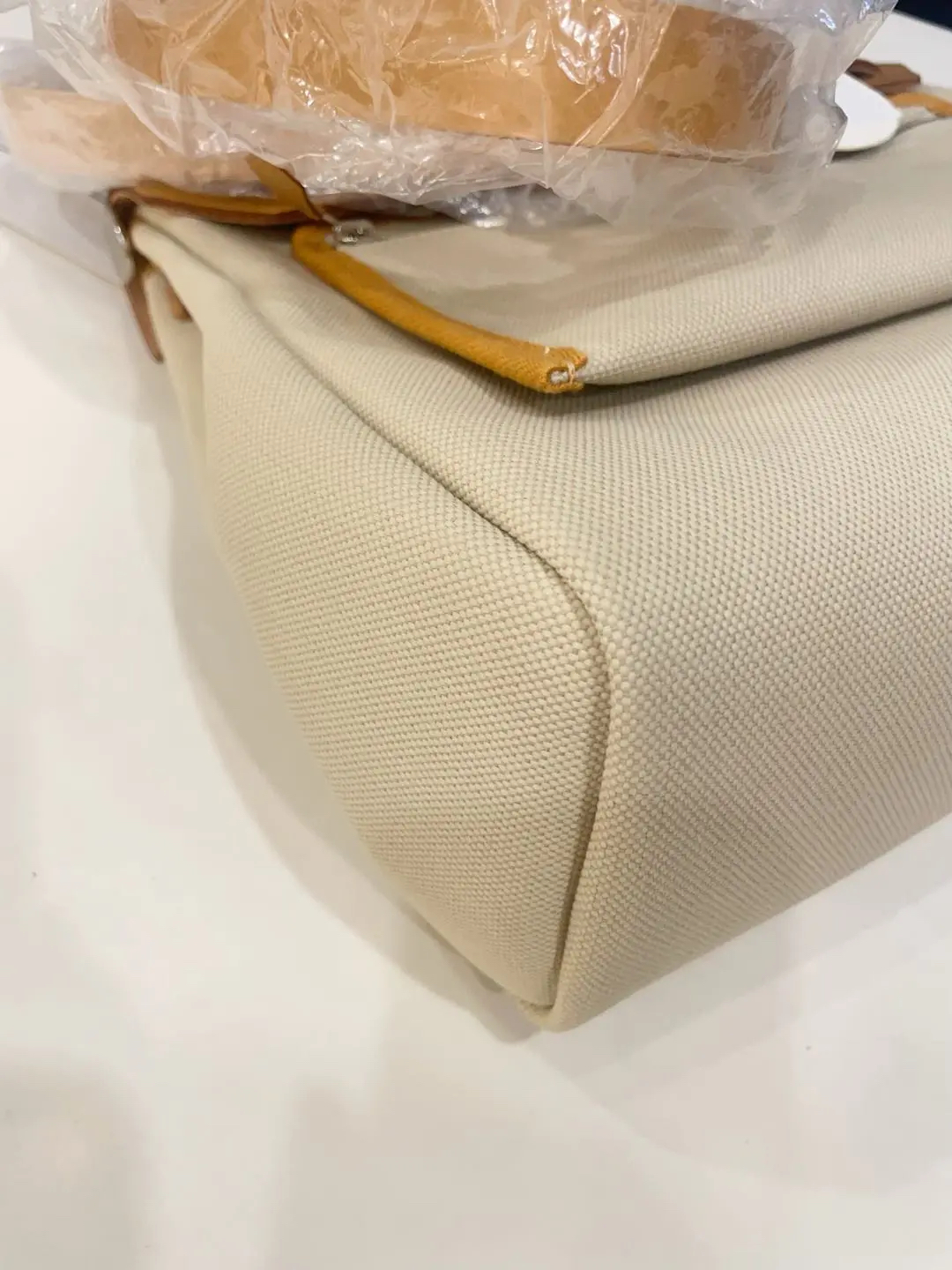 【商品详情】正品二手 爱马仕 herbag31 帆布拼皮 米白拼棕 单肩包🥳99新 31*25 U刻 配件:锁 钥匙 防尘袋。闲置成色 性价比超高