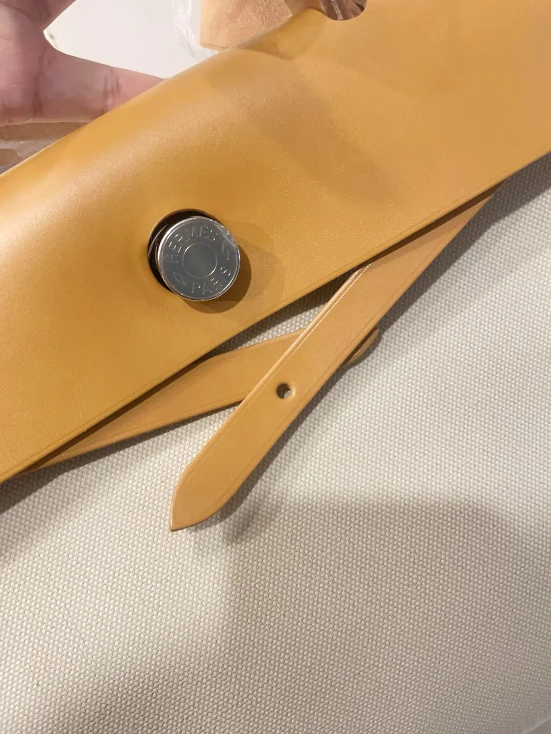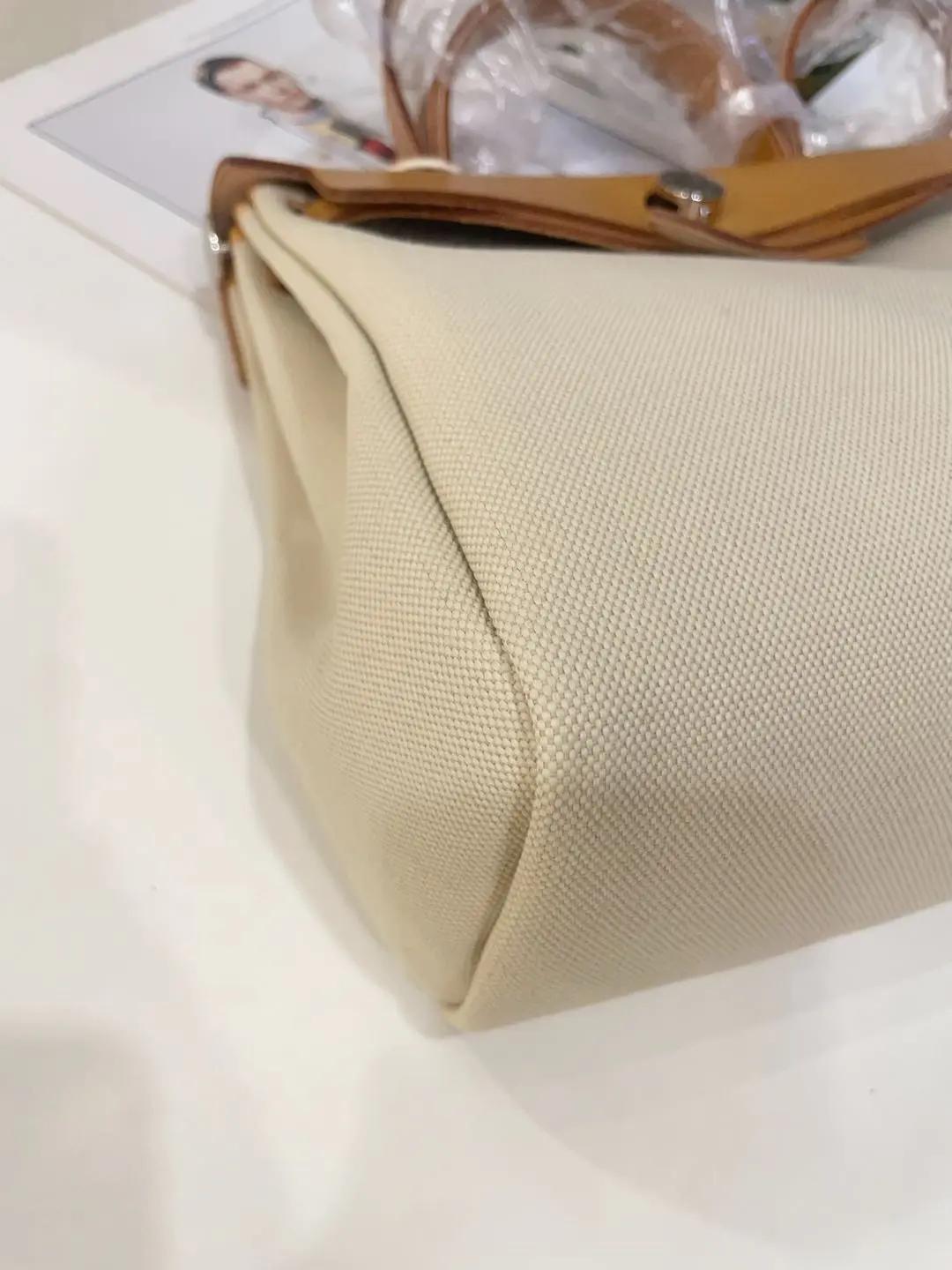 爱马仕 herbag31 帆布拼皮 米白拼棕 单肩包