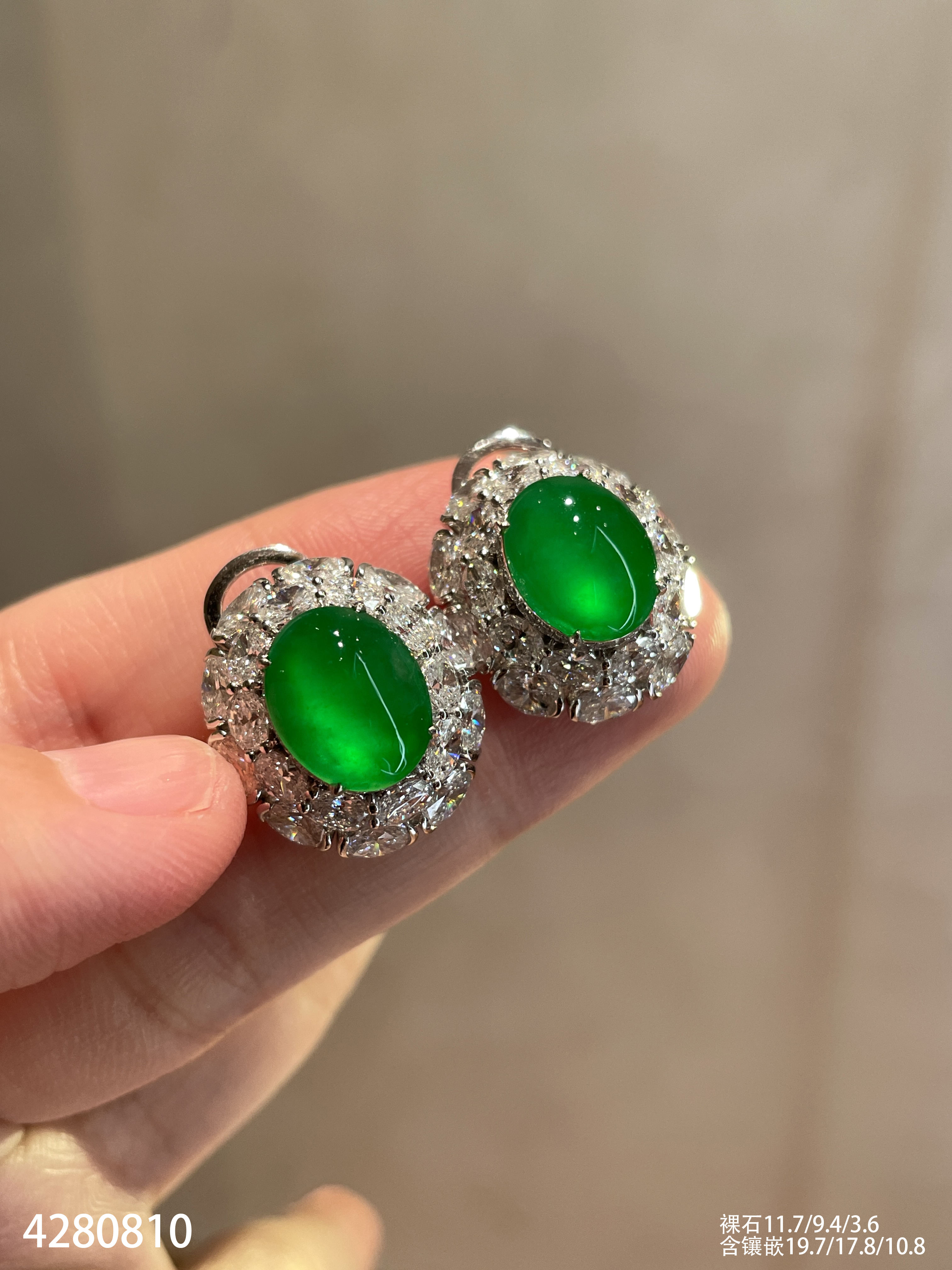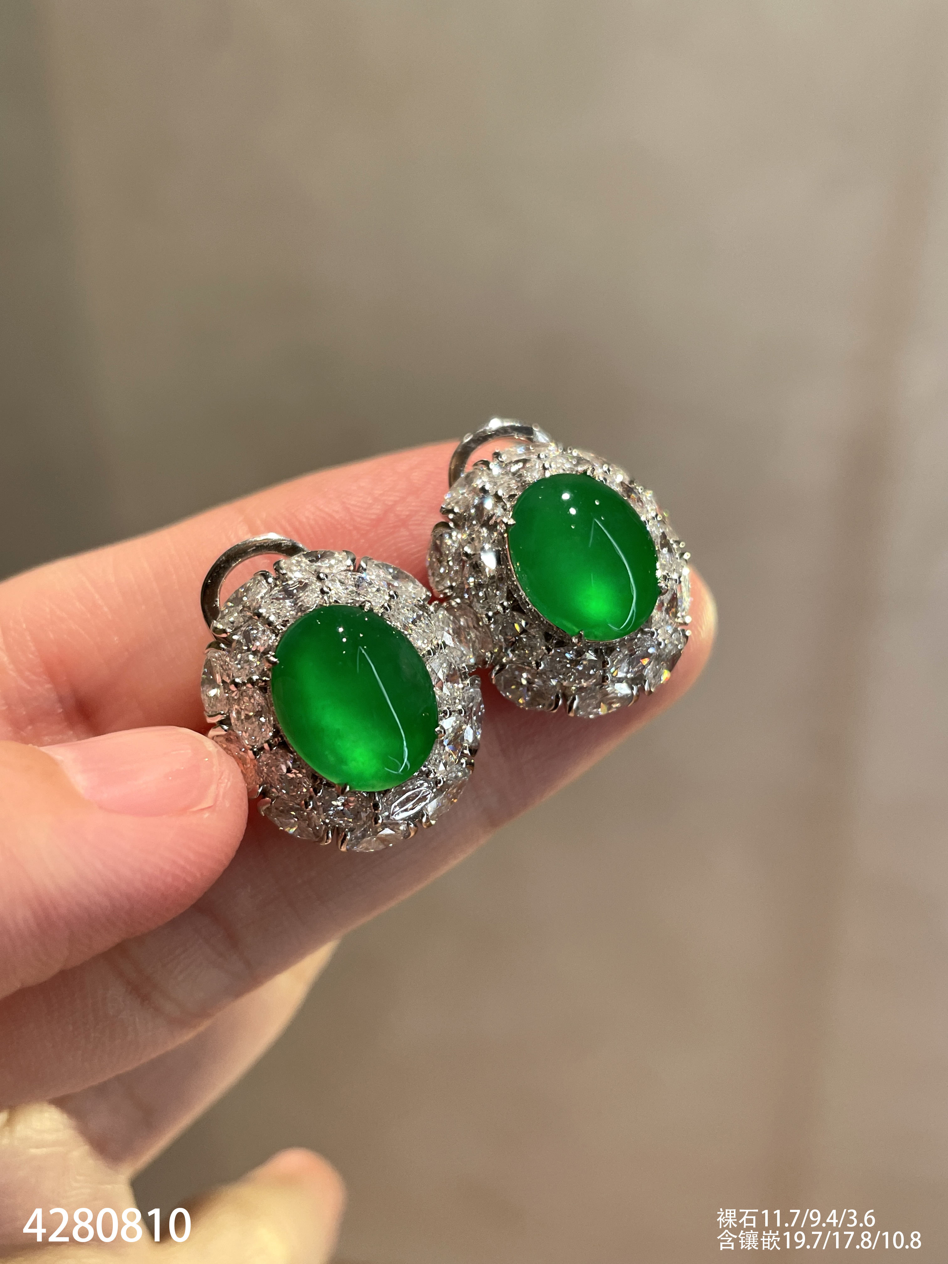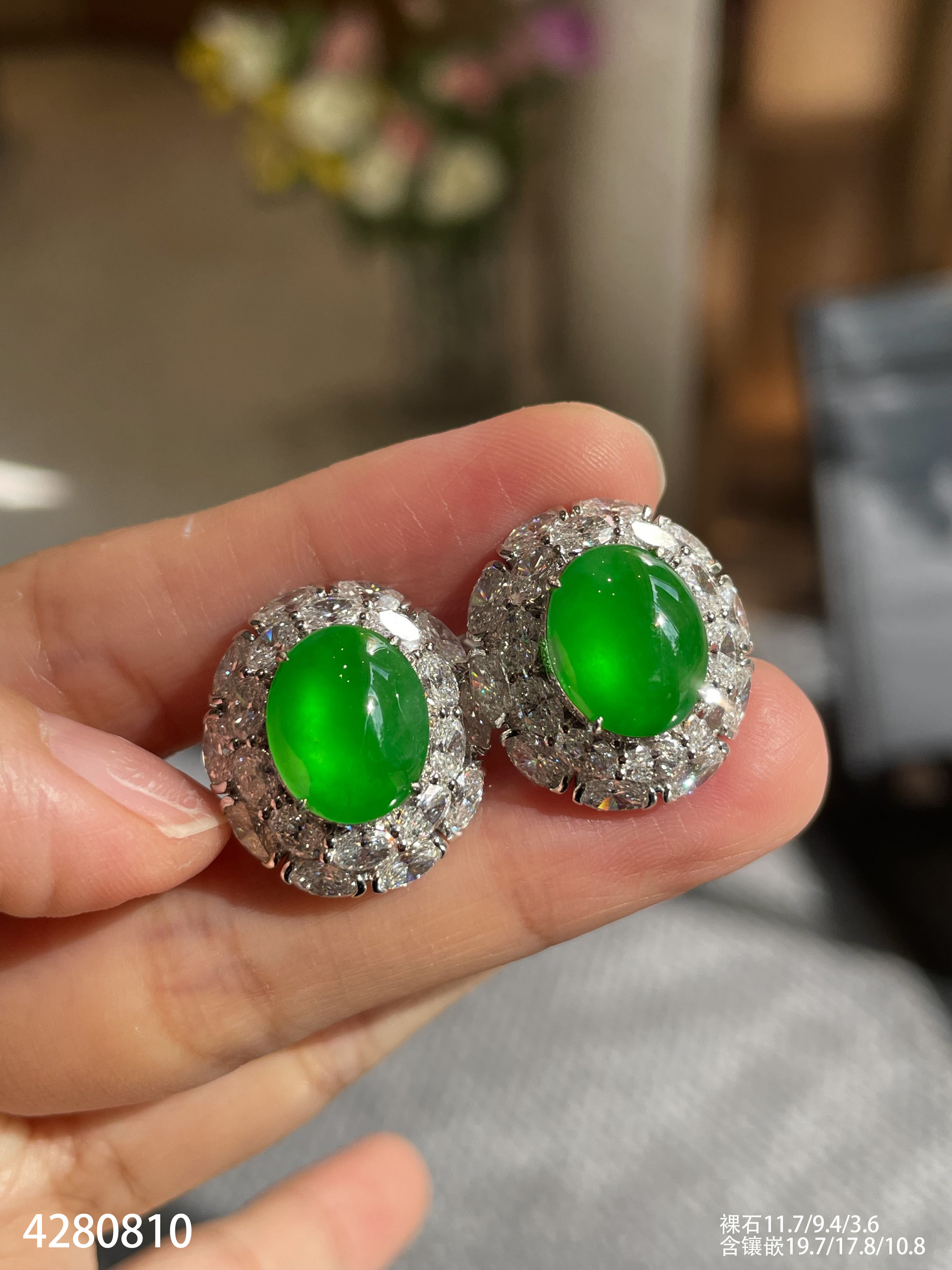 老坑玻璃种艳绿蛋面耳钉【4280810】具体价格微信咨询