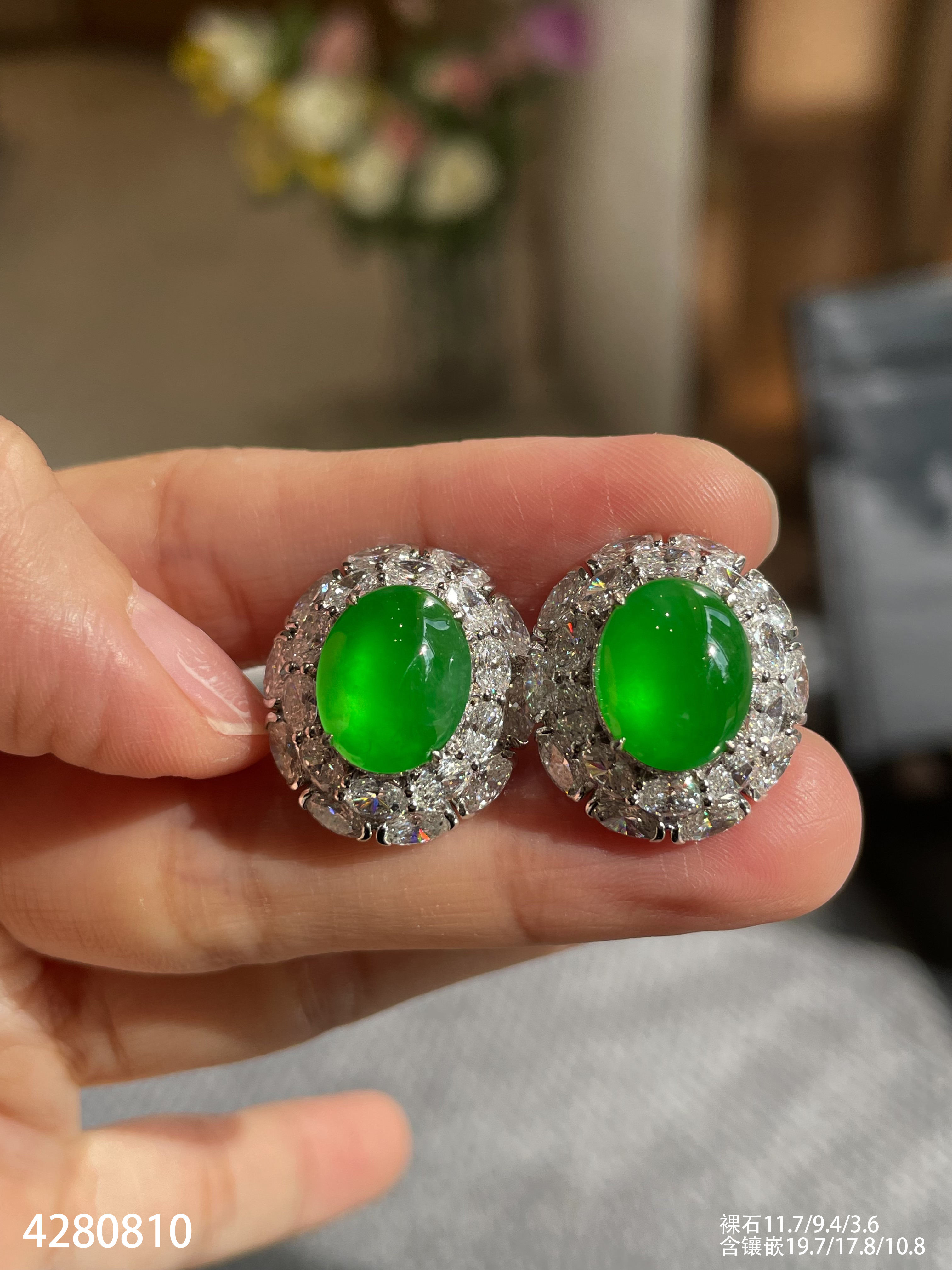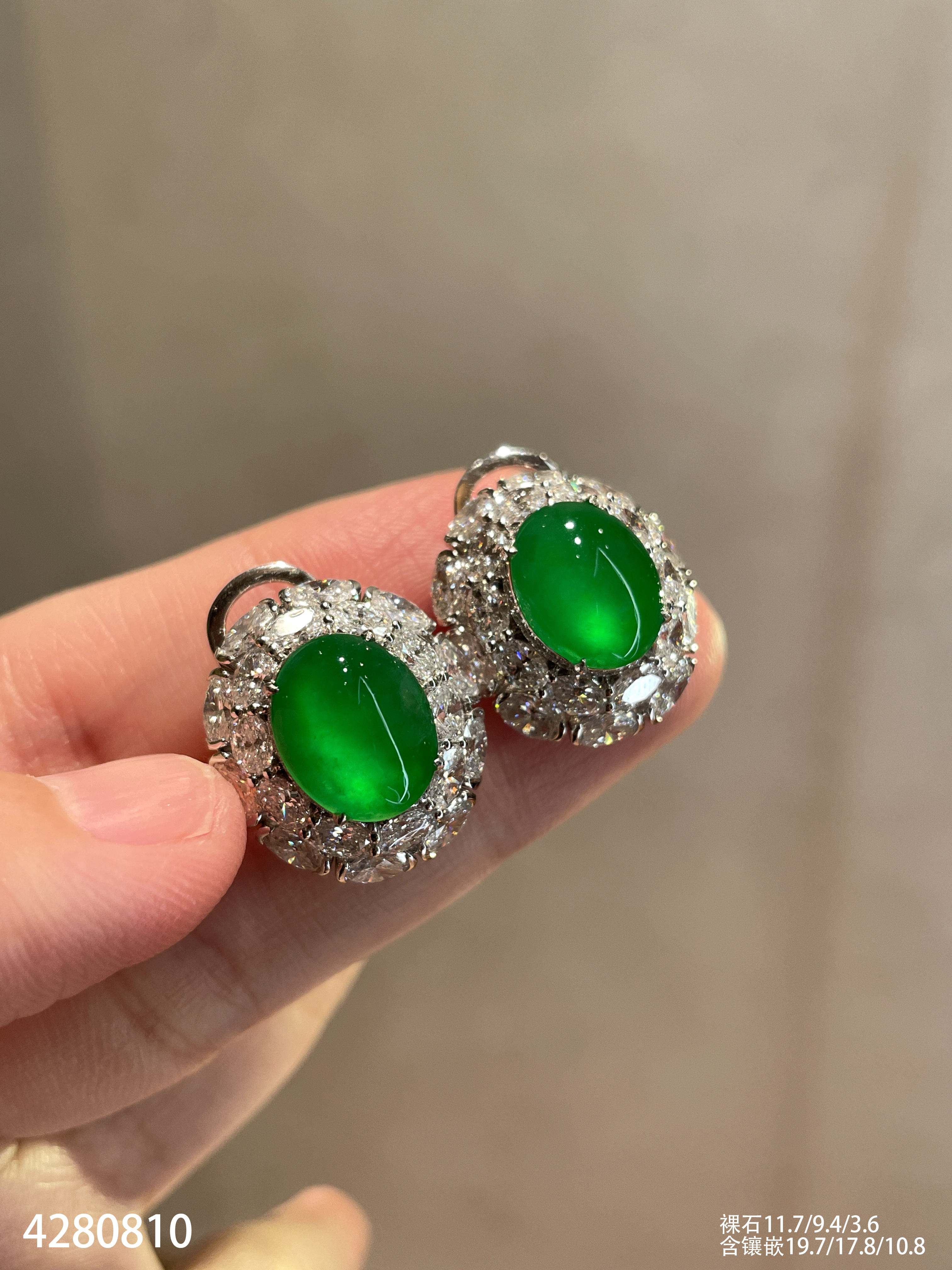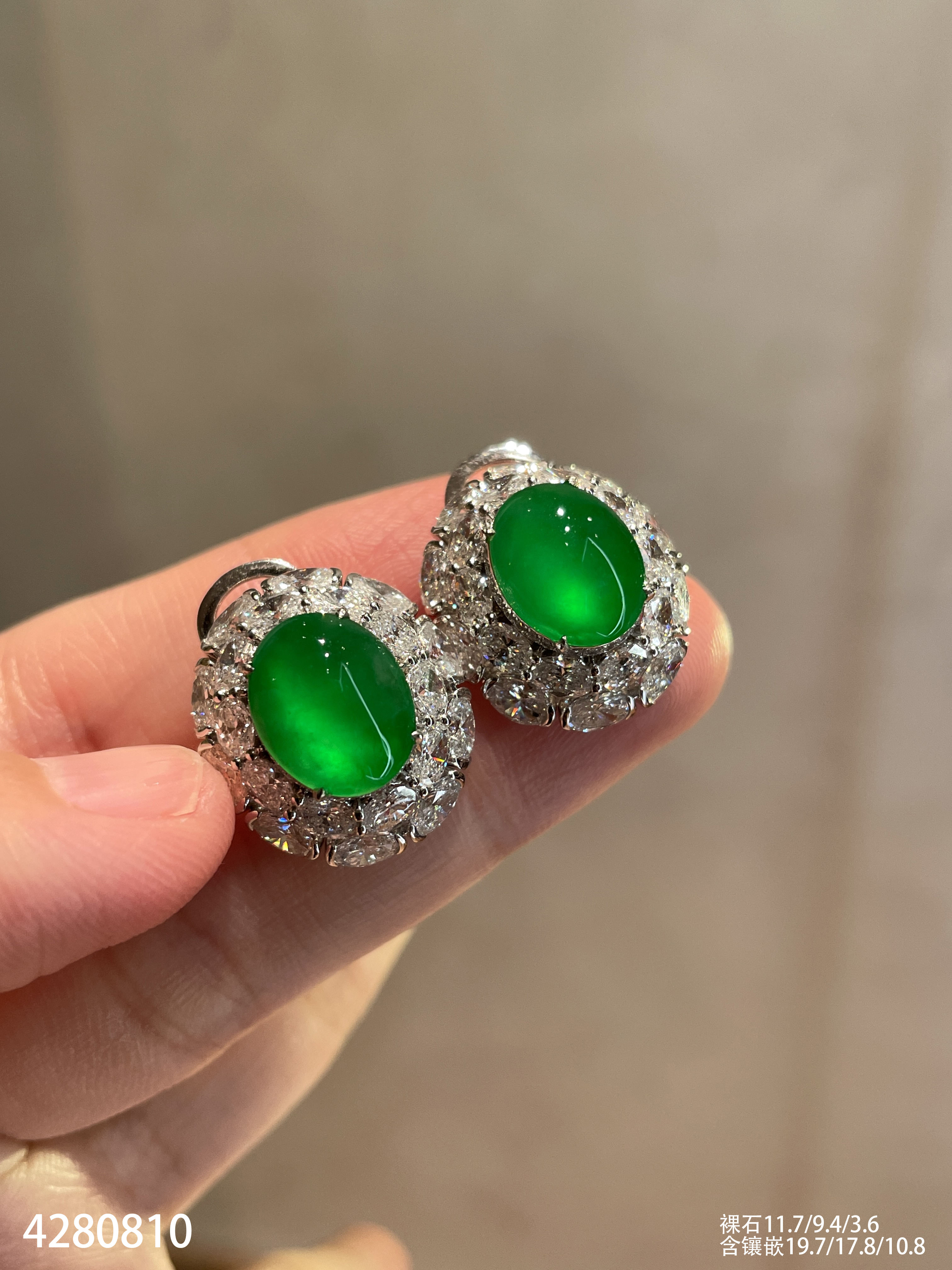 老坑玻璃种艳绿蛋面耳钉【4280810】具体价格微信咨询