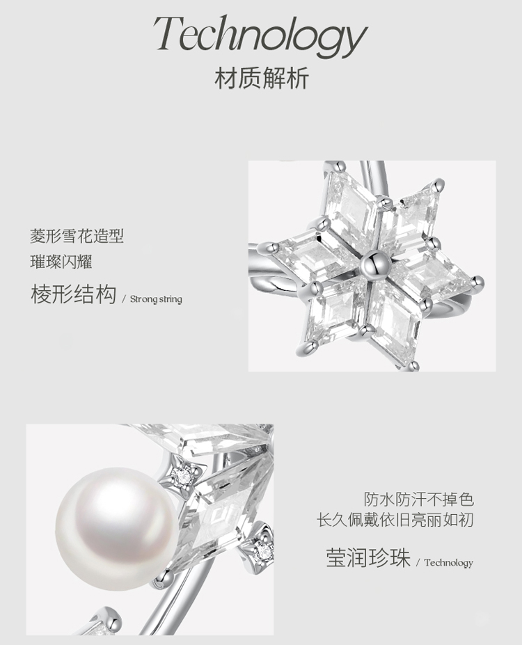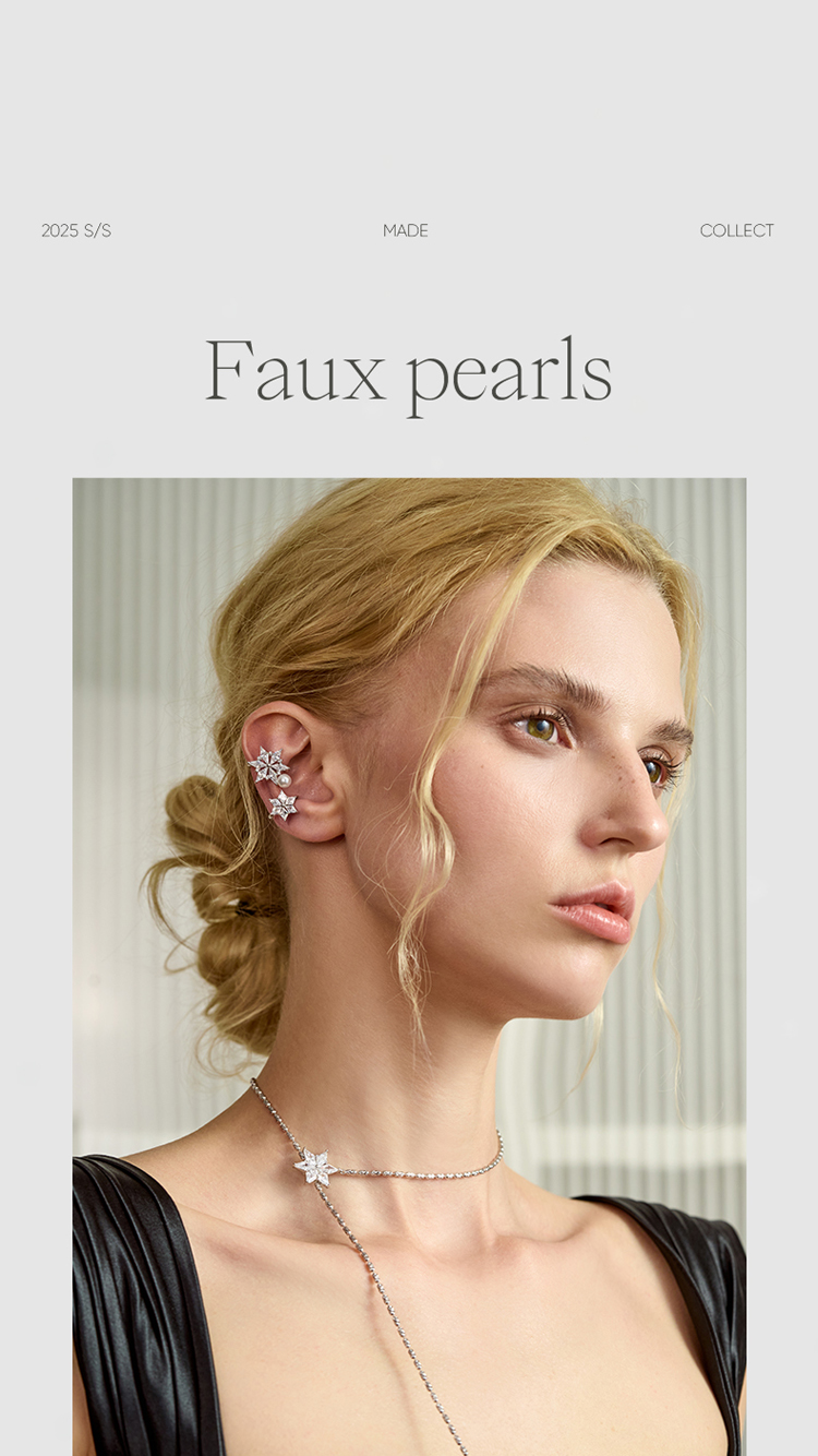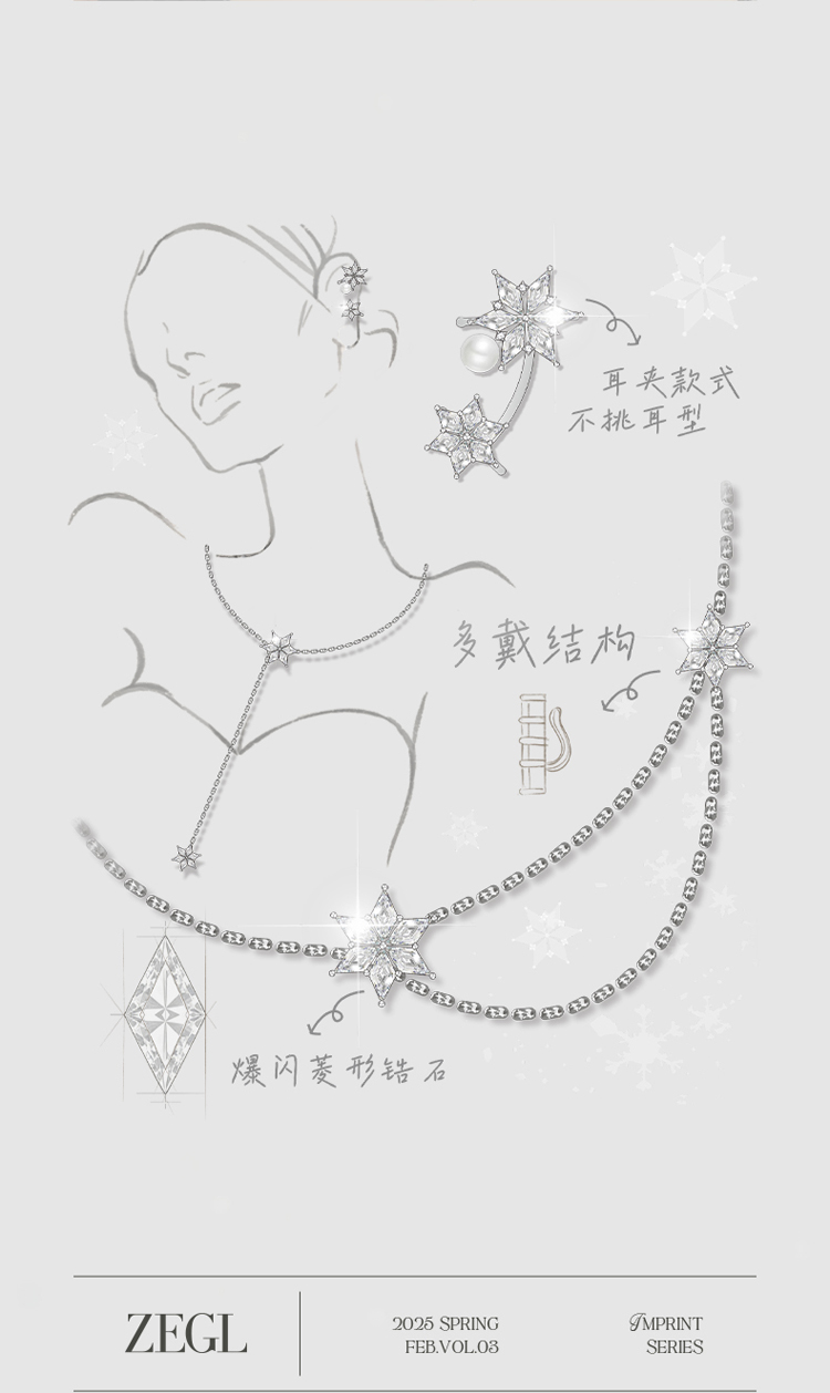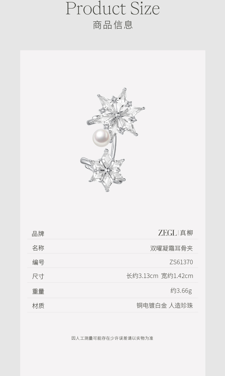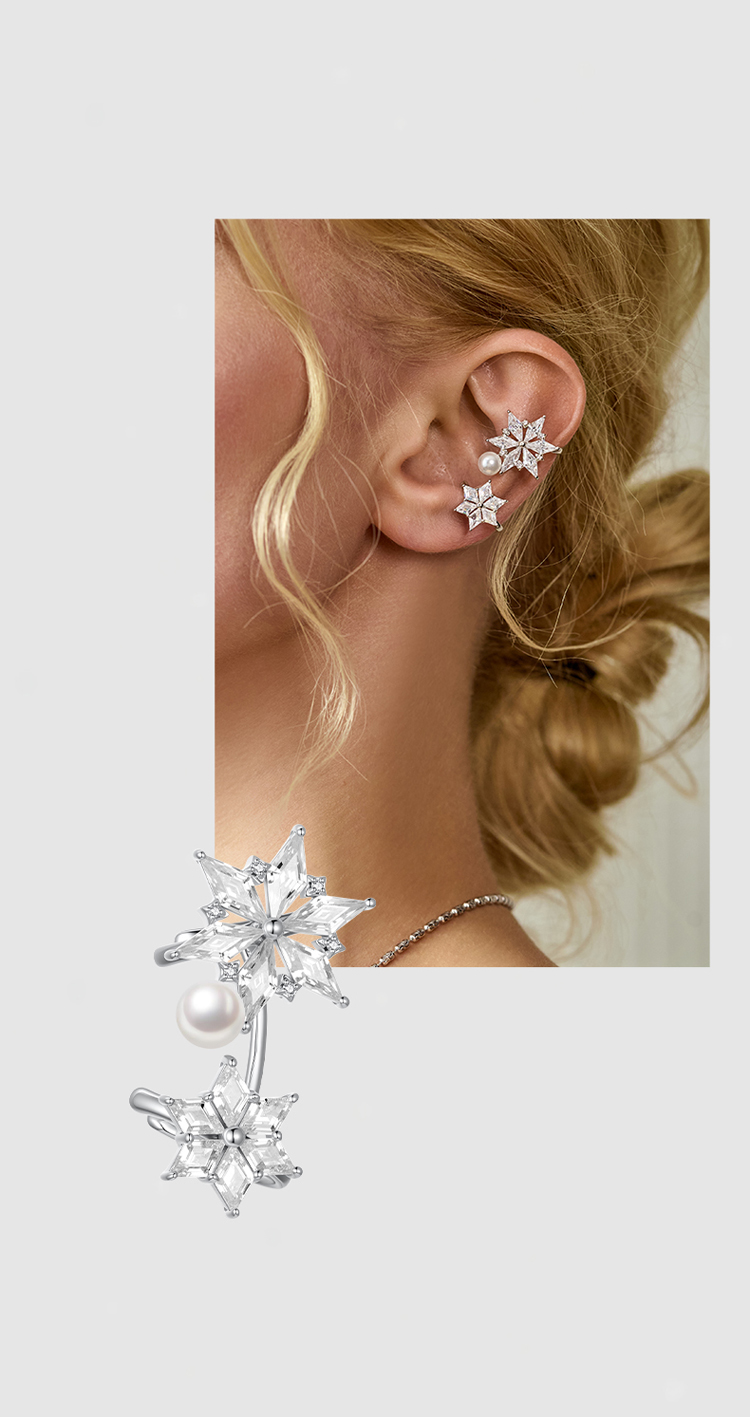 ZEGL冰凌系列雪花耳夹女轻奢精致珍珠耳骨夹小众高级感无耳洞耳饰