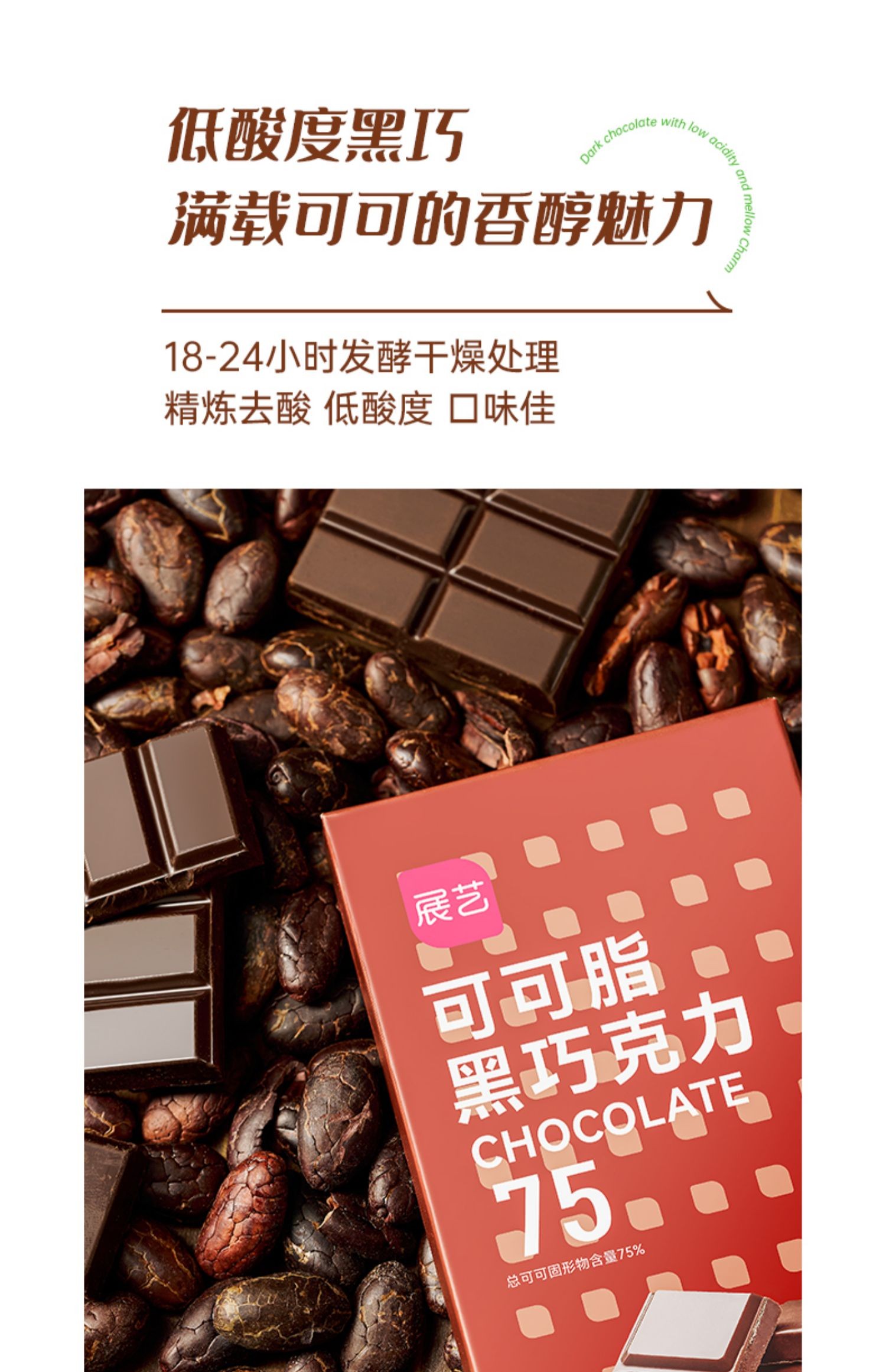 100g 展艺 75%可可脂 【黑】巧克力 巧克力排块 布朗尼甜甜圈装饰原料