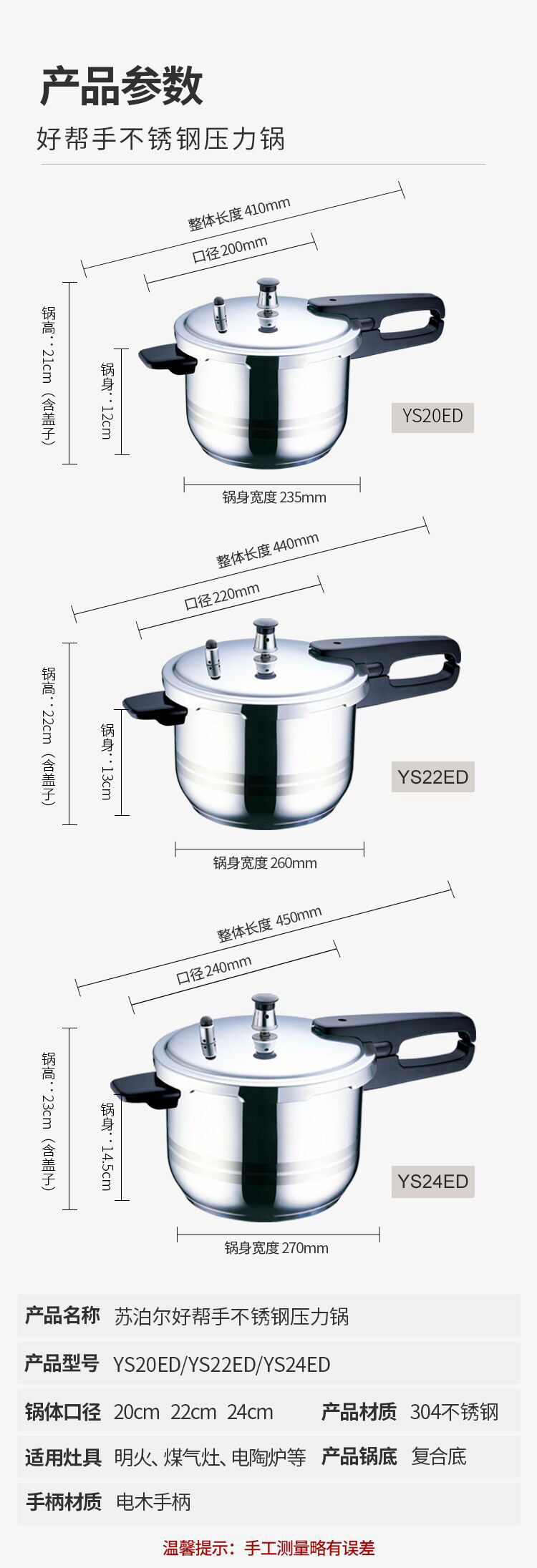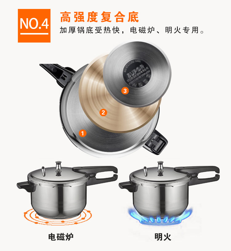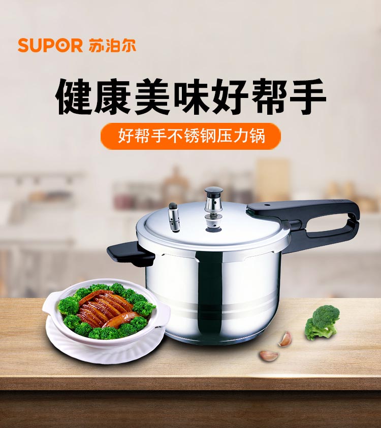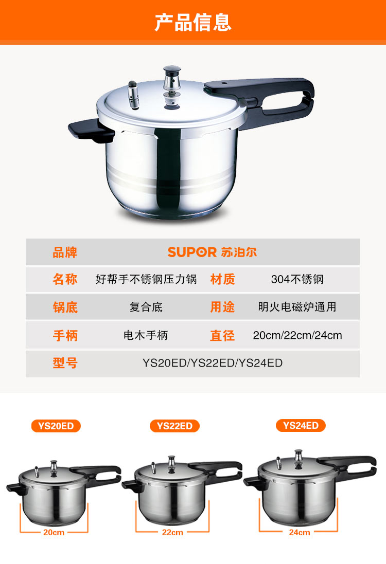 苏泊尔SUPOR好帮手304不锈钢4.0L压力锅20cm高压锅燃气电磁炉通用YS20ED