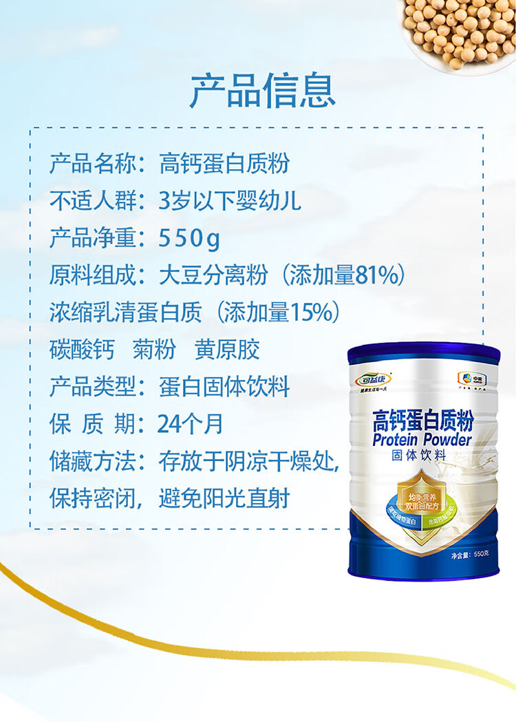 可益康中粮高钙蛋白粉 蛋白质粉动植物双蛋白乳清蛋白粉送年货节送礼礼品(净含量:550g)