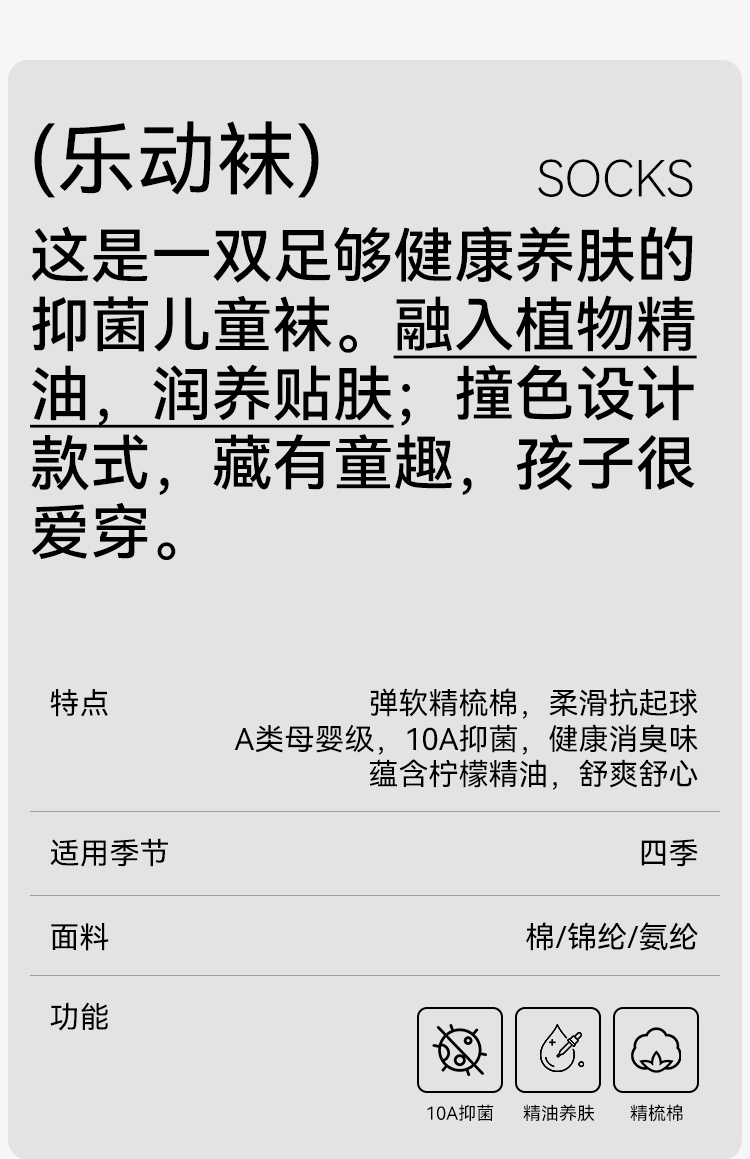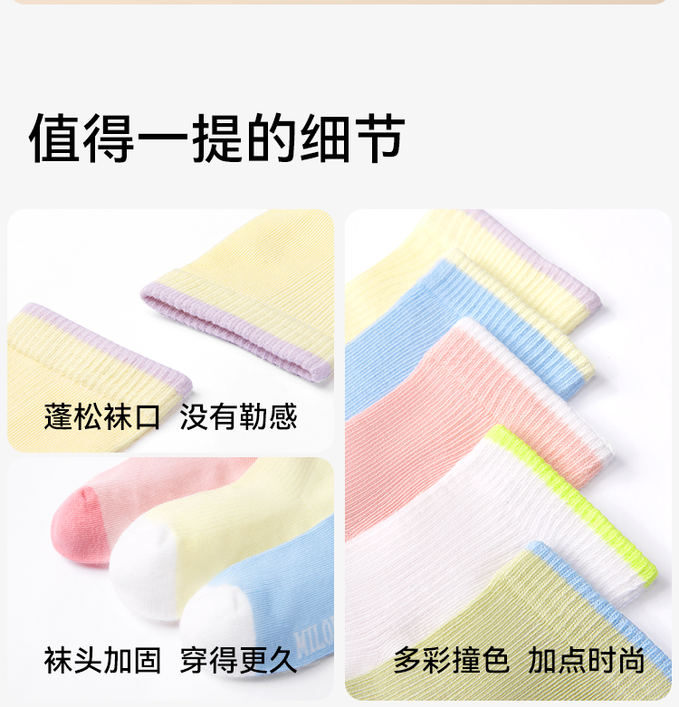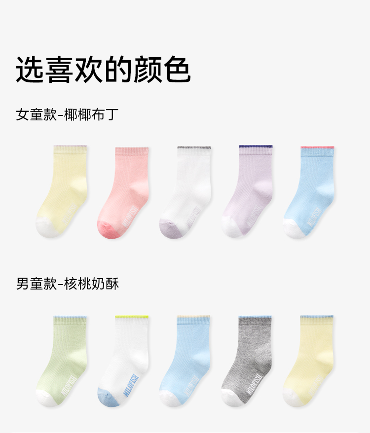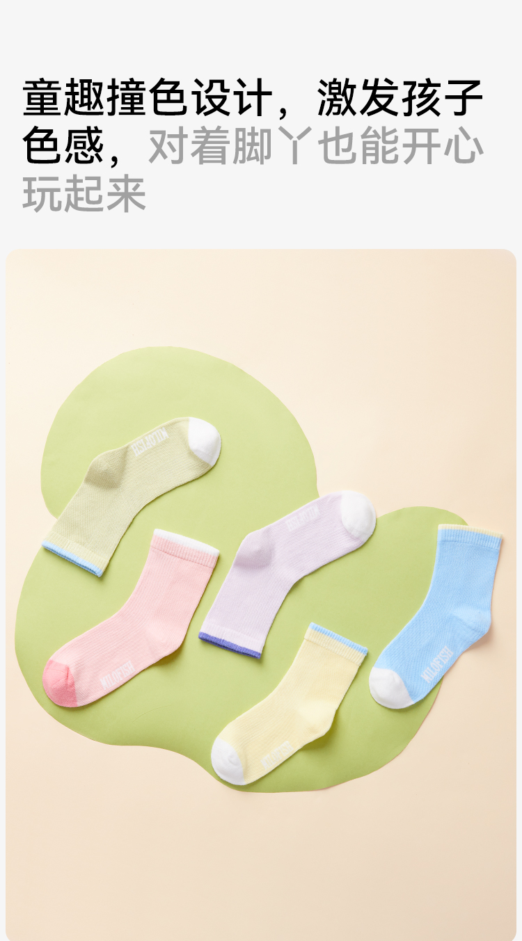 MILOFISH米乐鱼儿童10A级长效抑菌柠檬精油无骨袜-中筒5双【2510“羊毛”服装】