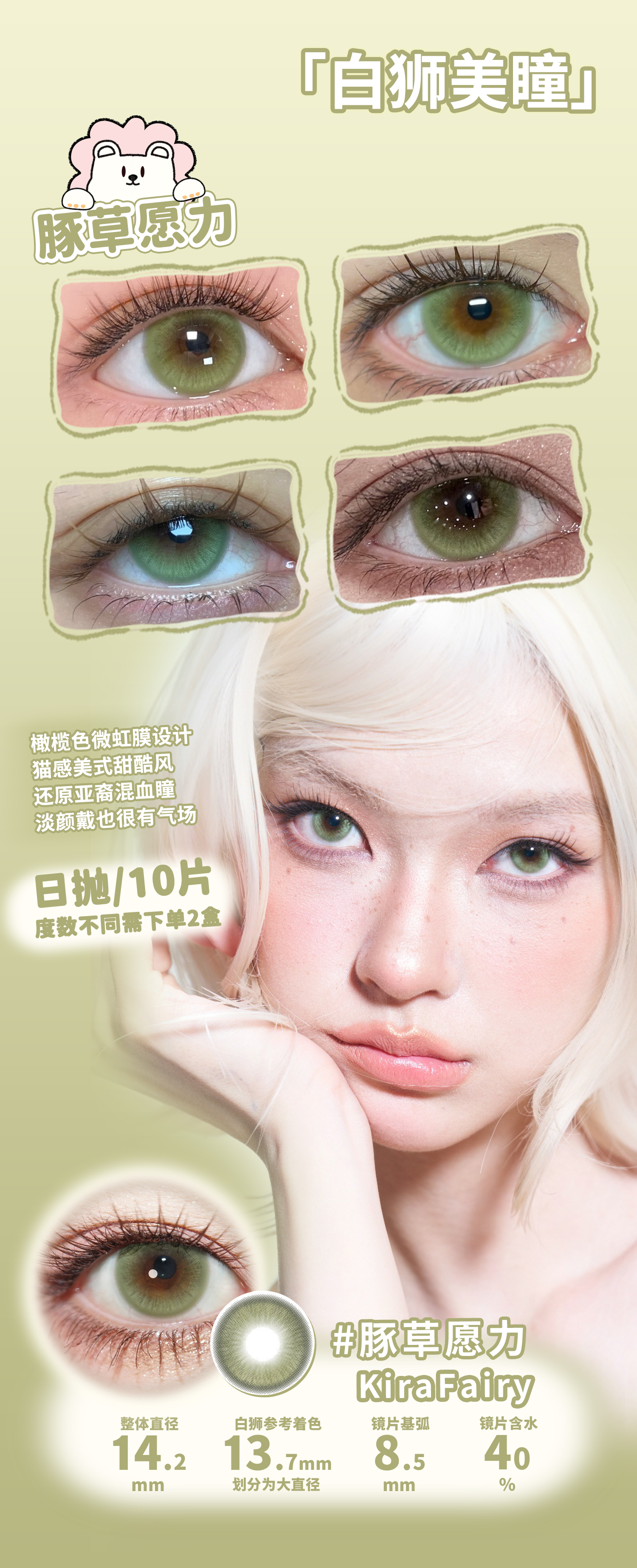 Kira Fairy旗下 ·豚草愿力&木薯心·14.2mm白狮参考着色大直径| 日抛十片装