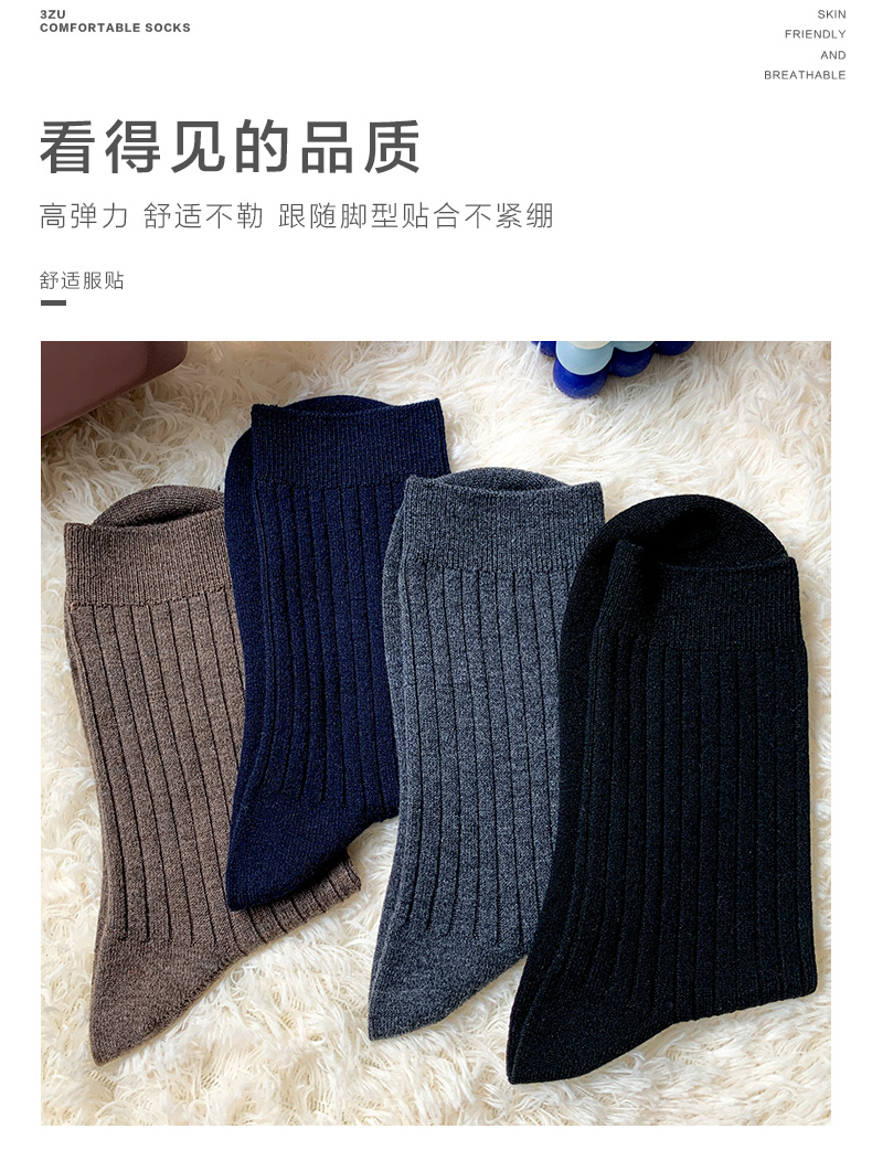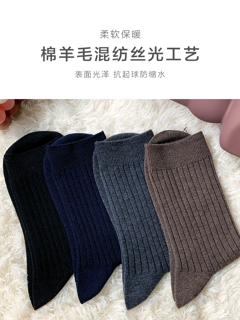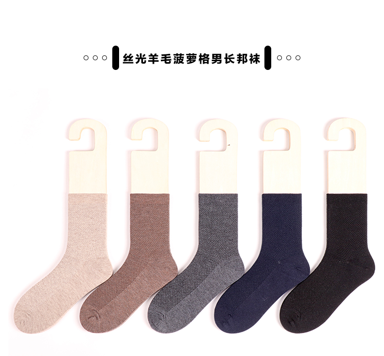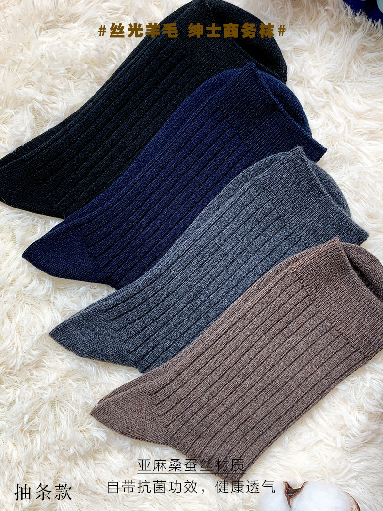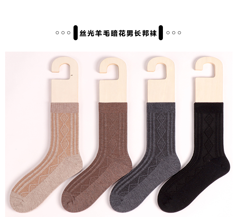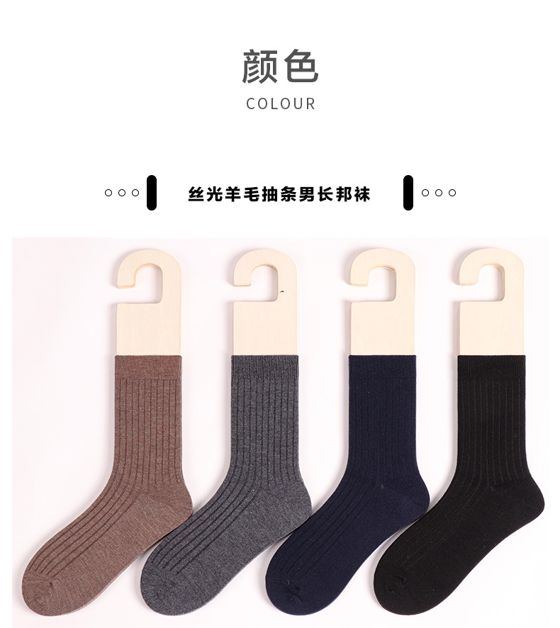 23秋冬新品男士丝光羊毛保暖柔软绅士商务长筒纯色百搭男袜