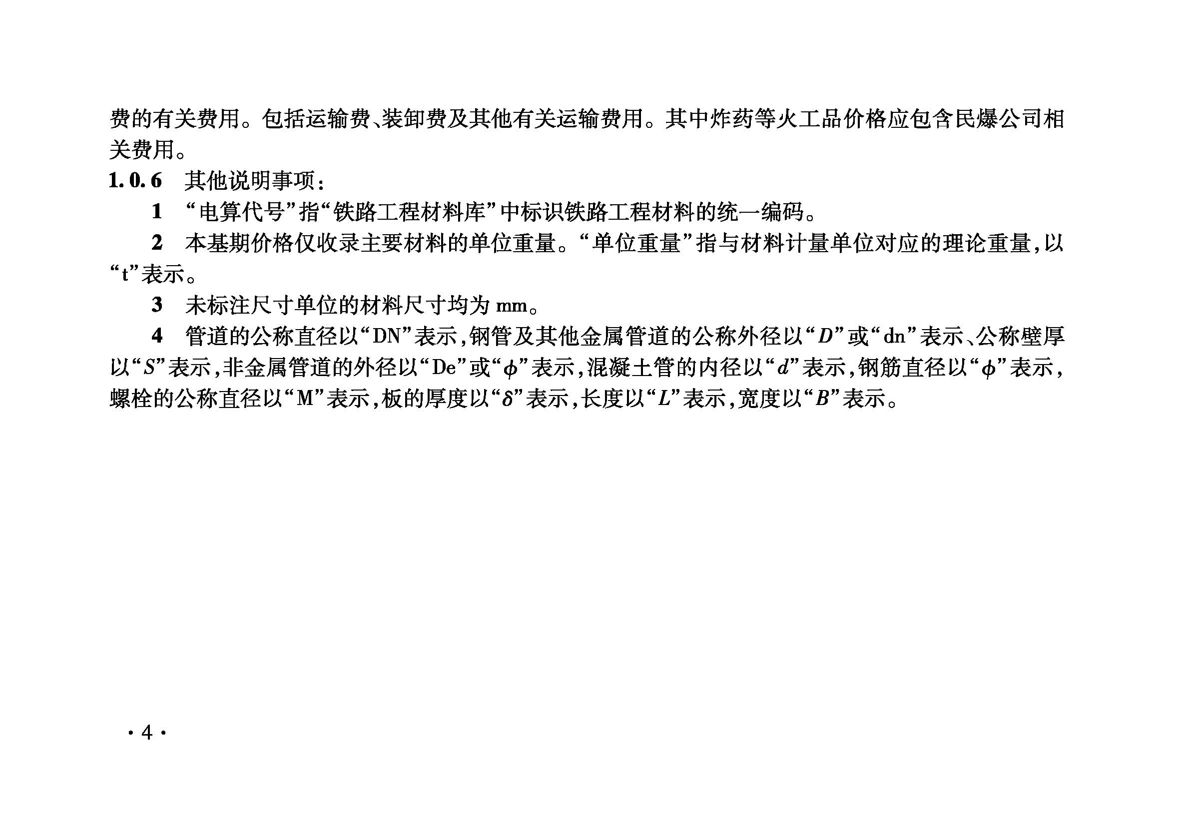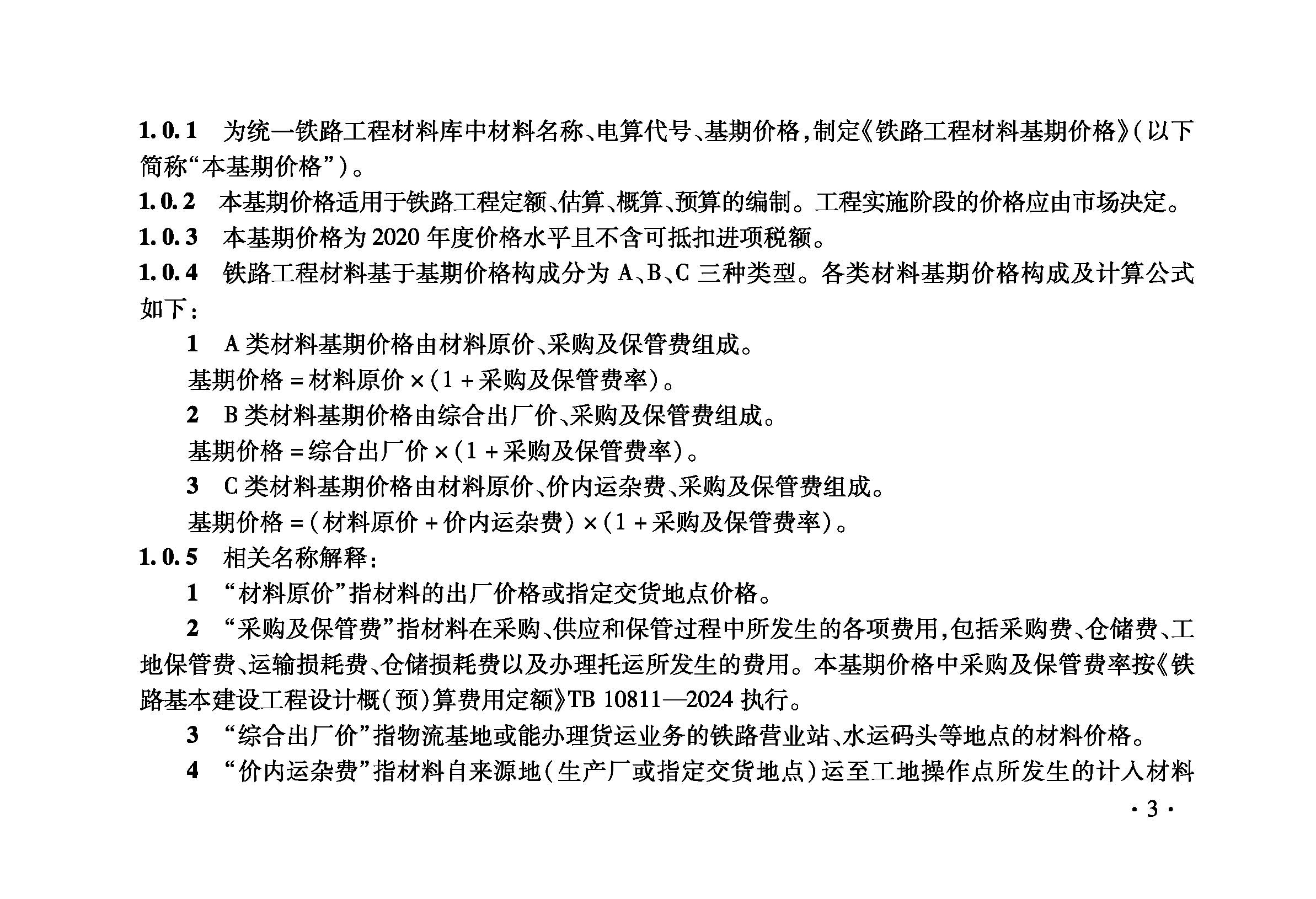 《铁路工程材料基期价格》(以下简称“本基期价格”)在《铁路工程材料基期价格》(TZJ003-2017)基础上,根据现行铁路行业标准及工程建设需要,借鉴参考科研成果及相关行业材料价格信息,修订而成。