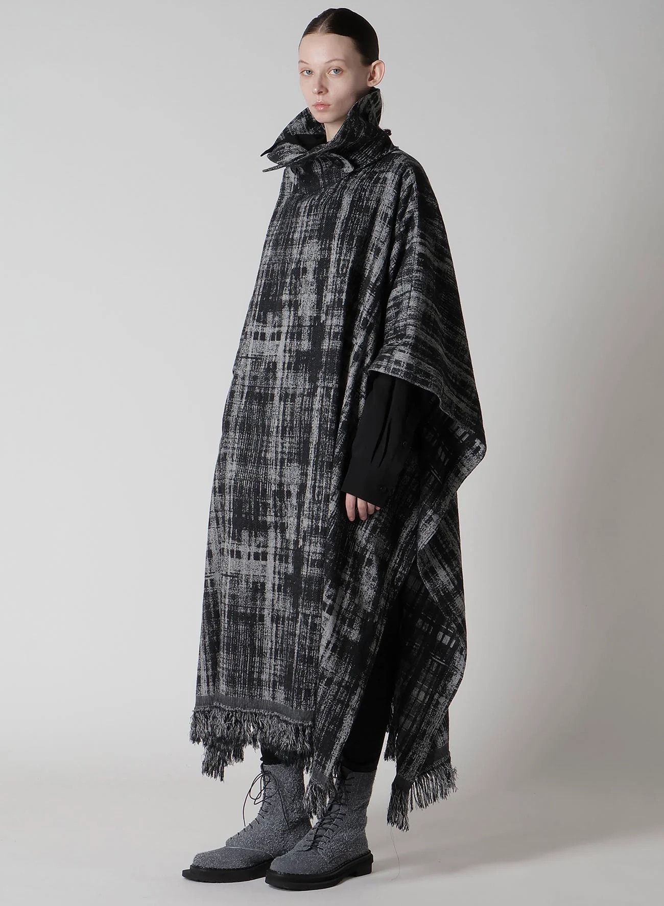 这款单色格伦格纹斗篷大衣采用精心设计的提花面料制成,展现出丰富的质感。采用按扣深扣设计,其围裹式设计可搭配立领或翻领,并可搭配腰带。两侧开口设计带来百搭性,使其成为任何外套的点睛之笔。