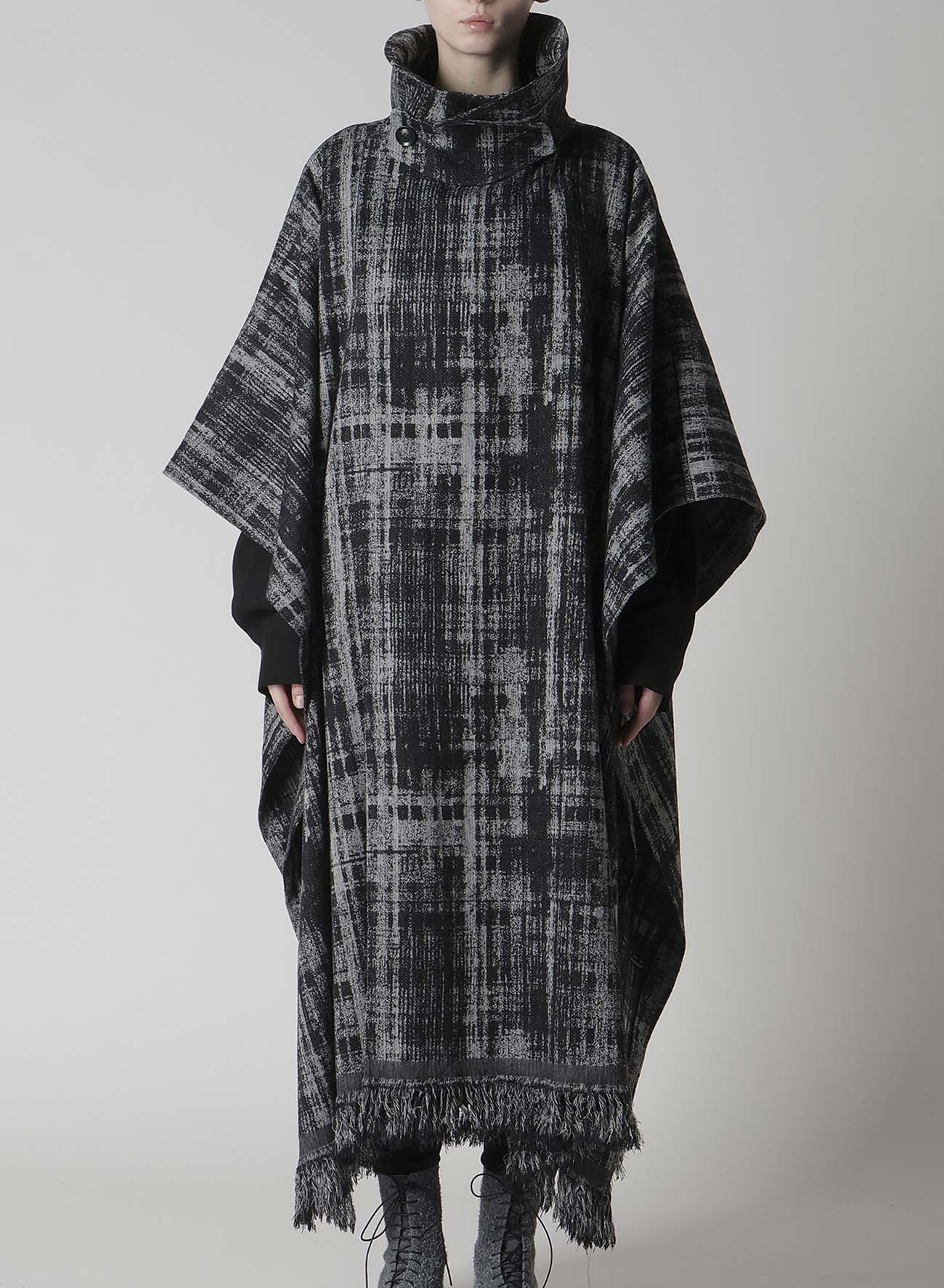 单色格伦格纹斗篷大衣