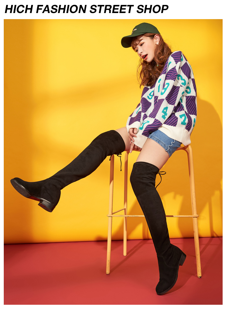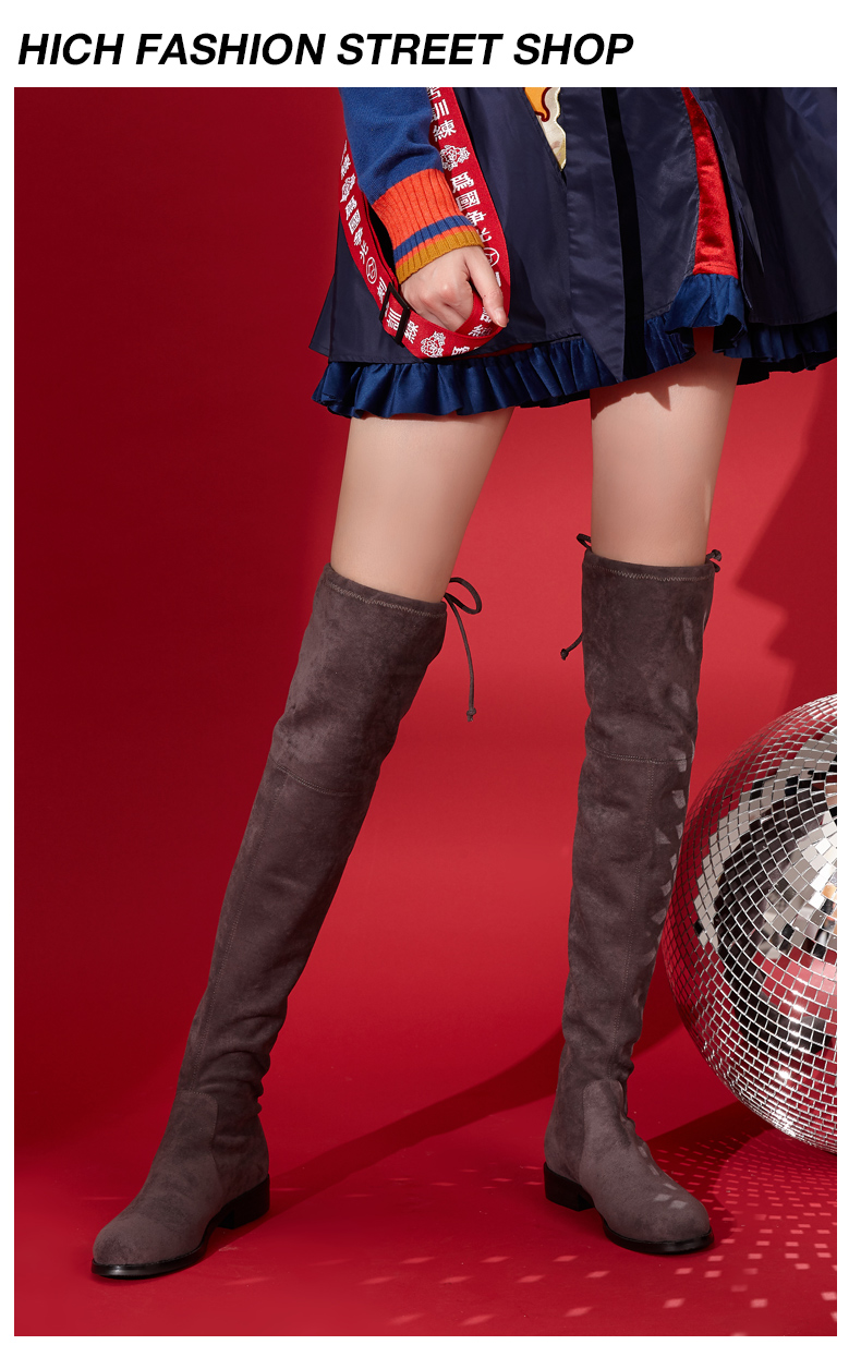 西村名物过膝长筒靴女2020秋冬新款平底弹力短靴瘦瘦袜靴女T284I44201