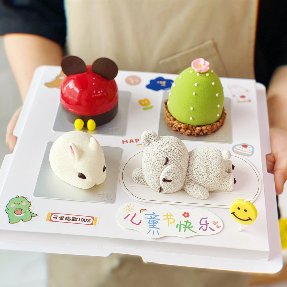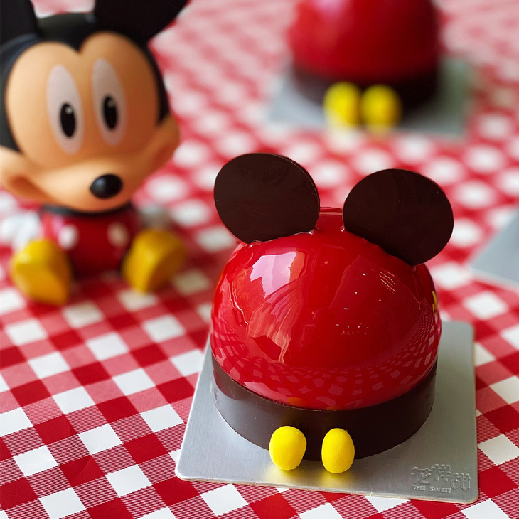 主体草莓奶昔口味慕斯中,特别添加法芙娜白巧克力,营造出夏日喜爱的冰淇淋口感,开心果清爽坚果香气与草莓果酱夹心纠缠,夏日的酸甜气息萦绕,像调皮的米奇在挑逗舌尖