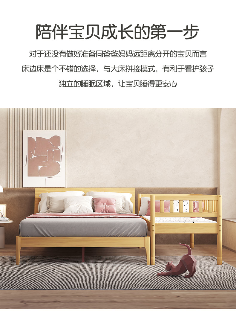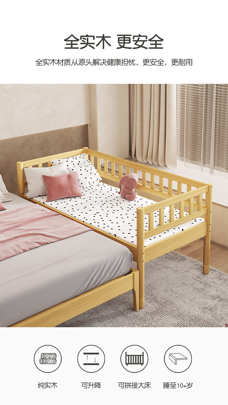 喜梦宝床边床拼接床加宽床边带护栏儿童小床拼接大床