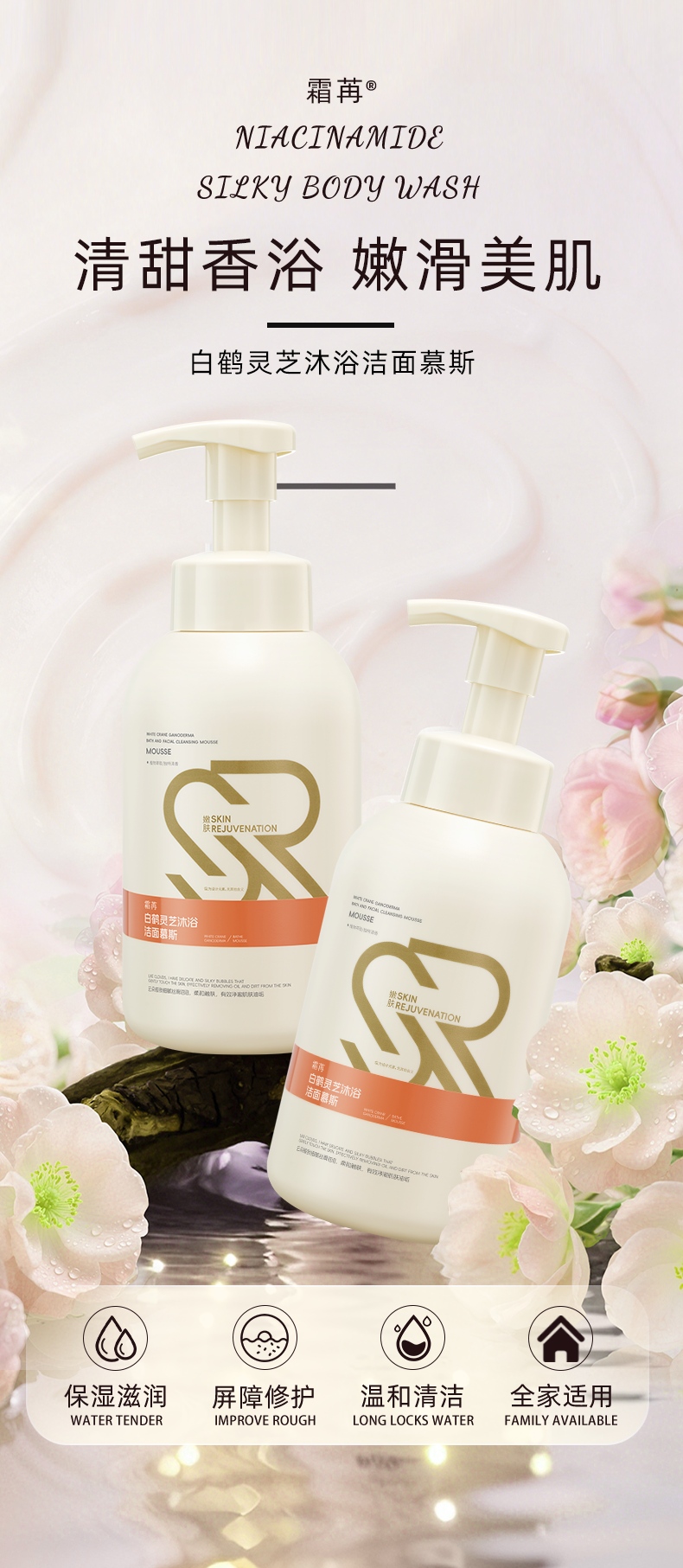 自营(菲小主)-霜苒 白鹤灵芝沐浴洁面慕斯500ml