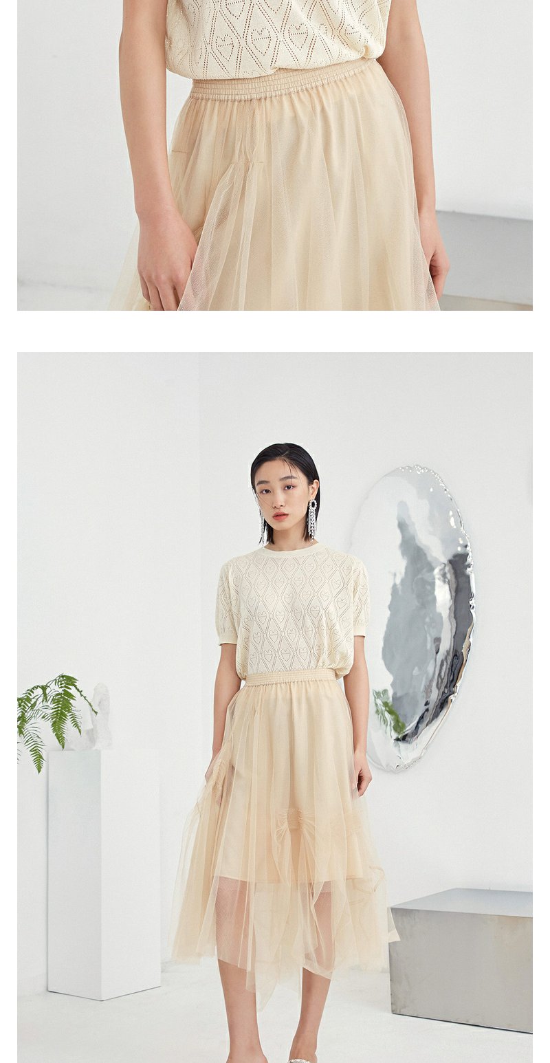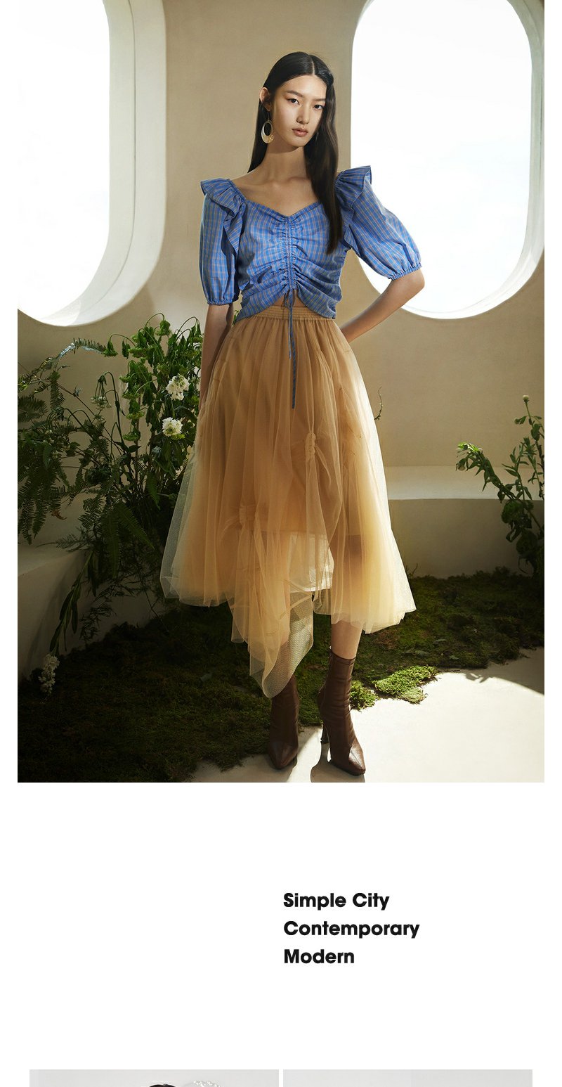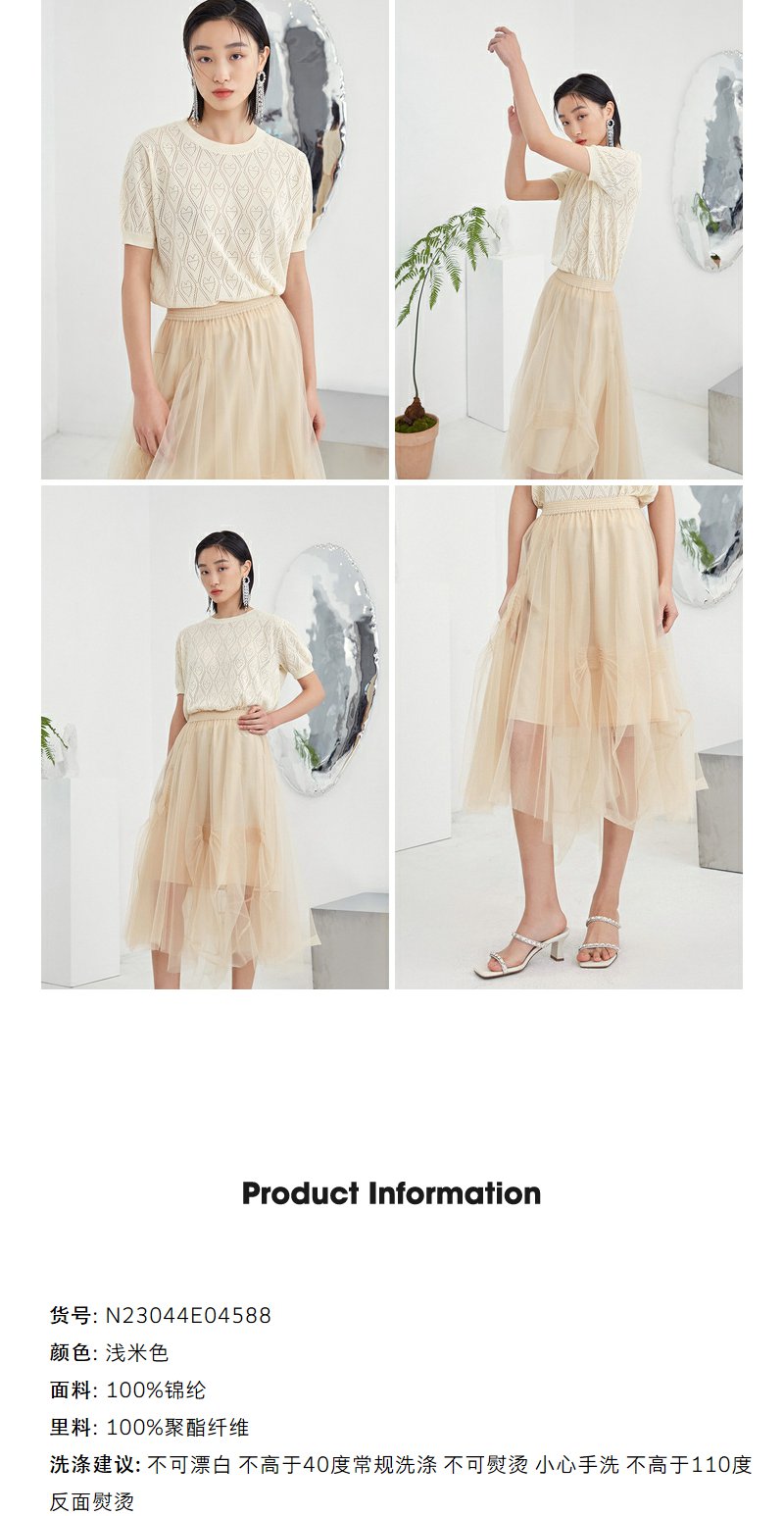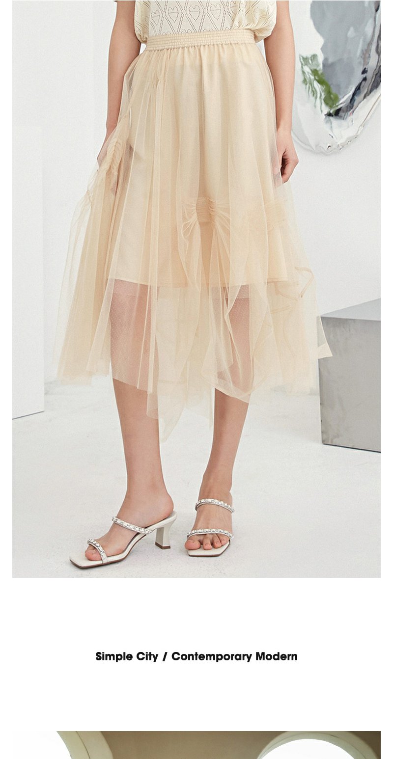 NEELLY纳俪商场同款不规则网纱裙高腰中长款抽褶A字公主裙半身裙