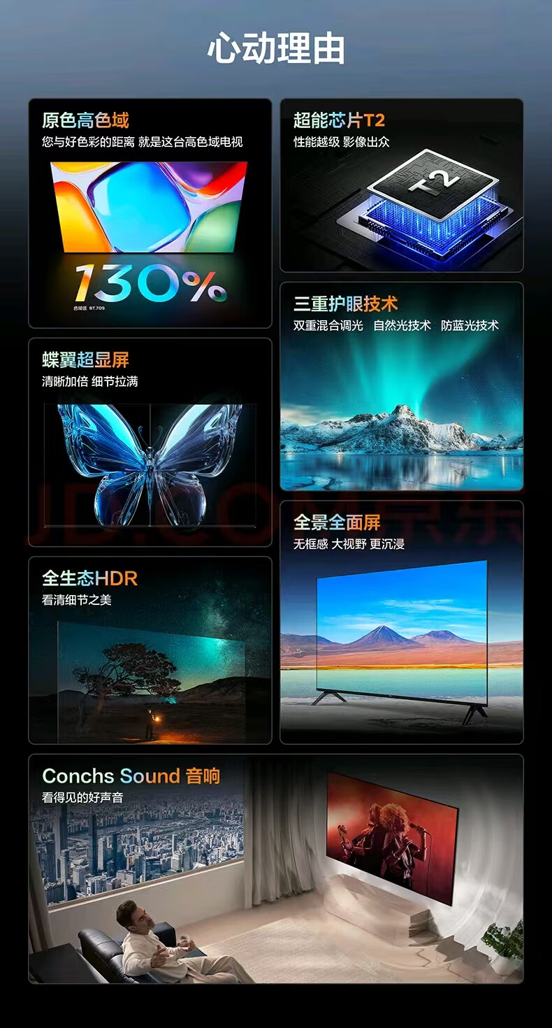 TCL32/43英寸全面屏_护眼电视_色域%130_老人_小孩看网络电视机_43英寸_43S11K-F_色域130%