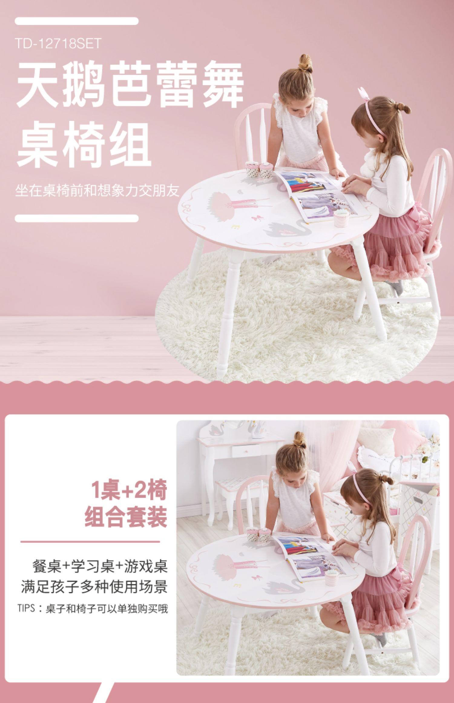 teamson纷朵奇儿童桌椅套装小桌小椅子靠背椅幼儿园家用女孩礼物
