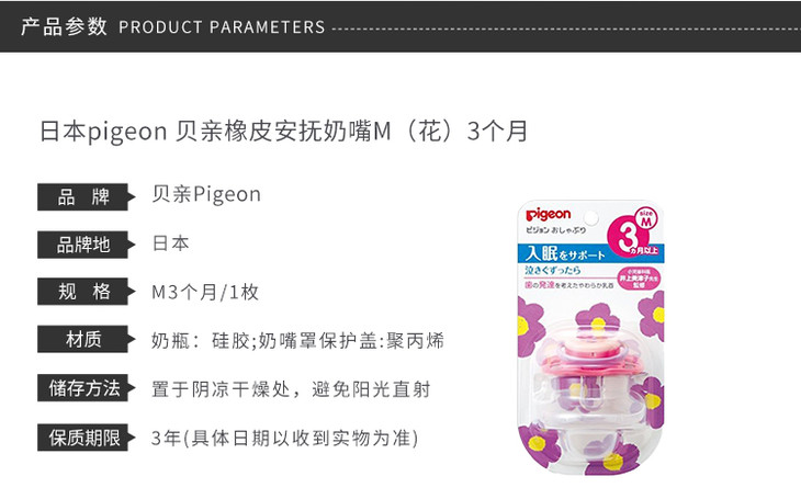 【一般贸易】日本Pigeon/贝亲 橡皮安抚奶嘴M(花)3个月