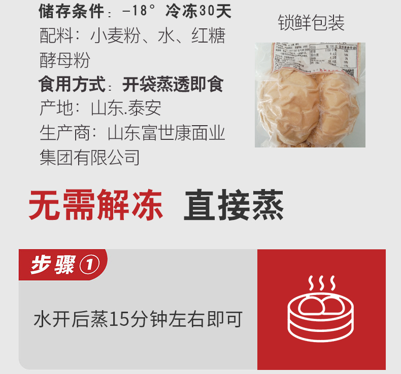 富世康 红糖馒头 老面早餐面点 儿童馒头早茶点心500g/袋