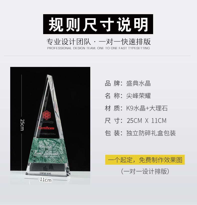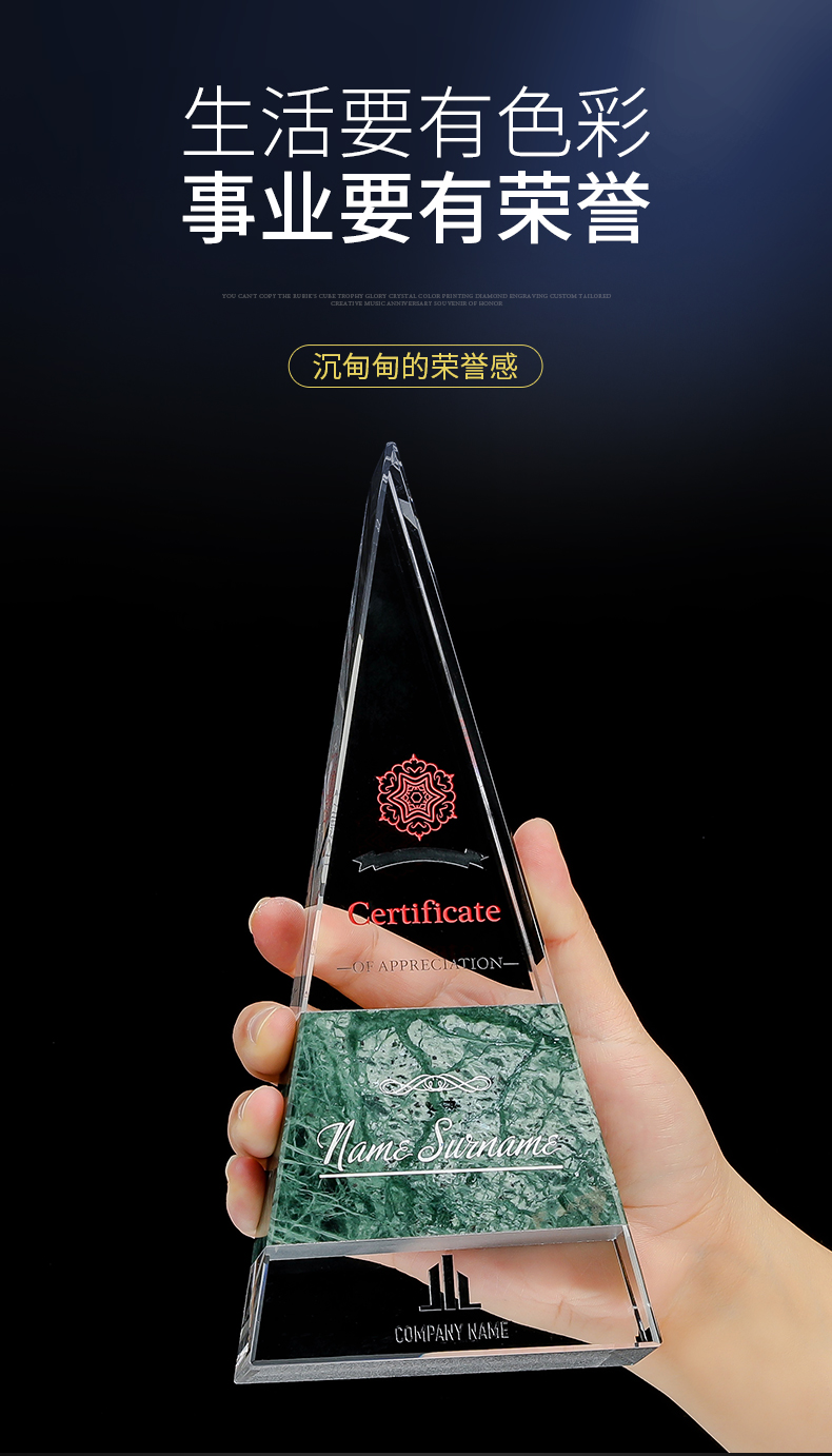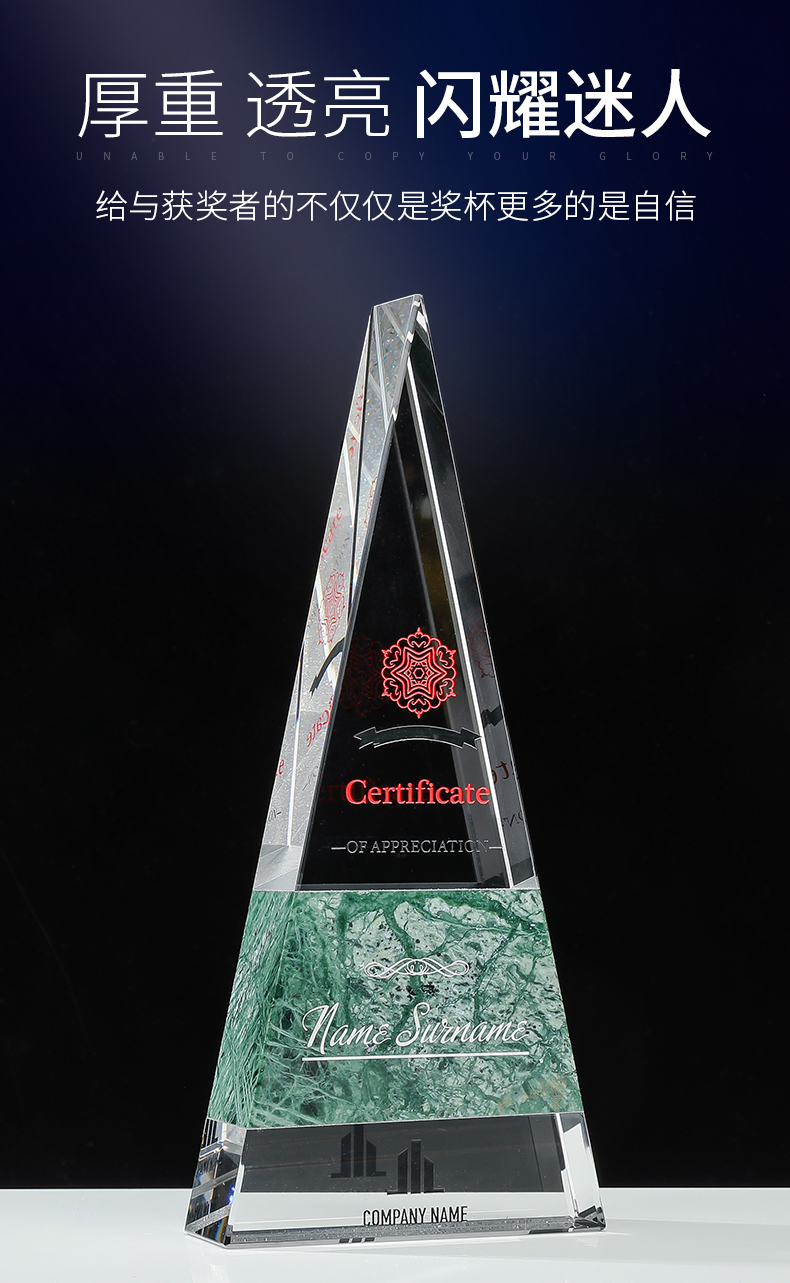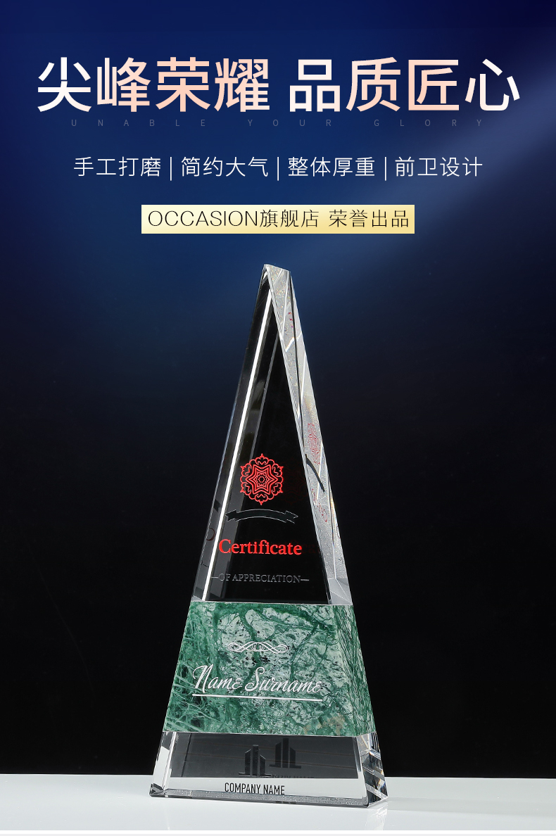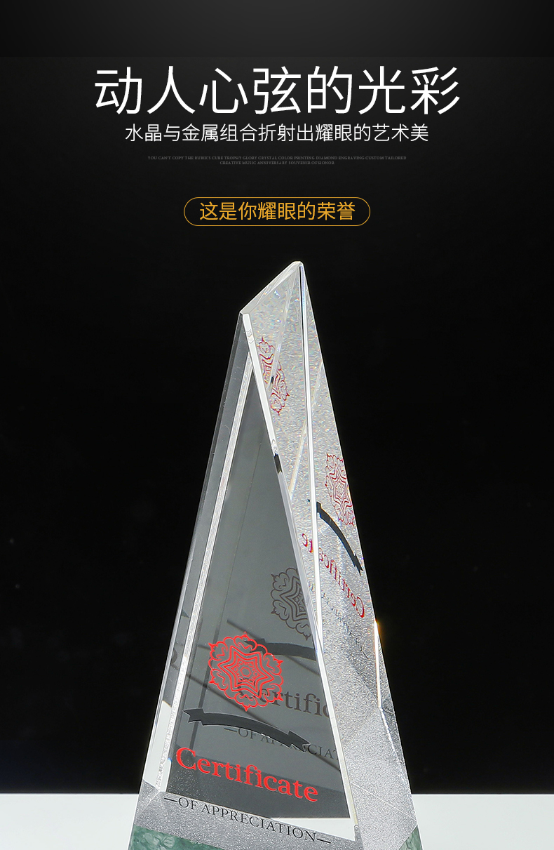 高档水晶奖杯金属CD纹创意企业年会优秀员工银行保险嘉奖纪念奖杯