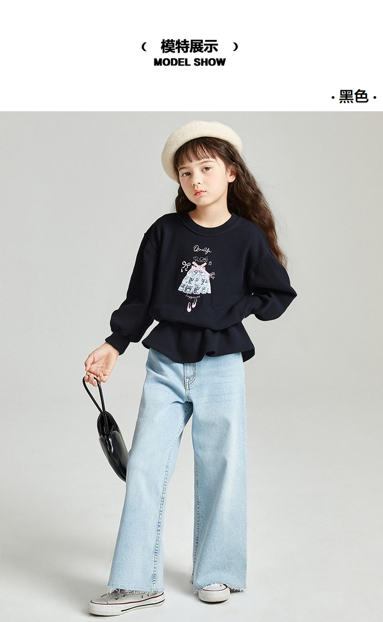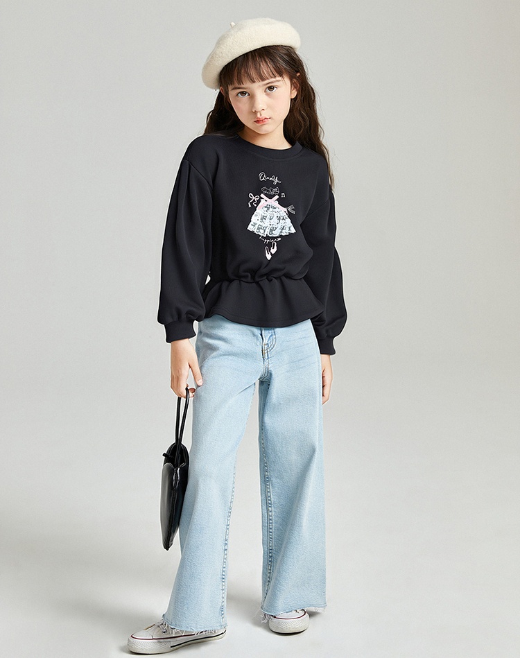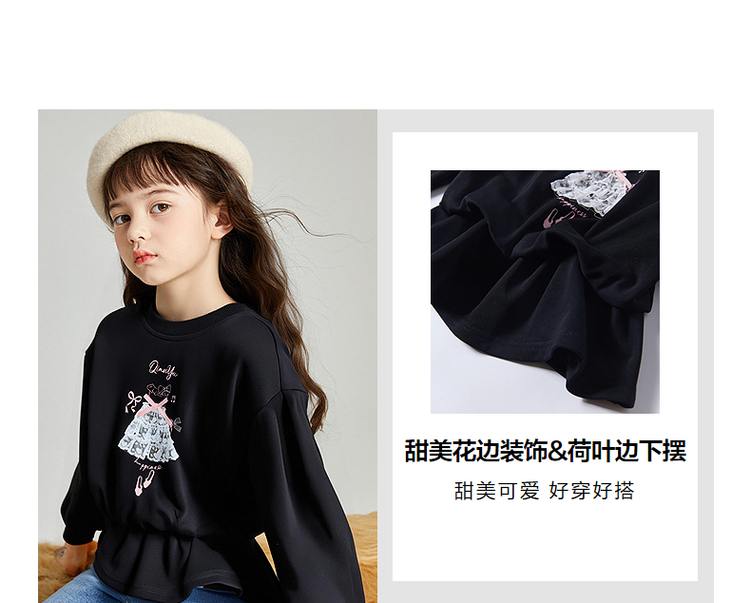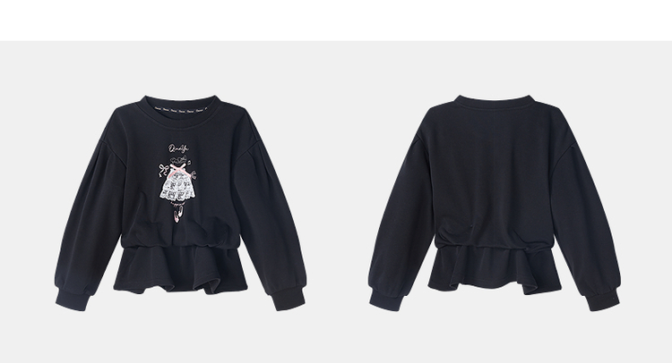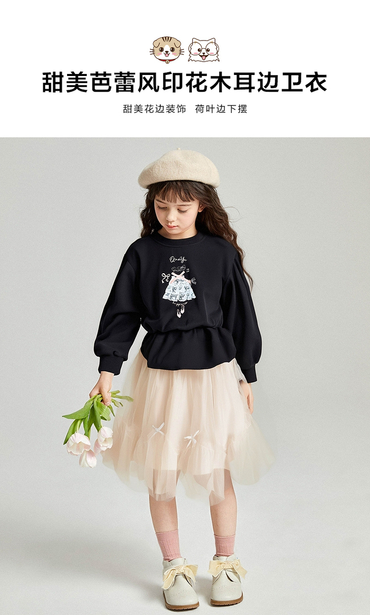 笛莎Deesha 2025秋季新款女童甜美芭蕾风印花木耳边卫衣
