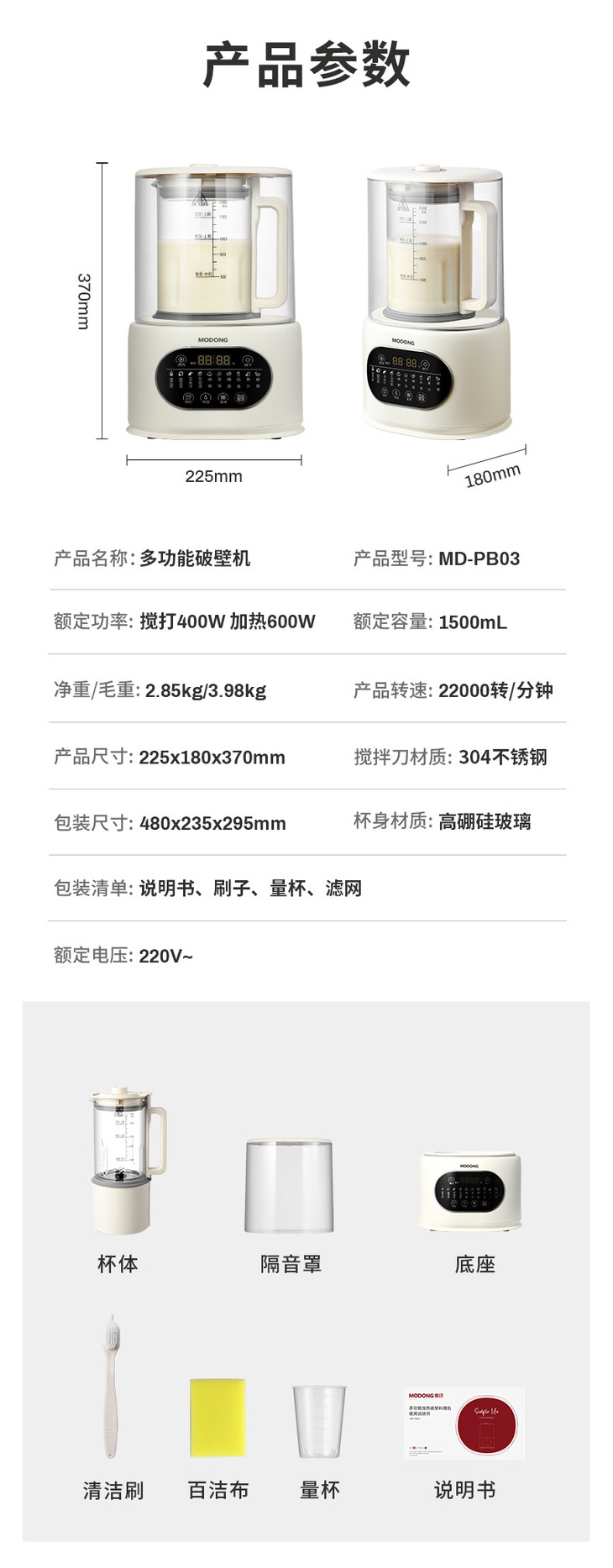 🌸【MODONG摩动新款多功能破壁机MD-PB03】💥3.0升级版!1.5L☺️ 低至💰199! 💪一台=豆浆机+榨汁机🌈+辅食机+养生壶+✨奶茶机💦