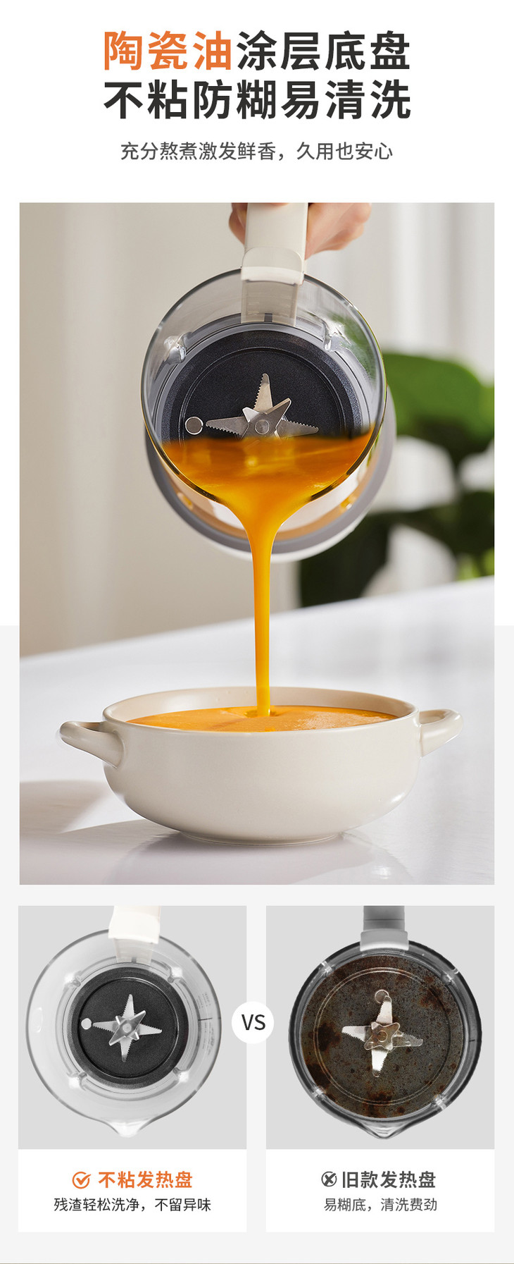 ✅陶瓷油涂层底盘,不粘防糊易清洗,充分熬煮激发鲜香,久用也安心 ✅10大基础功能,浓豆浆/快豆浆/玉米汁/五谷浆/绵粥/浓汤/辅食/奶昔/果汁/破壁 ✅600W全功率加热,紧锁热力;释出醇香与营养,还原五谷本味 ✅1500mL超级大容量,家庭多人饮用也能轻松拿捏 ✅一键自动清洗 不需要拆件,更快更省心 ⚠️官方质保一年!!!