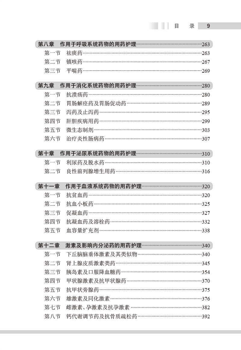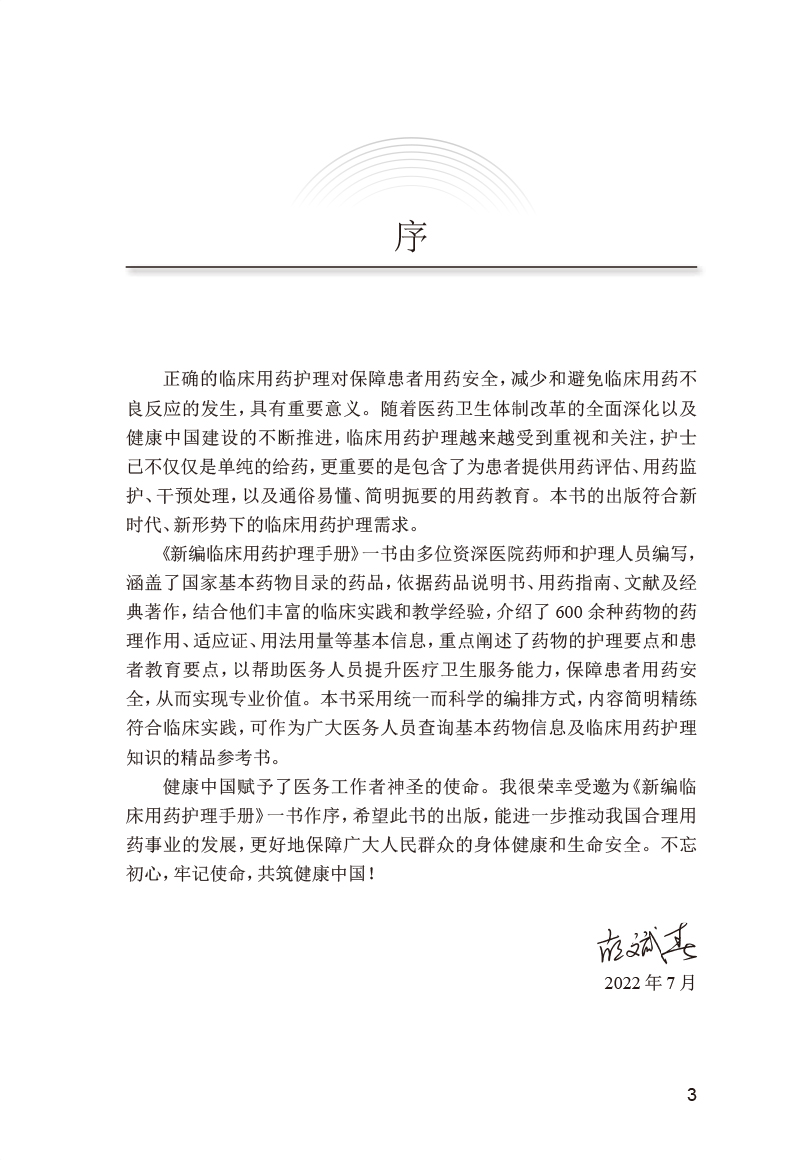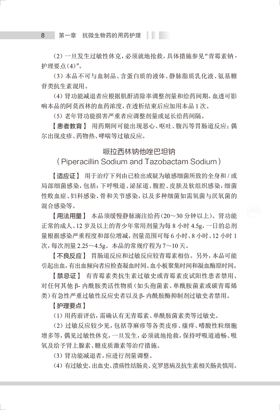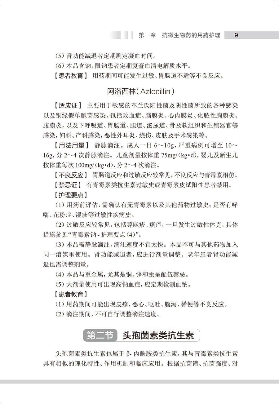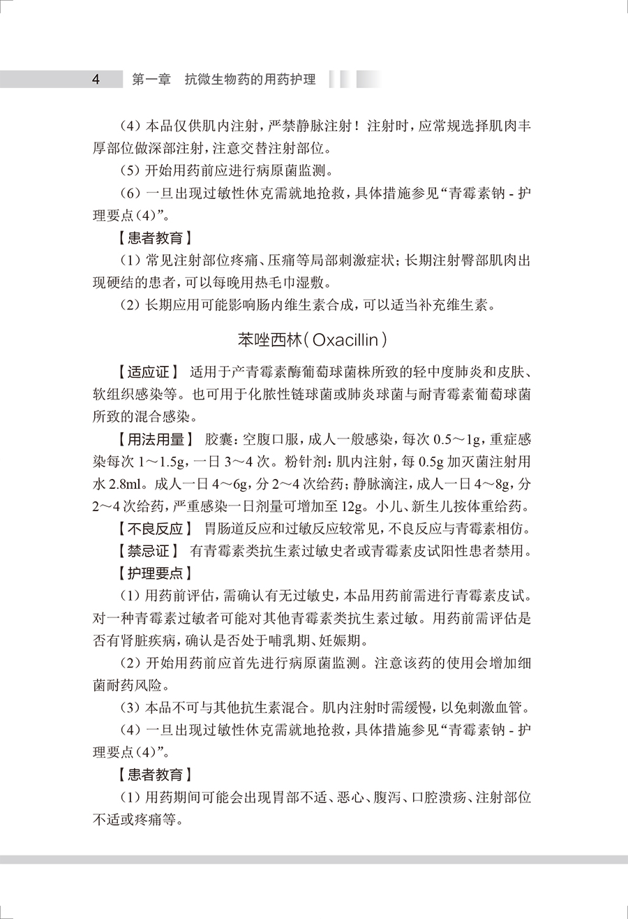 本书参考《国家基本药物目录(2018年版)》《国家基本医疗保险、工伤保险和生育保险药品目录(2021年)》,将临床常用药物按作用疾病及药理特性进行分类叙述,按照药物品种进行具体介绍,包括药物类别属性、药理作用、适应证、剂型规格、用法用量、不良反应、禁忌证、护理要点和患者教育等。结合临床实际用药问题,本书对护理要点和患者教育内容进行了重点的梳理,其中护理要点阐述了临床用药护理服务过程中的注意事项;“患者教育”则从患者、家属及照护人员的角度出发,阐述药物使用方法、用药注意事项以及生活方式干预等。