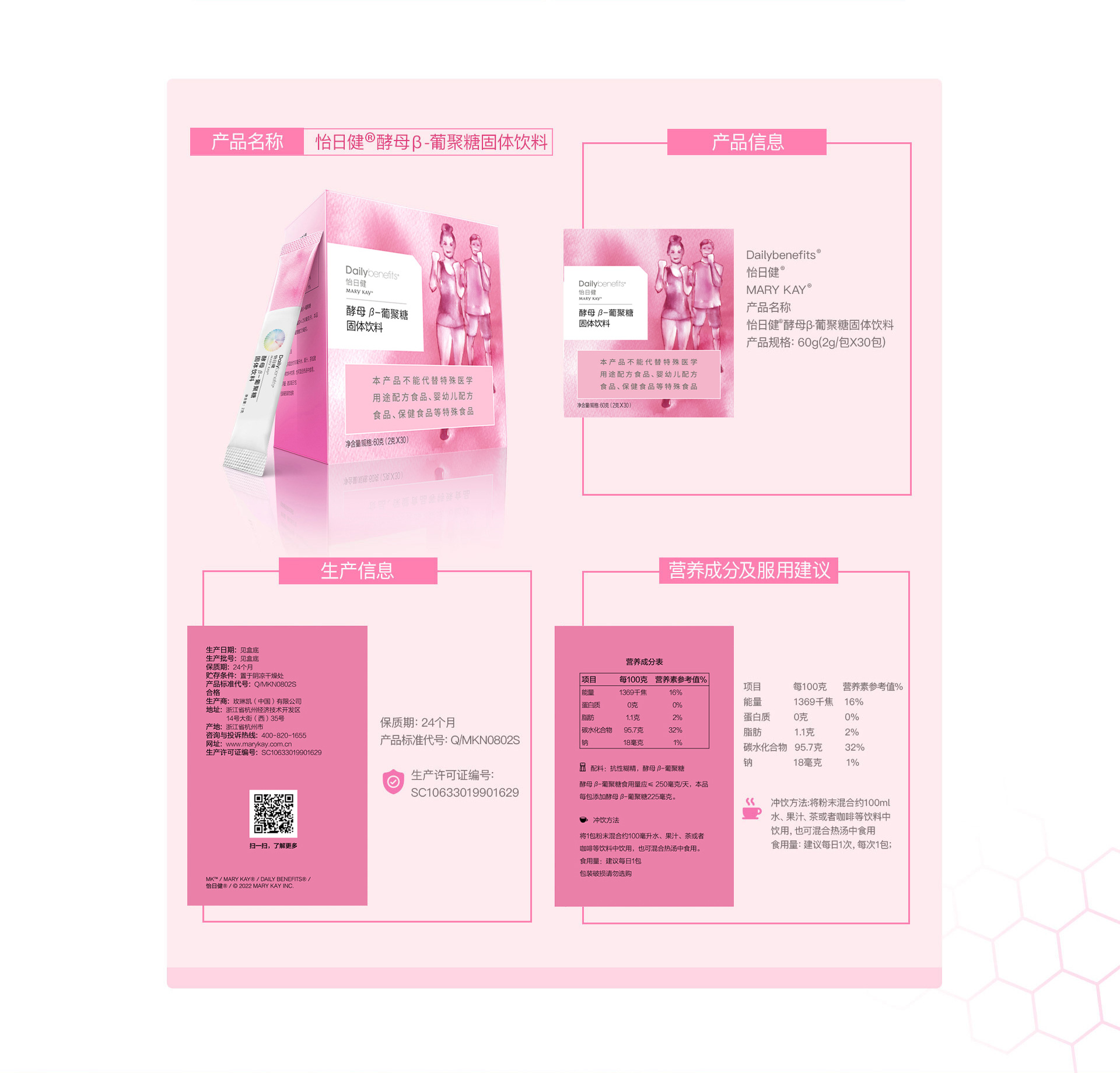 【预售 急单慎拍】玫琳凯怡日健®酵母β-葡聚糖固体饮料 2g*30包 原价450元